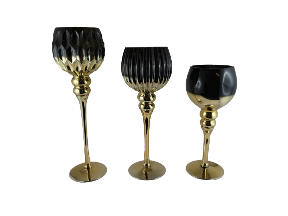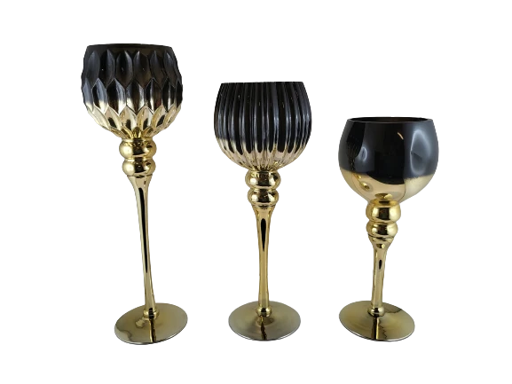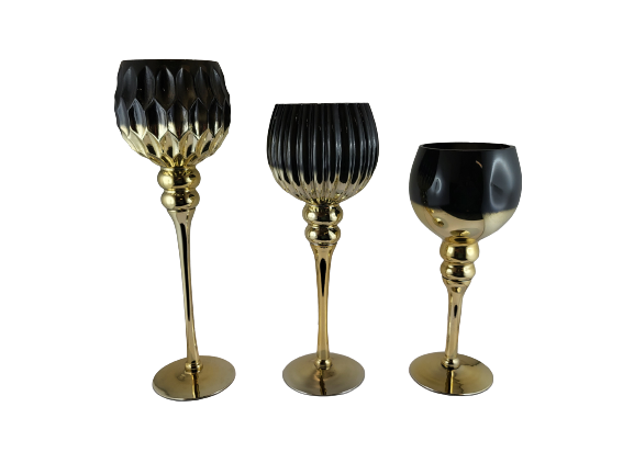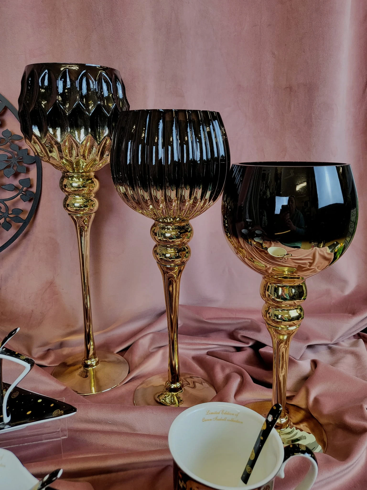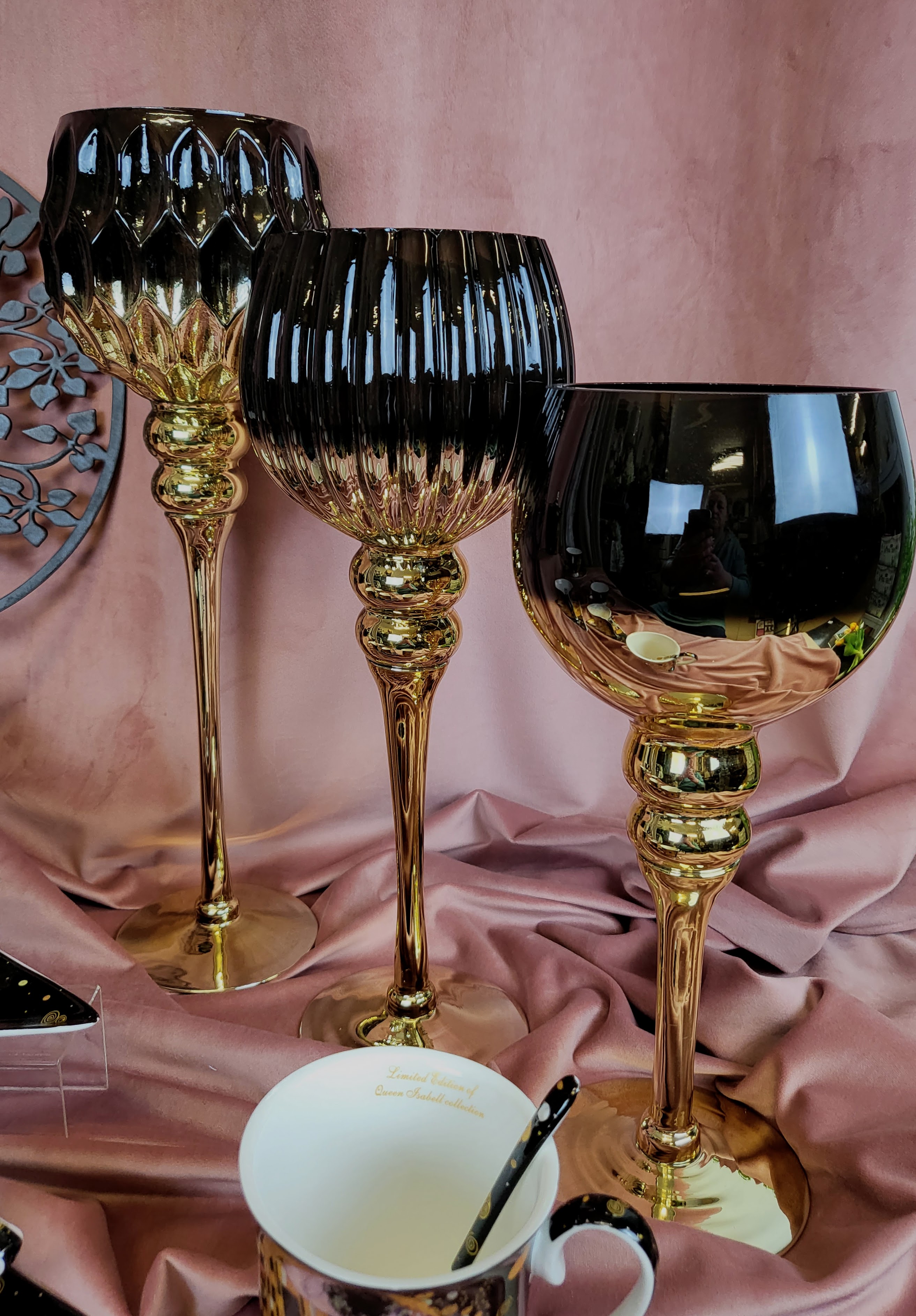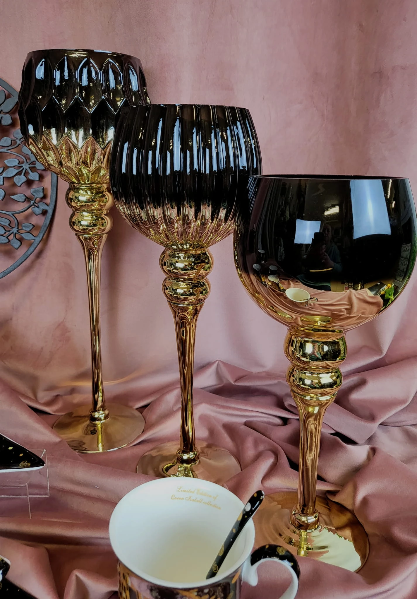 3 KIELICHY SZKLANE ZŁOTO-CZARNE 30/35/40CM