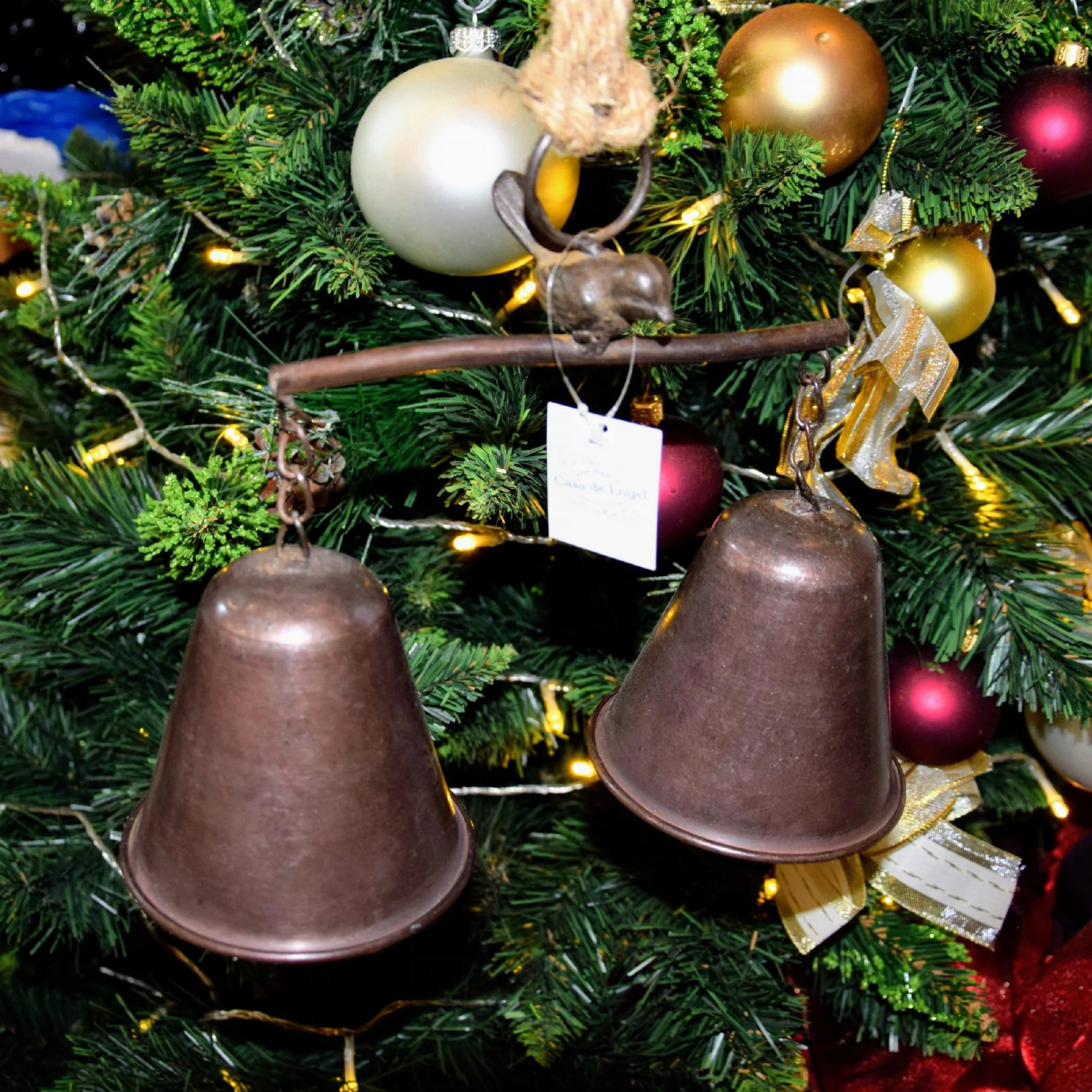 3 METALOWE DZWONKI NA SZNURZE JUTOWYM 28×9,5×20cm