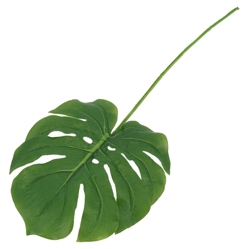 Powierzchnia liścia posiada satynowe wykończenie i naturalne przebarwienia, które idealnie odwzorowują żywą roślinę. Charakterystyczne wycięcia i otwory są wykonane z najwyższą precyzją. Intensywna zieleń nie blaknie, dzięki czemu Twoje wnętrze zawsze będzie wyglądać świeżo i energetycznie.