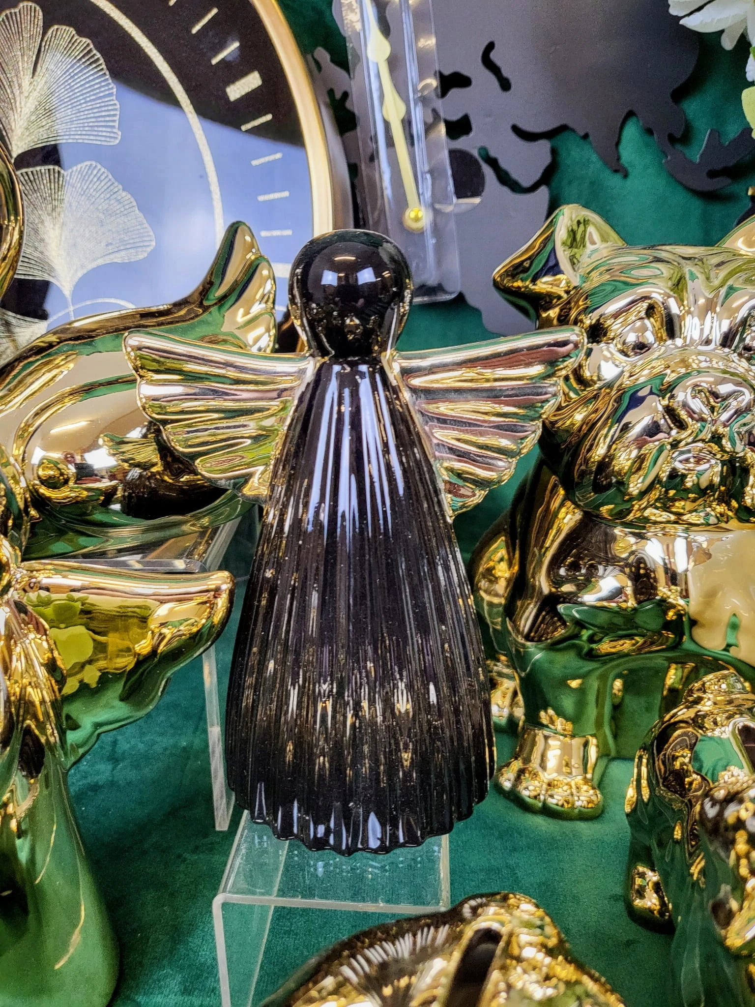 ANIOŁ CERAMICZNY CZARNO ZŁOTY MAŁY