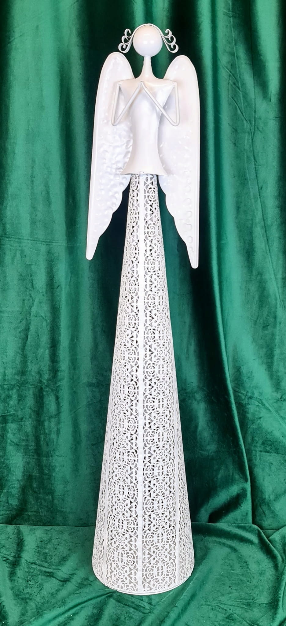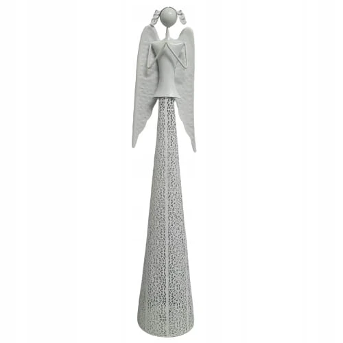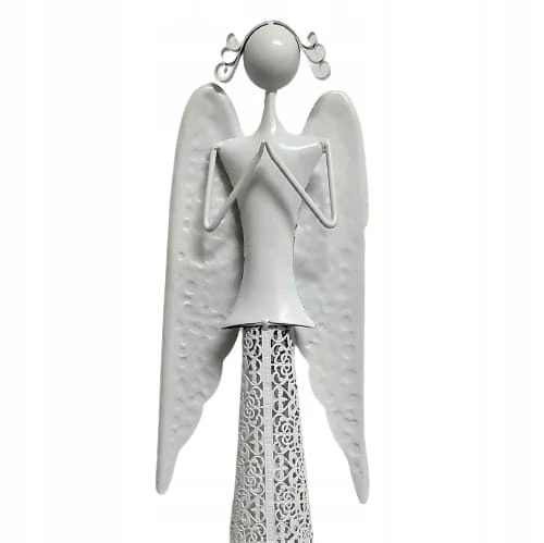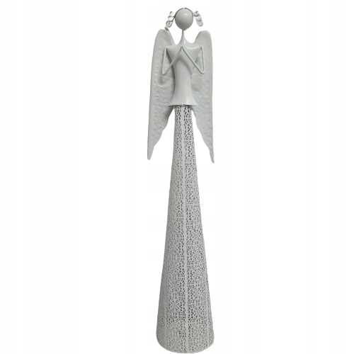 ANIOŁ METALOWY MODLĄCY BIAŁY ŚWIECZNIK 98,5 CM