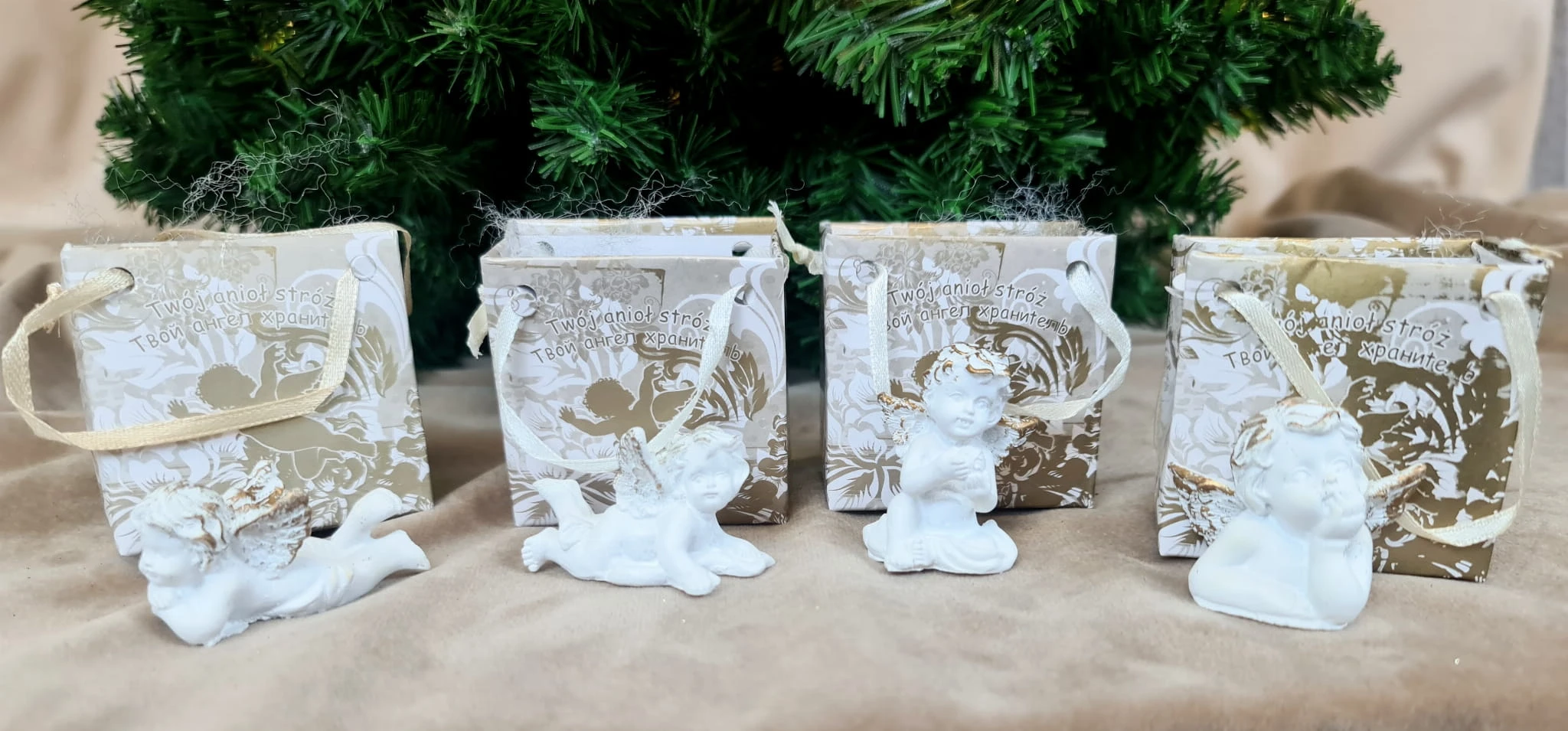 Aniołek występuje w 4 wzorach. W wiadomości do zamówienia prosimy o podanie wybranego modelu, w przeciwnym wypadku wyślemy losowy.