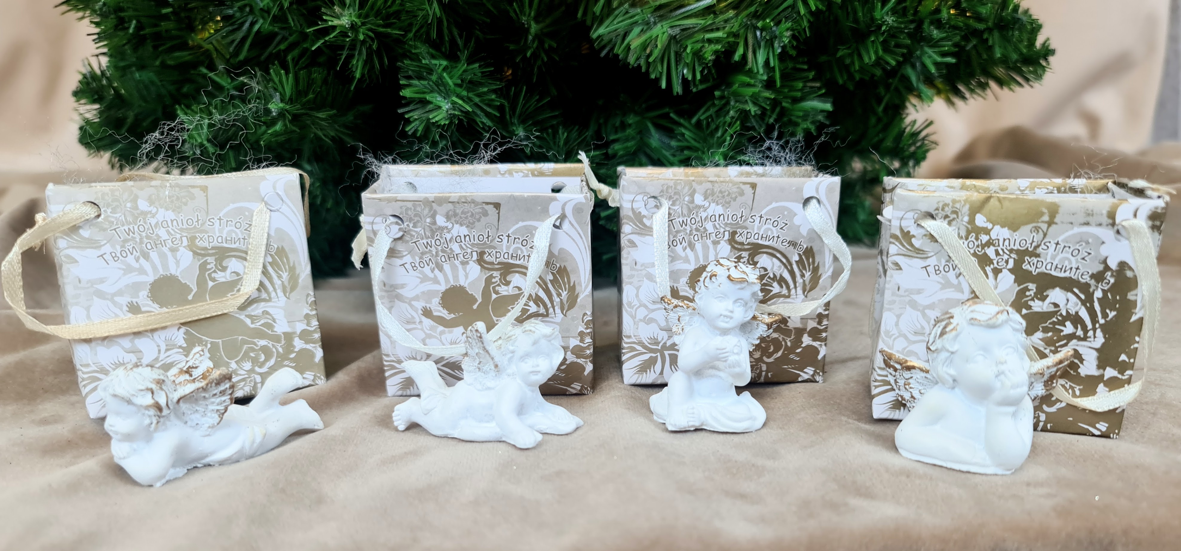 ANIOŁ PREZENTOWY W PAPIEROWEJ TOREBCE MIX 4 WZORY