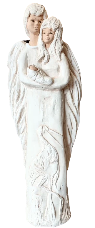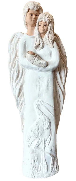 ANIOŁ RODZINA Z DZIECKIEM STOJĄCY GIPSOWY 44CM