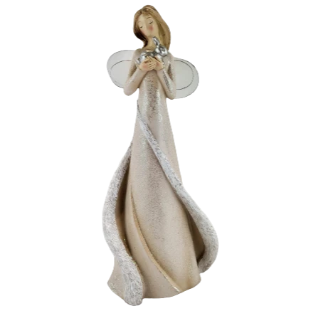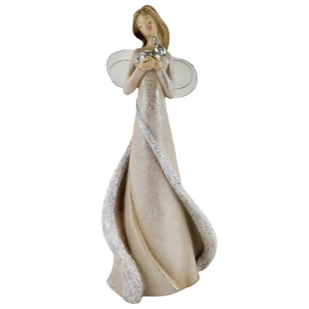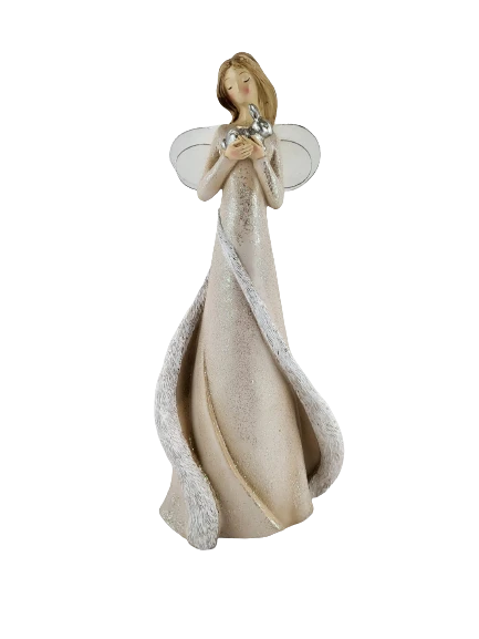 ANIOŁ Z KRÓLIKIEM KREMOWY 15X10X33CM