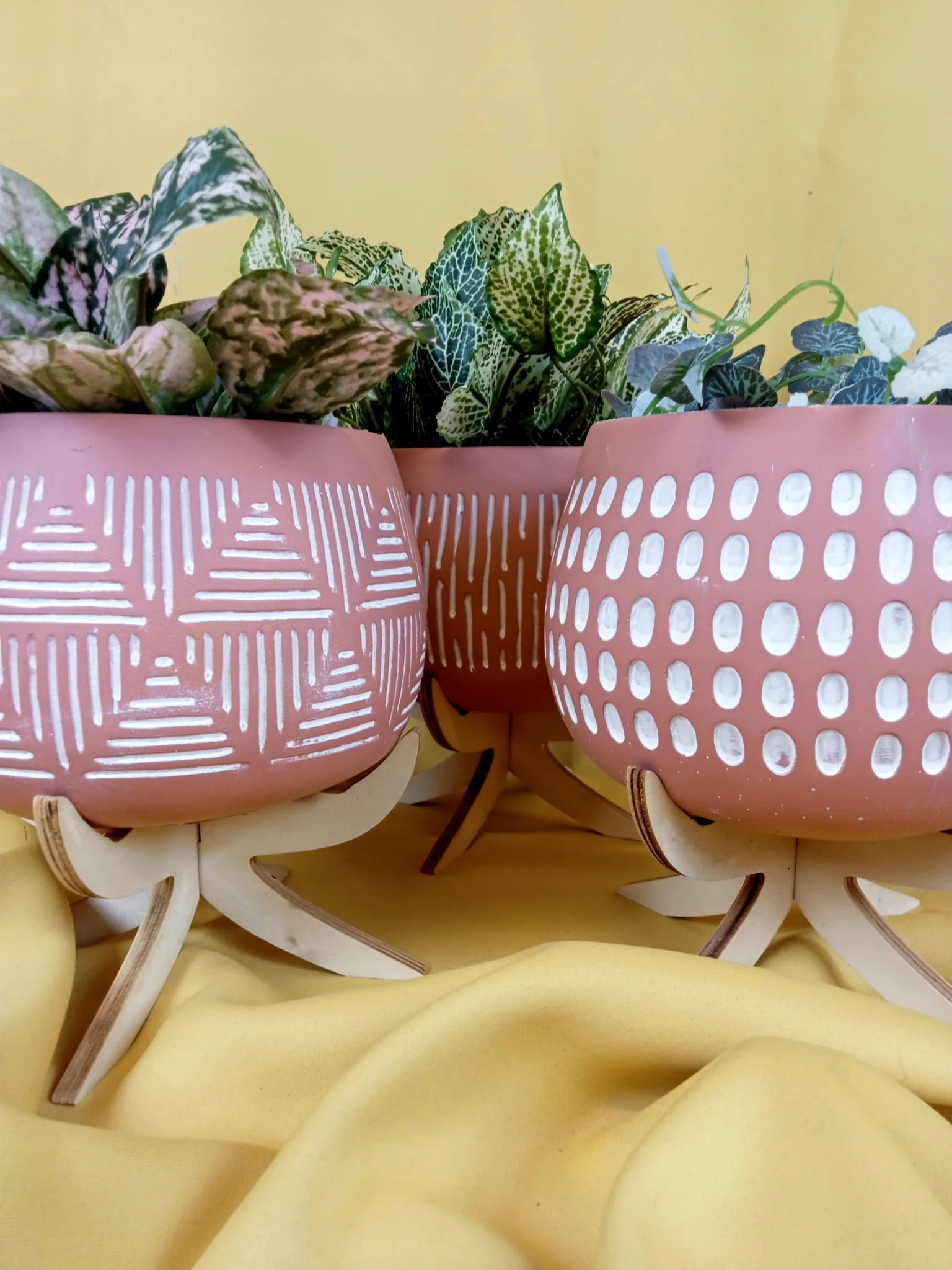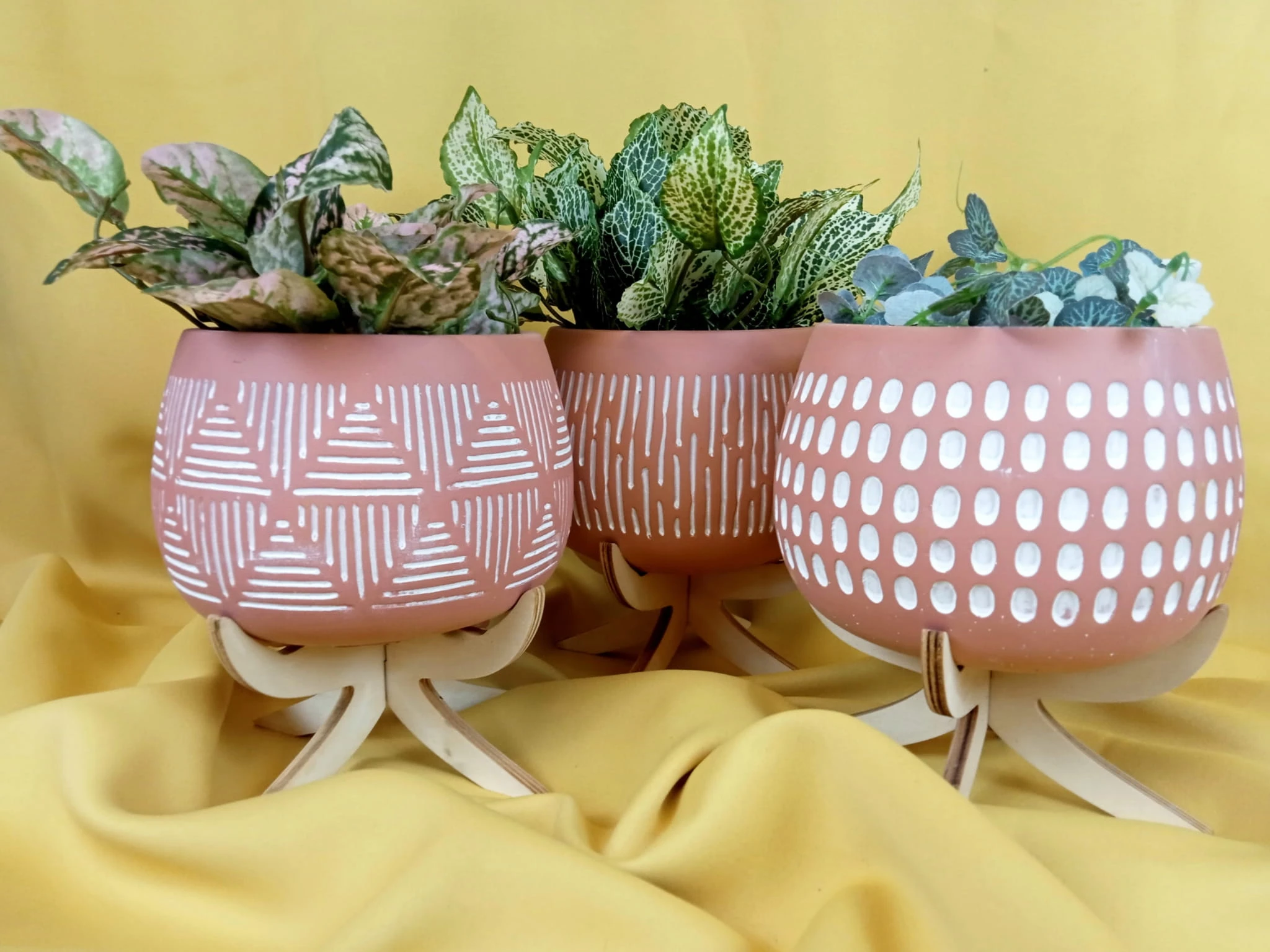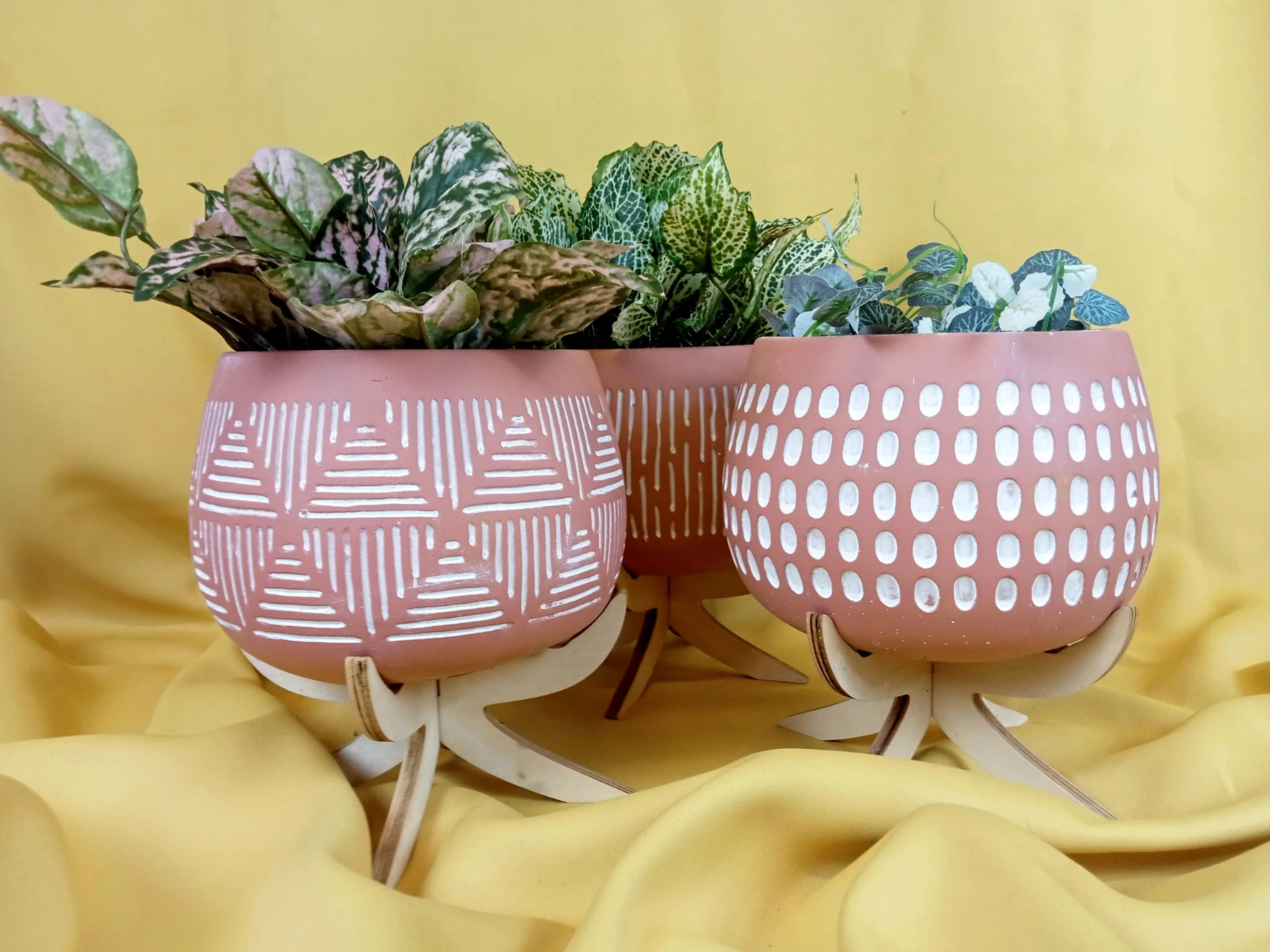 Pomarańczowe osłonki betonowe o ciekawym wzorze. Idealnie wkomponują się we wnętrza w stylu rustykalnym, vintage czy prowansalskim. Osłonka ozdobi biuro, salon czy sypialnię.