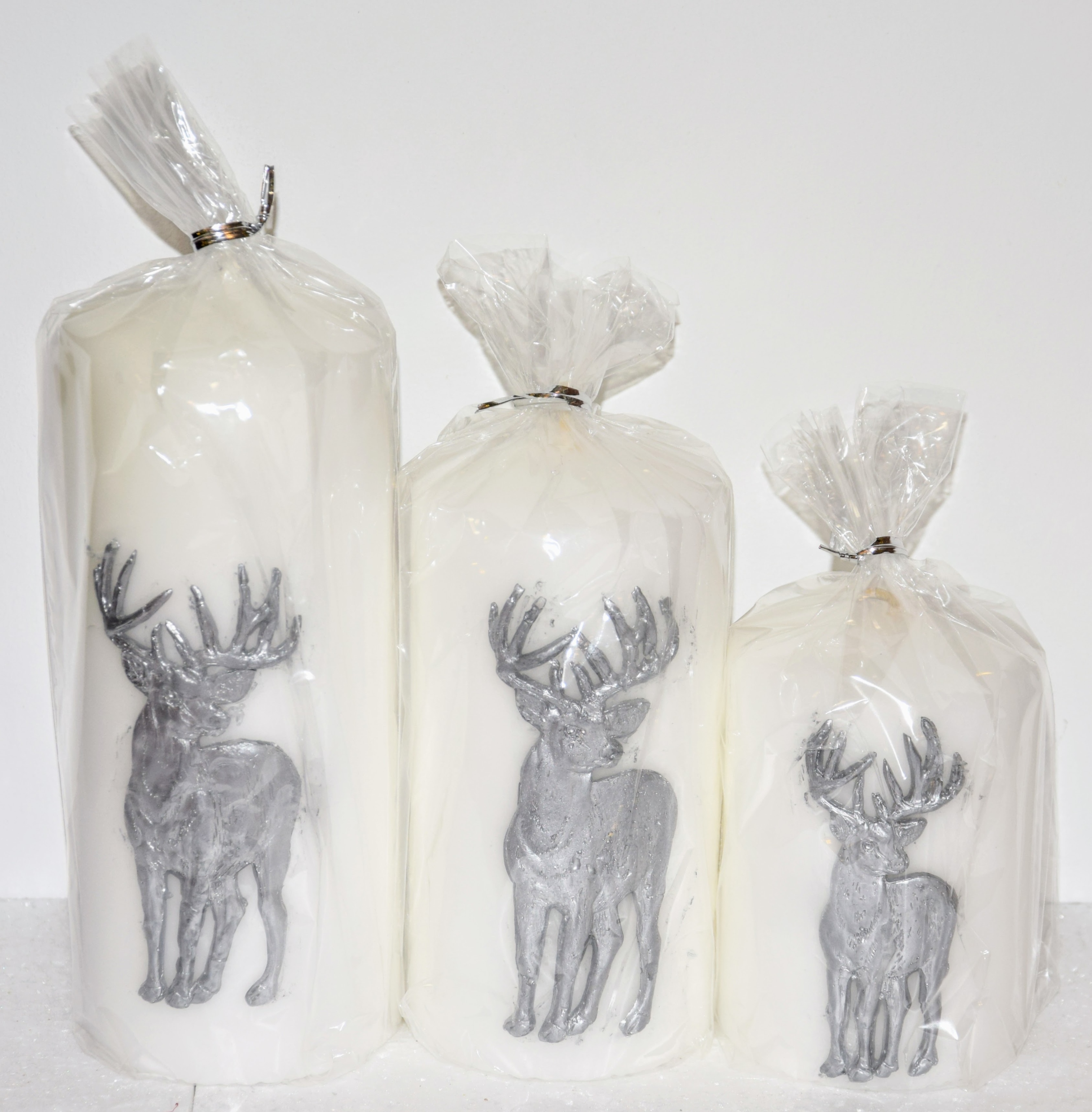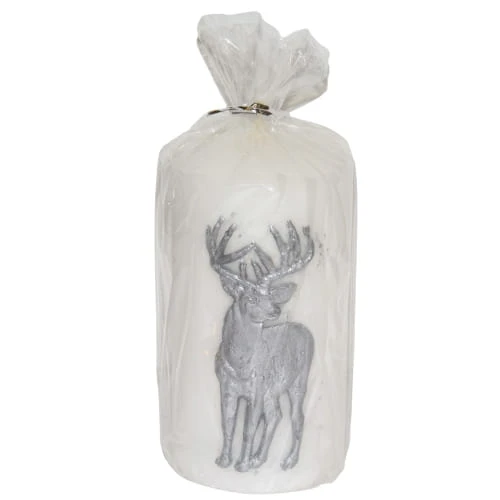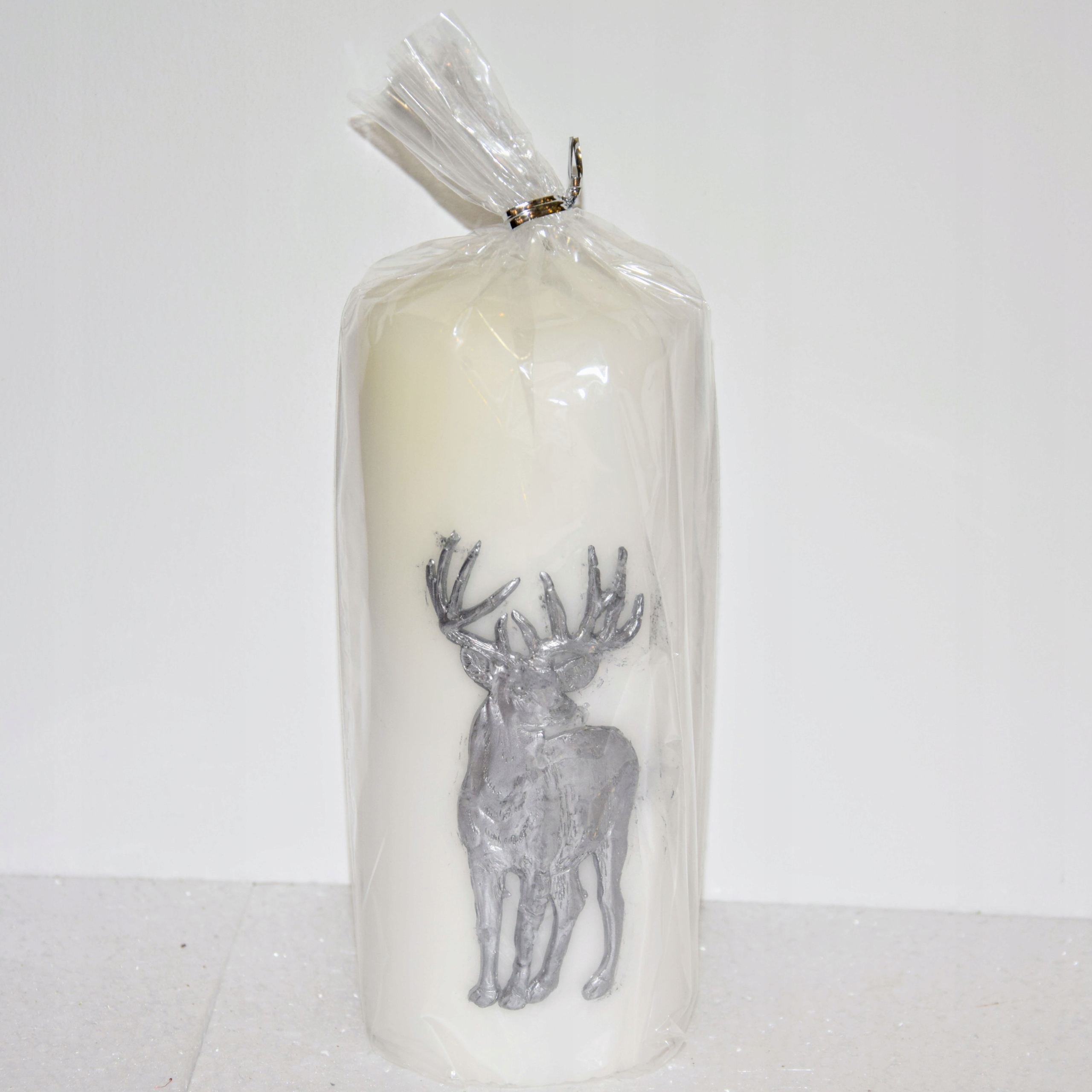 BIAŁA ŚWIECA WALEC MAŁY - RENIFER SREBRNY