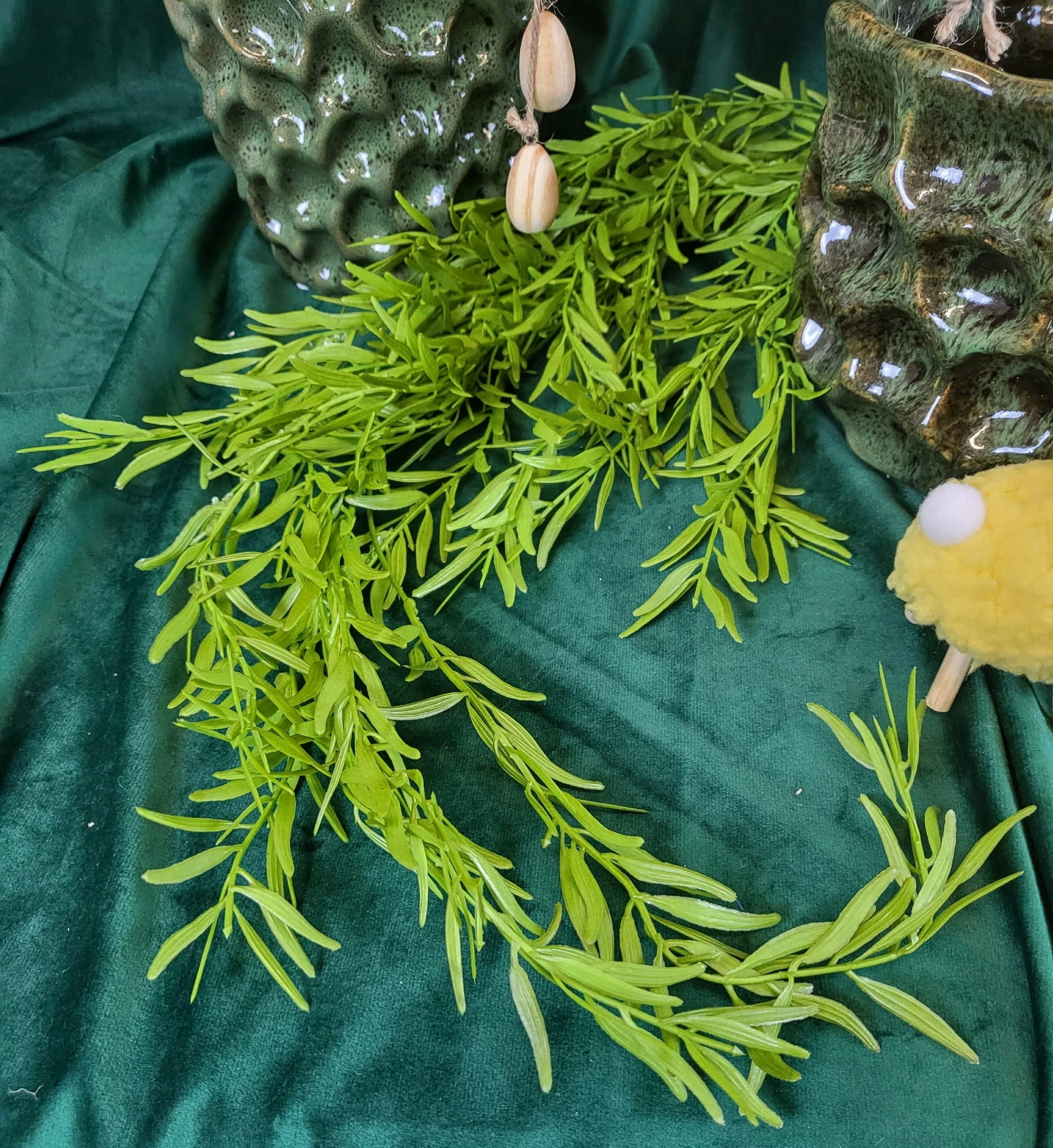Przepiękna zielona roślina, może stać się doskonałą ozdobą mieszkania, balkonu, tarasu, altanki. Jest wykonana z plastiku, dzięki czemu nie wymaga żadnej pielęgnacji.