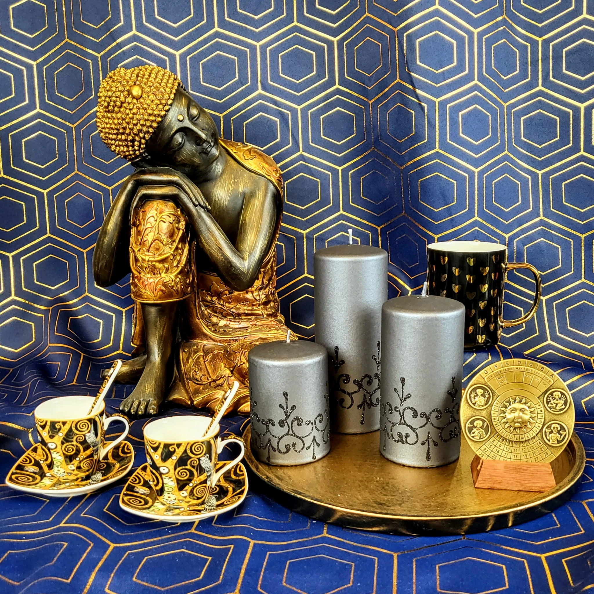Wyjątkowa, bogato zdobiona dekoracja w kształcie Buddy. Idealnie wkomponuje się we wnętrza utrzymane w orientalnej stylistyce. Polecamy jako prezent dla kobiety, prezent dla mężczyzny, prezent na urodziny, prezent na nowe mieszkanie.