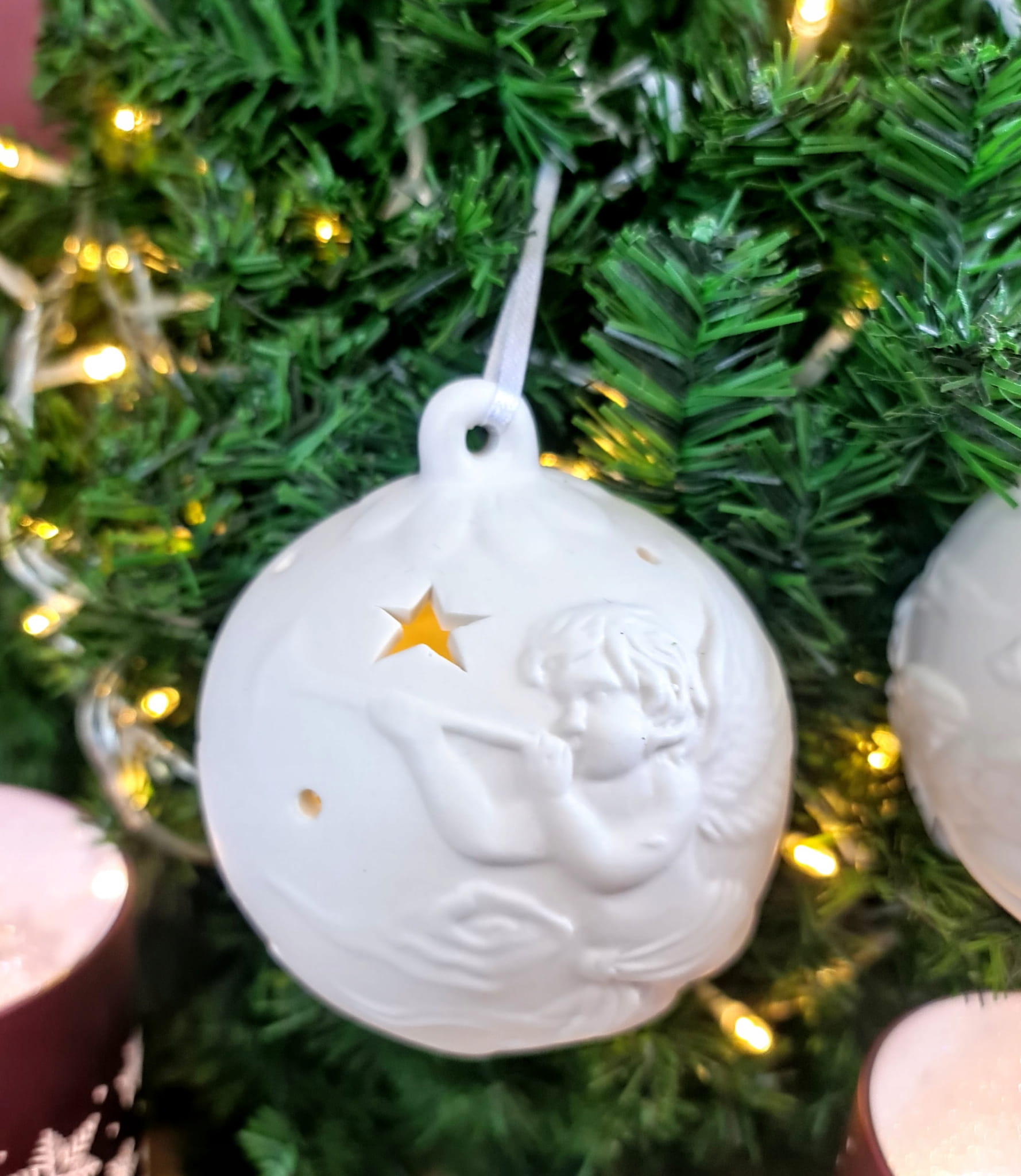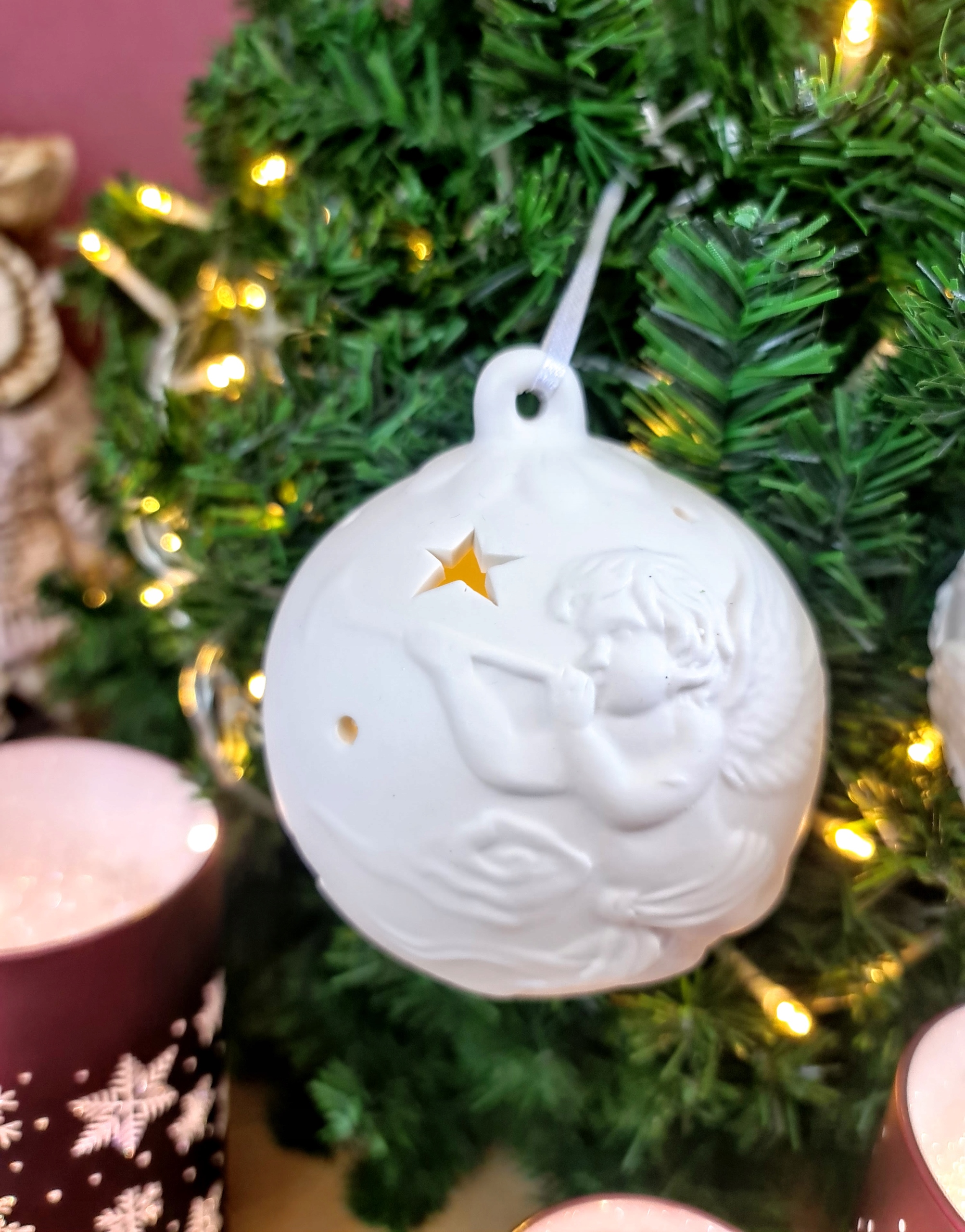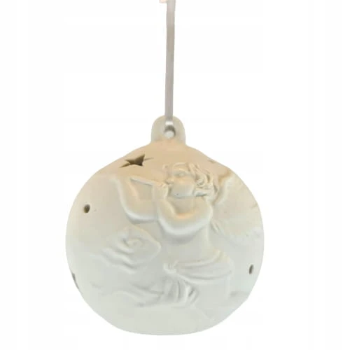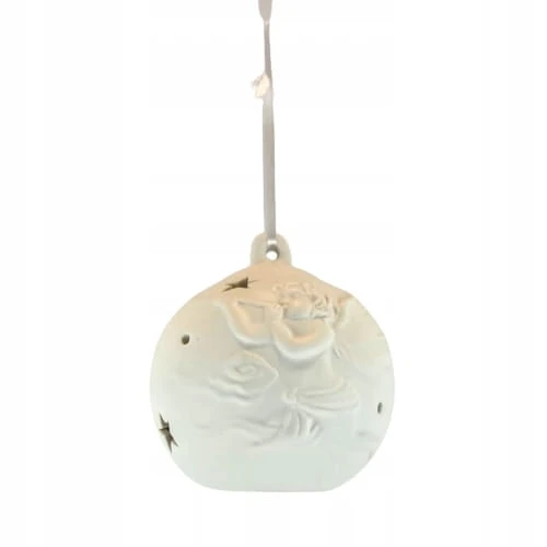 BOMBKA CERAMICZNA BIAŁA LED ANIOŁ Z TRĄBKĄ