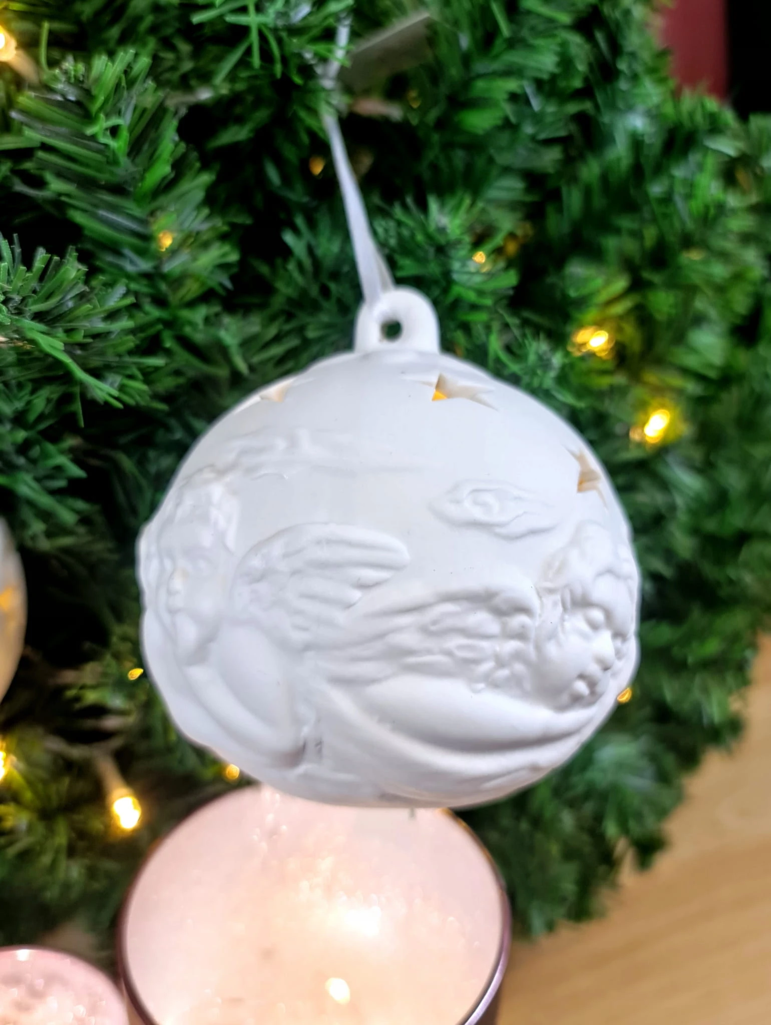 Dzięki światełkom umieszczonym w środku bombki światło pięknie wydostaje się na zewnątrz nadając niepowtarzalny klimat miejscu w którym się znajduje.