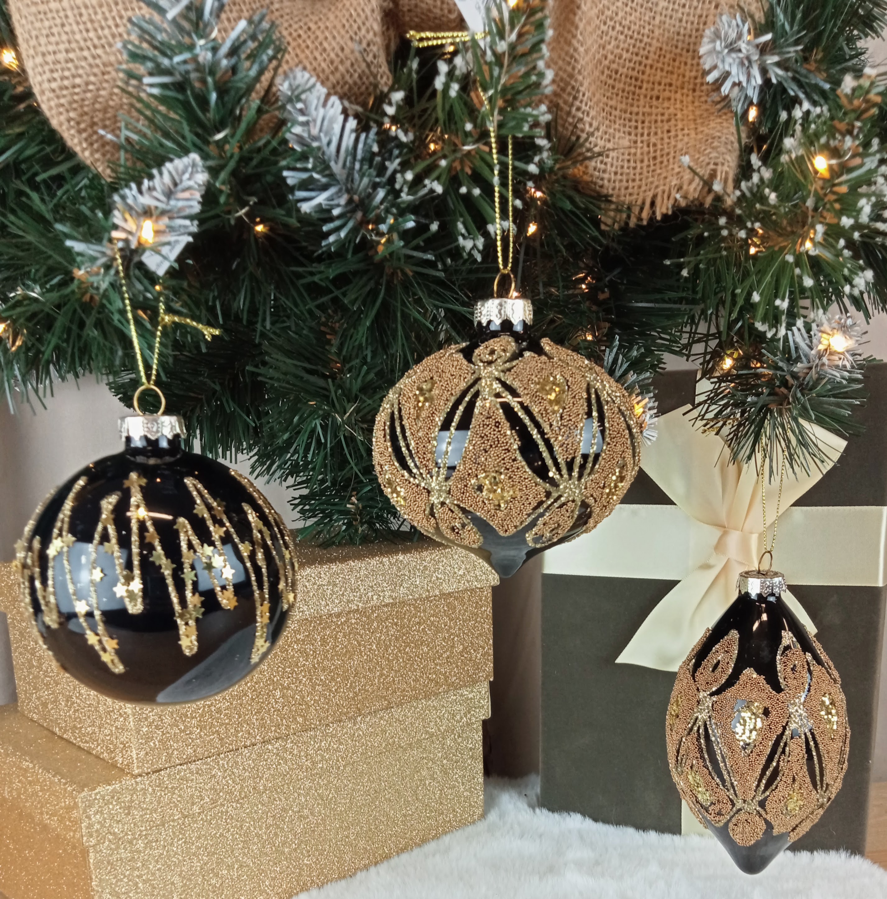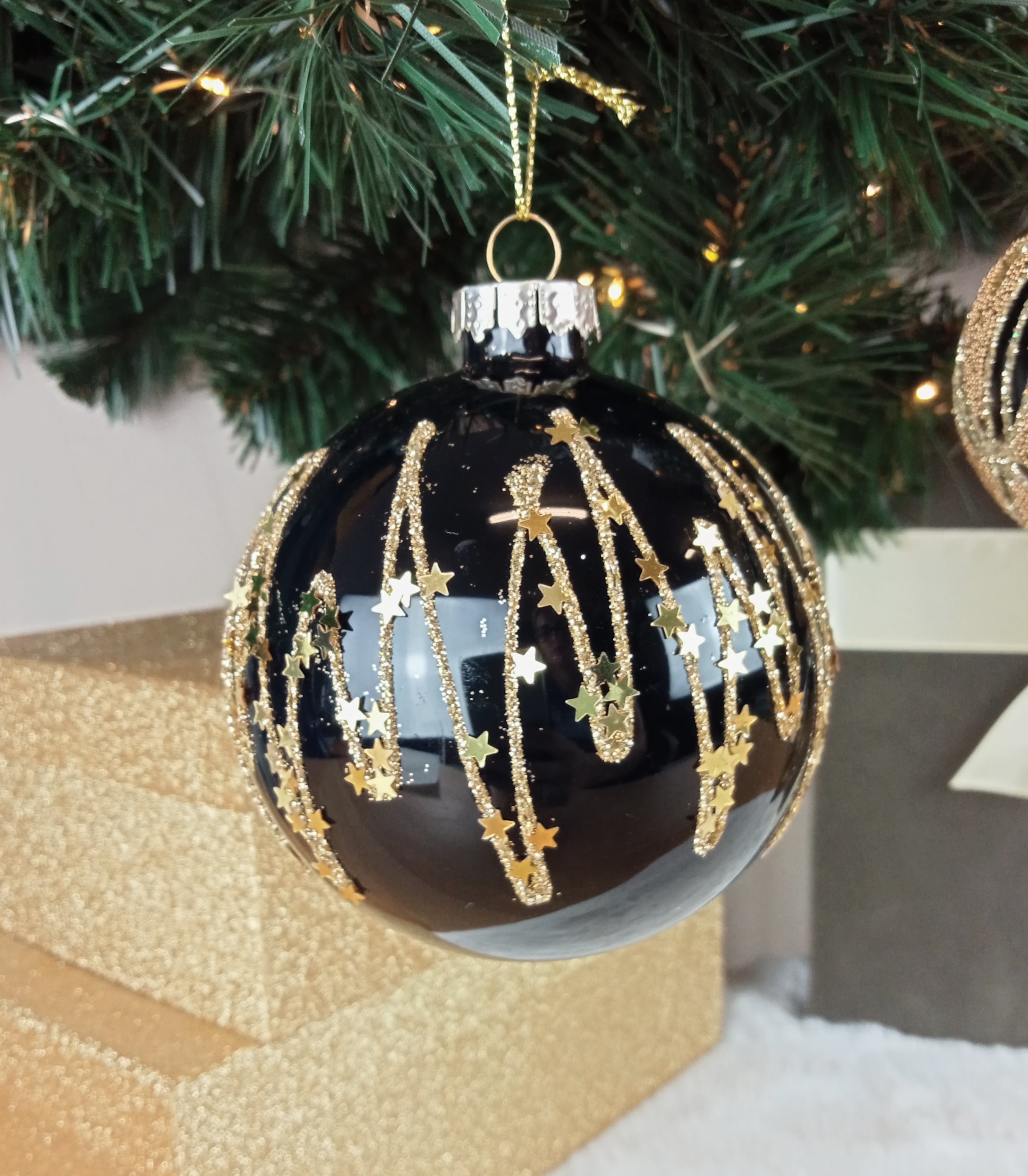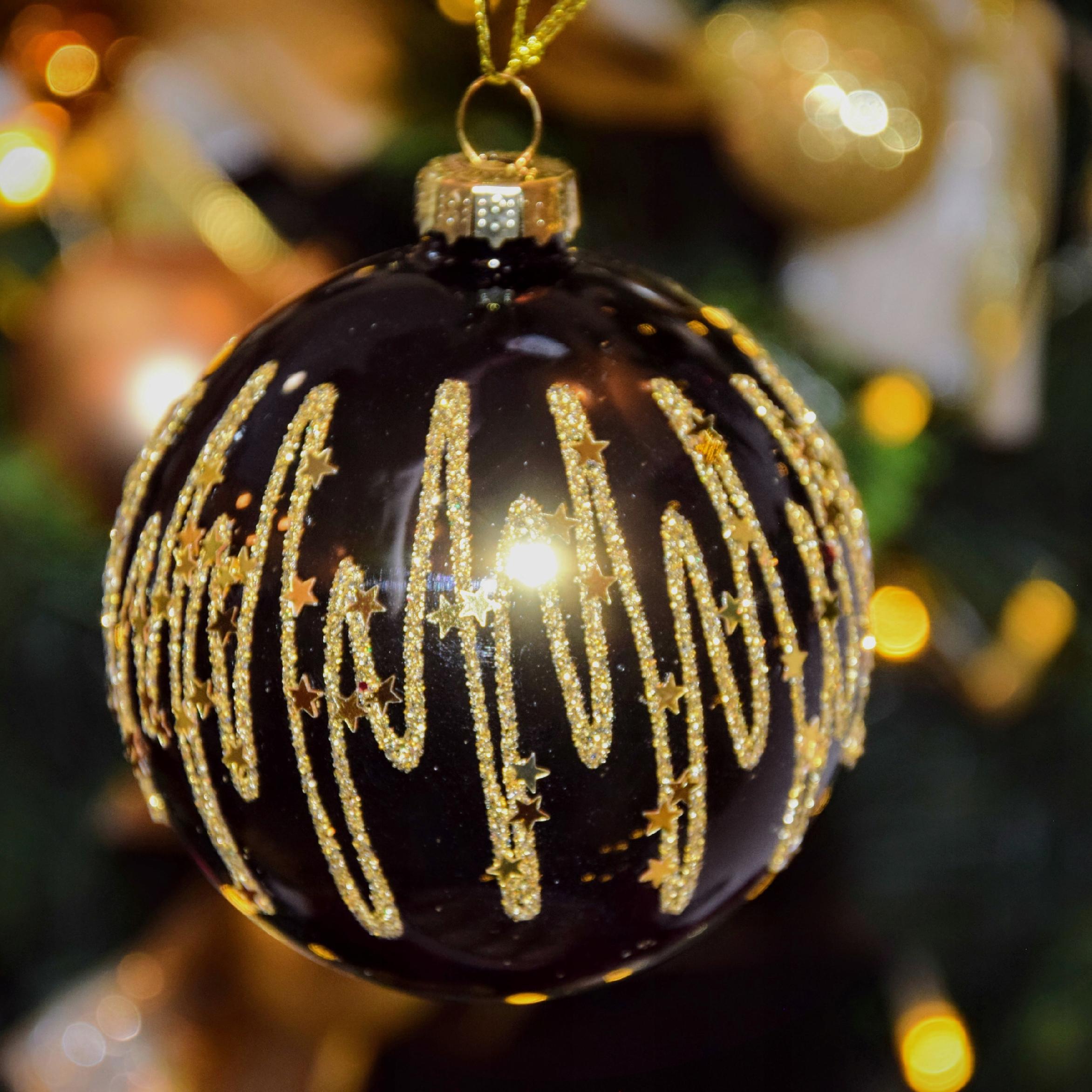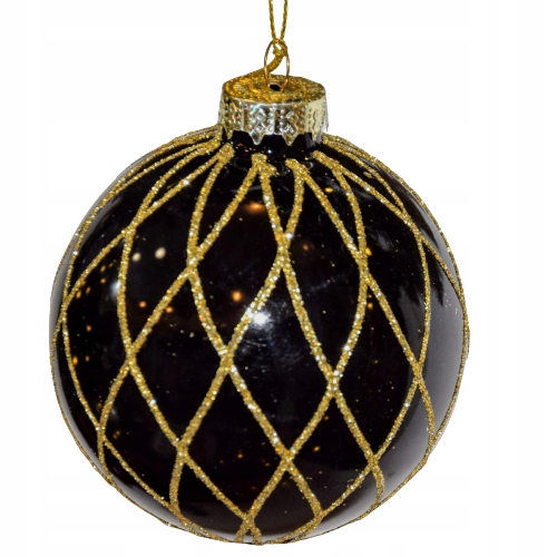 Bombka kulka zdobiona złotym brokatem w trzech wzorach.