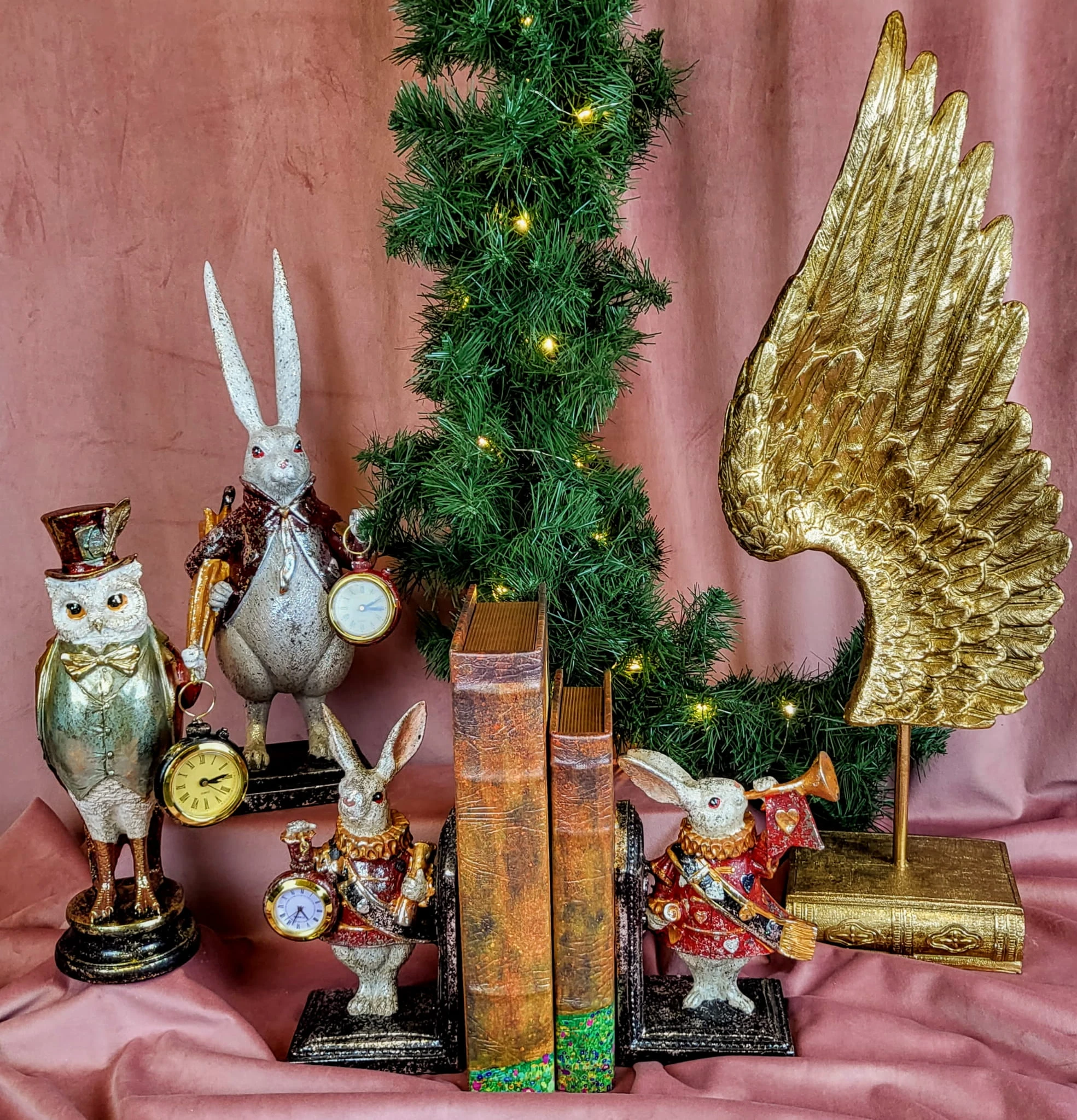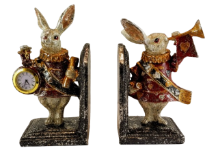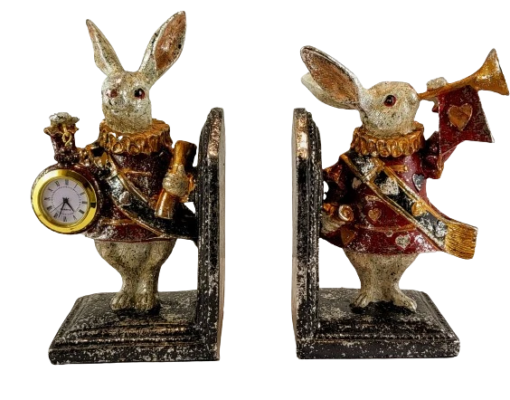 Piękne bookendy z wizerunkami królików. Sprawdzą się jako ozdoba praktyczna mieszkania w stylu klasycznym, jak i nowoczesnym. Ich niepowtarzalny design sprawi że nikt nie przejdzie obok nich obojętnie.