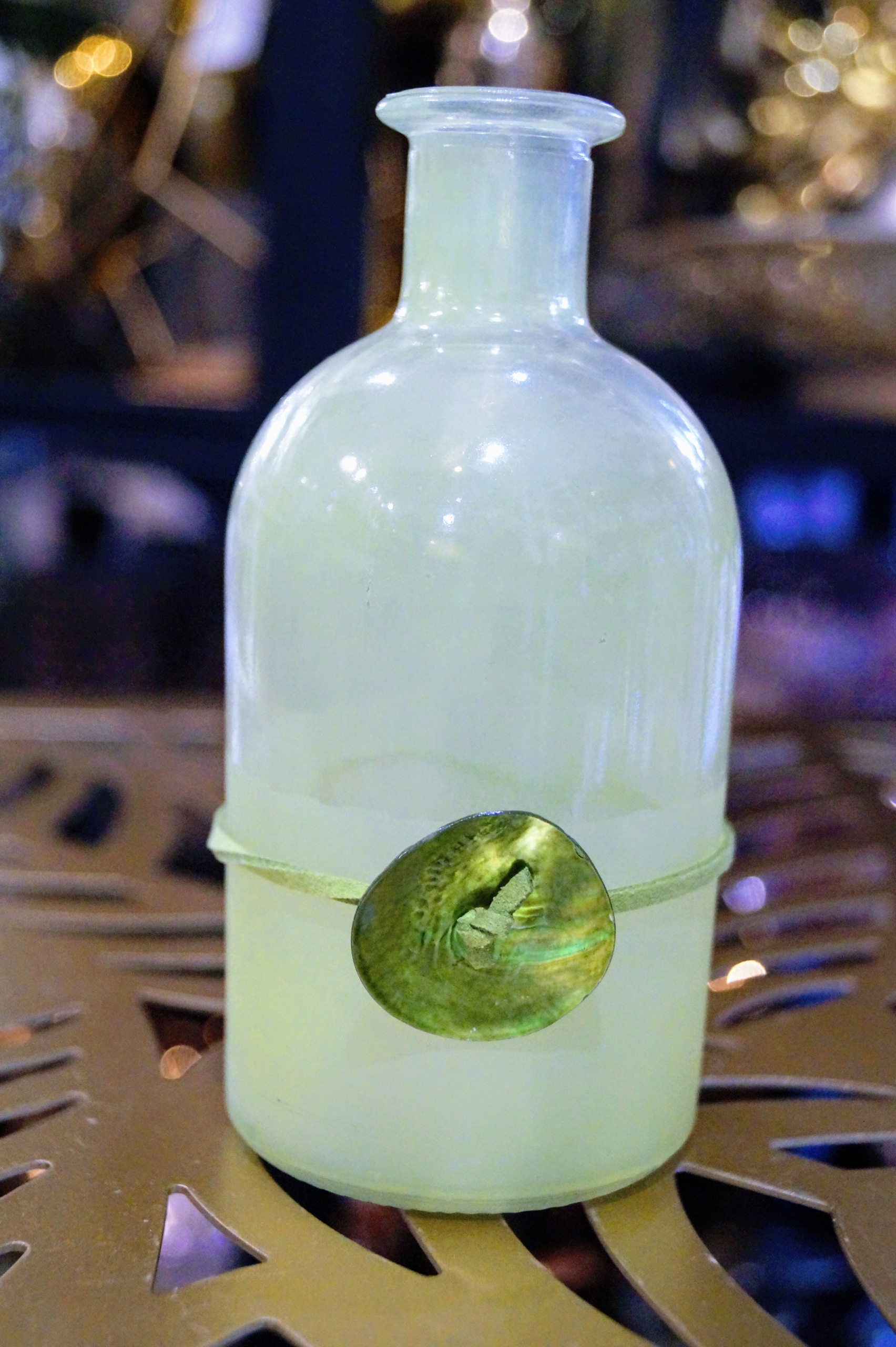 Dekoracyjna, elegancka szklana zielona buteleczka będą niezastąpione jako stylowa i efektowna dekoracja stołu.