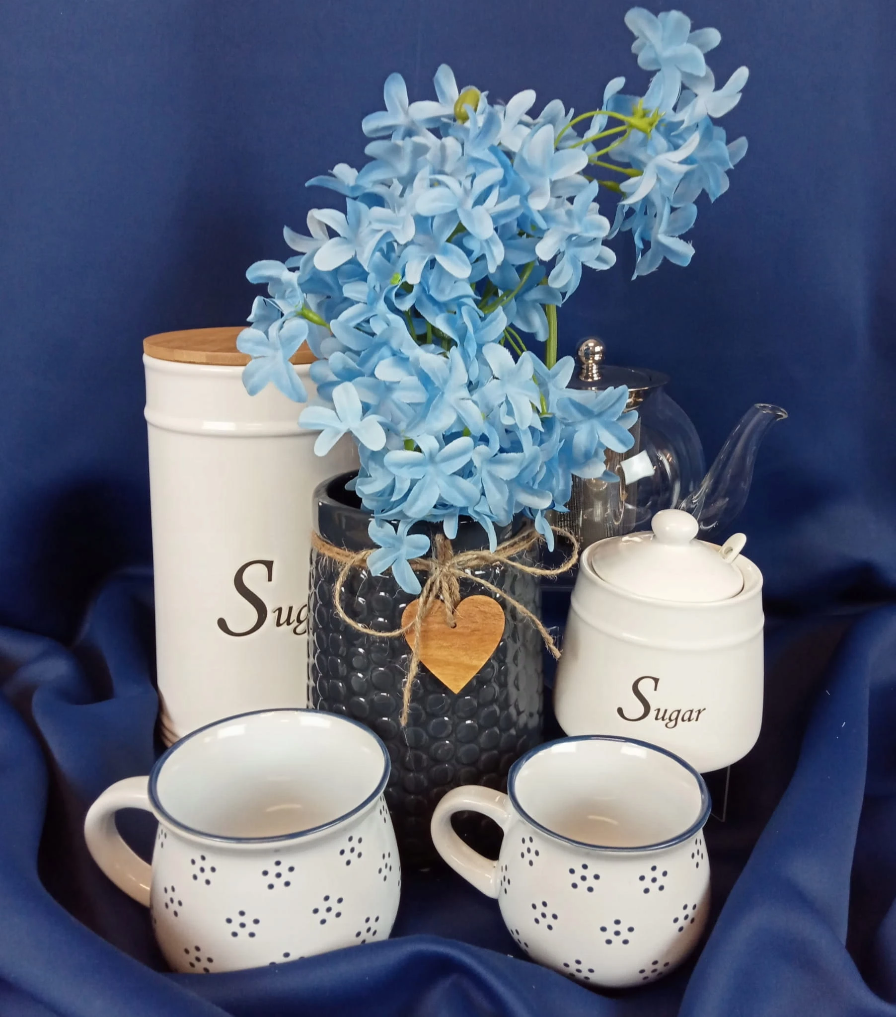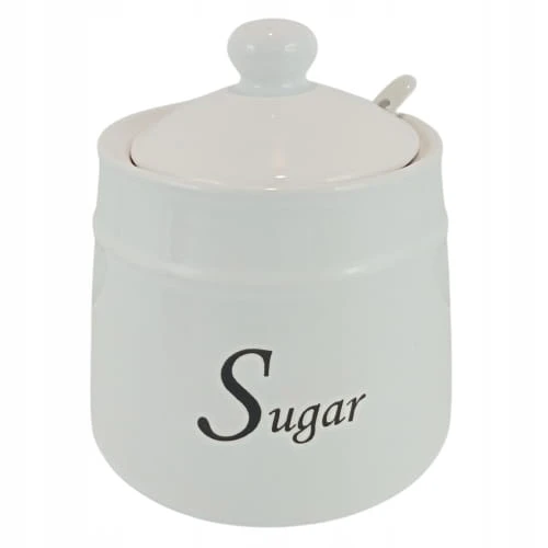 Elegancki i praktyczny pojemnik do przechowywania cukru z przykrywką i ceramiczną łyżeczką.