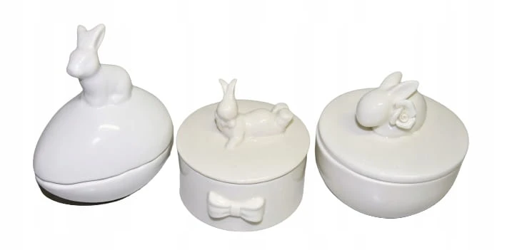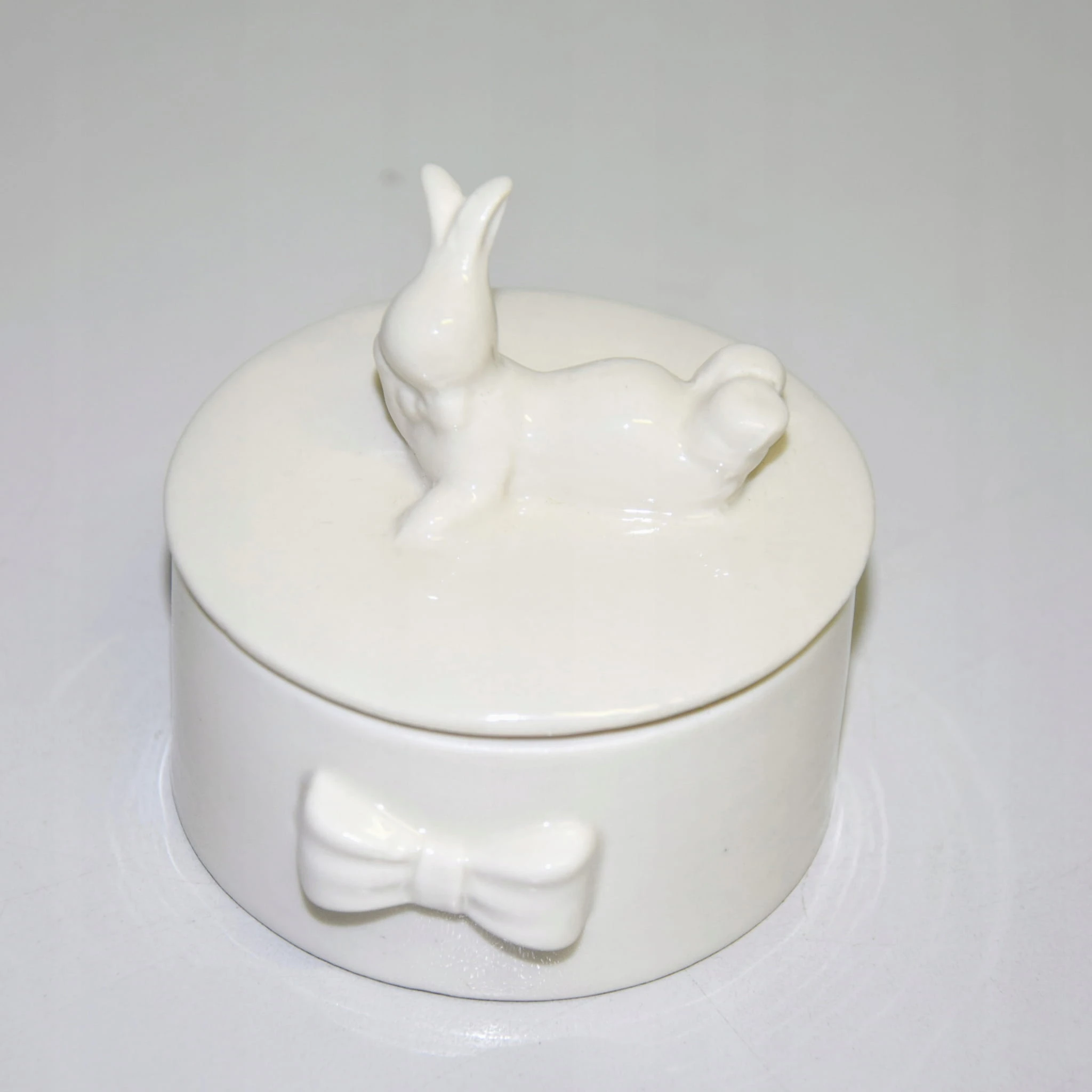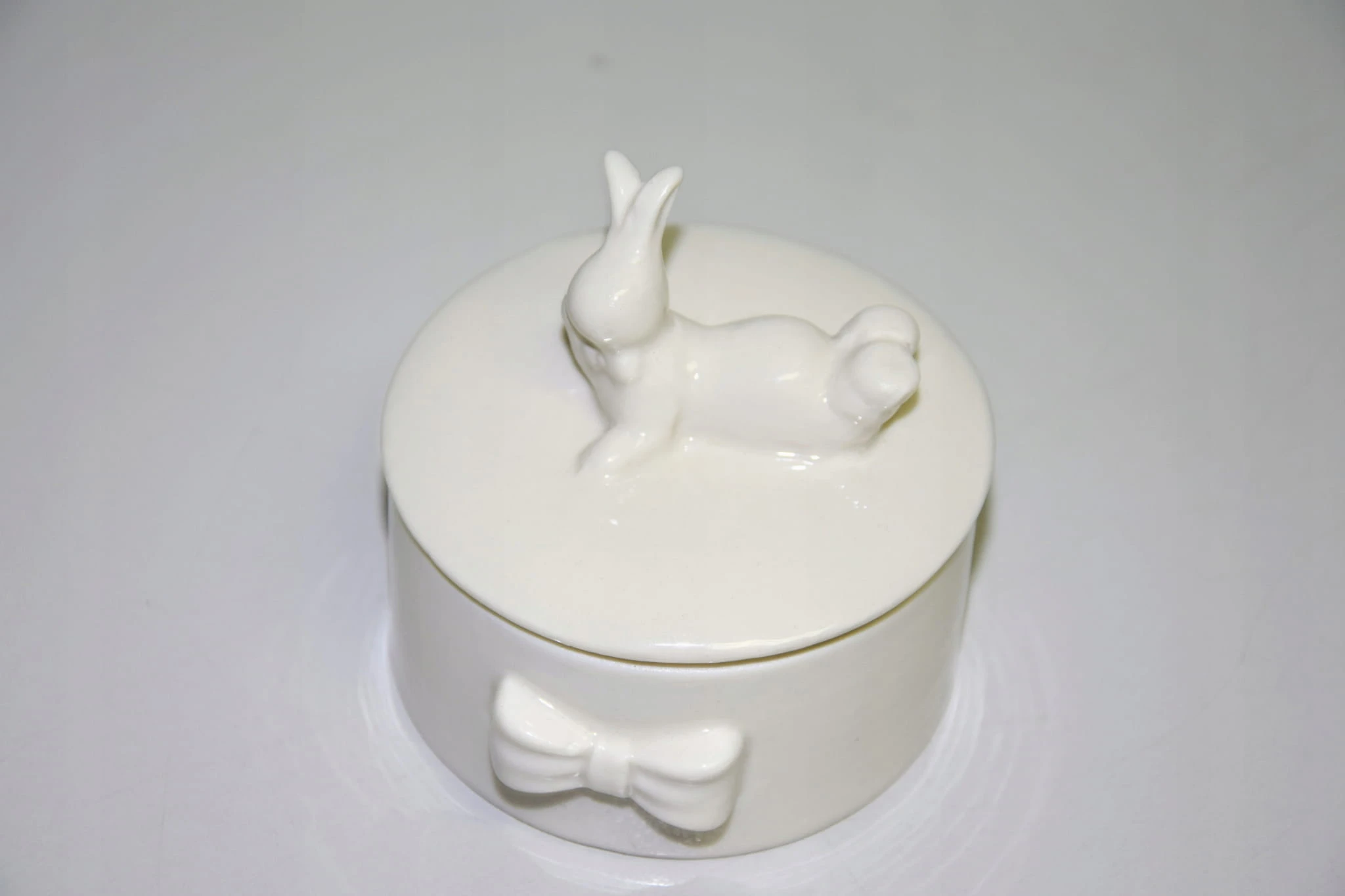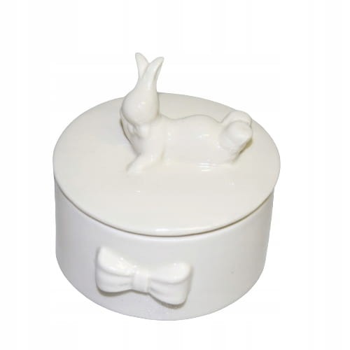 CERAMICZNE PUZDERKO Z ZAJĄCZKIEM I KOKARDĄ