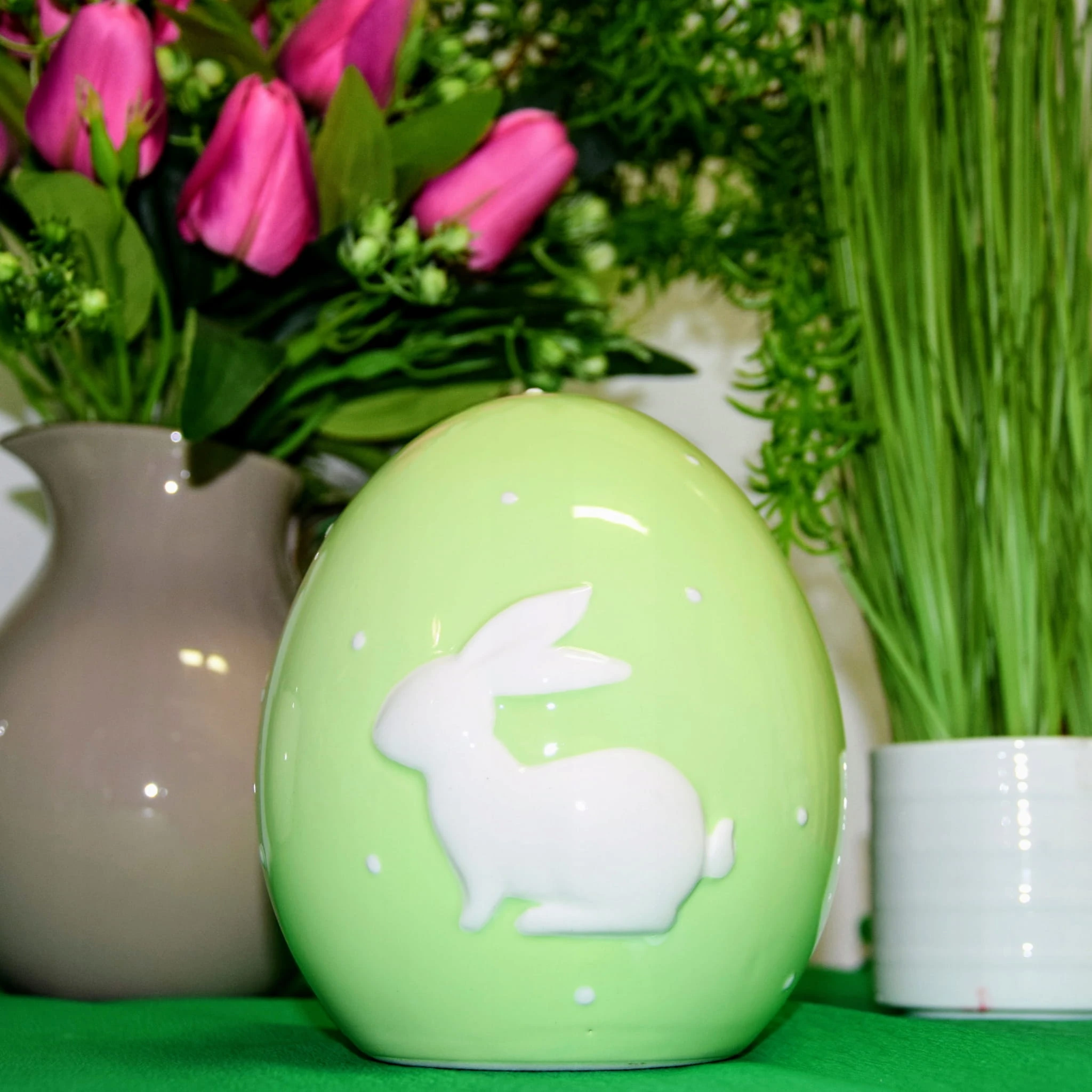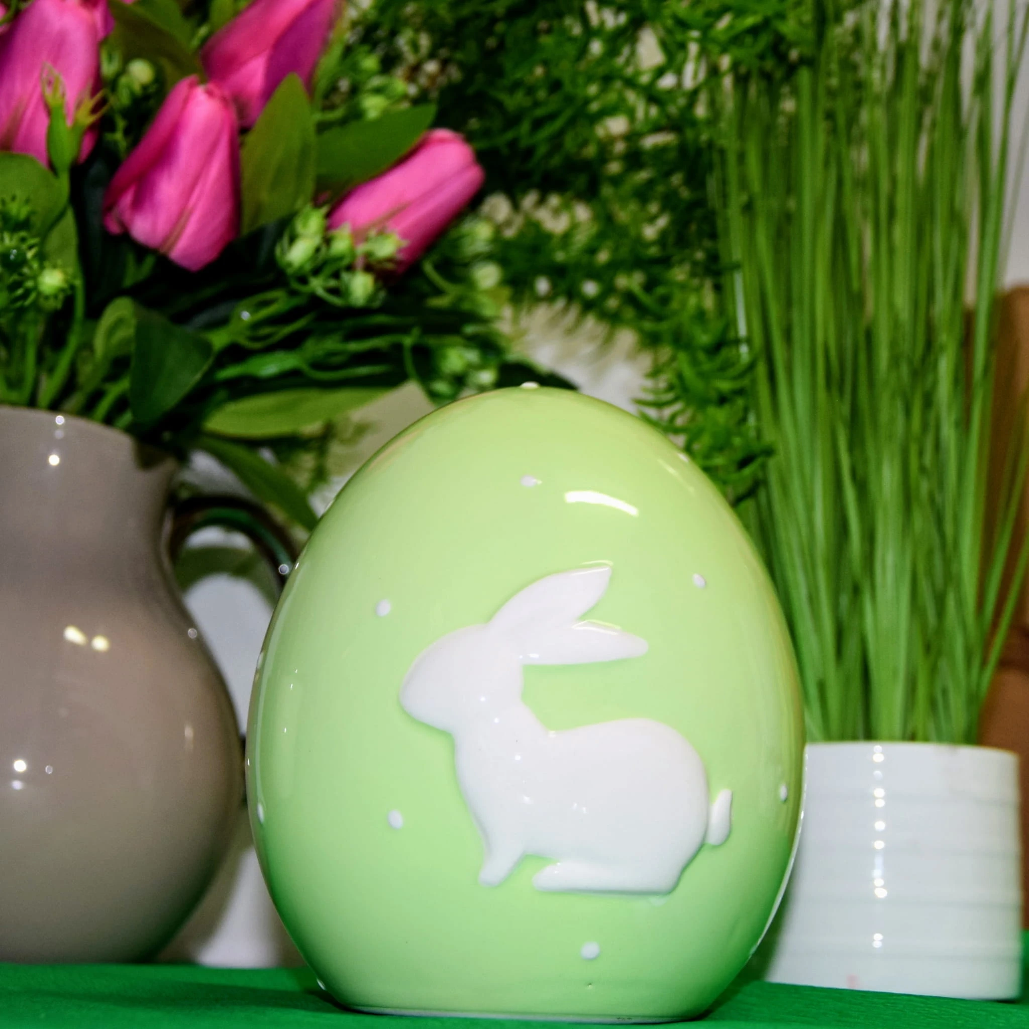 CERAMICZNE ZIELONE JAJKO Z BIAŁYM ZAJĄCZKIEM 14CM