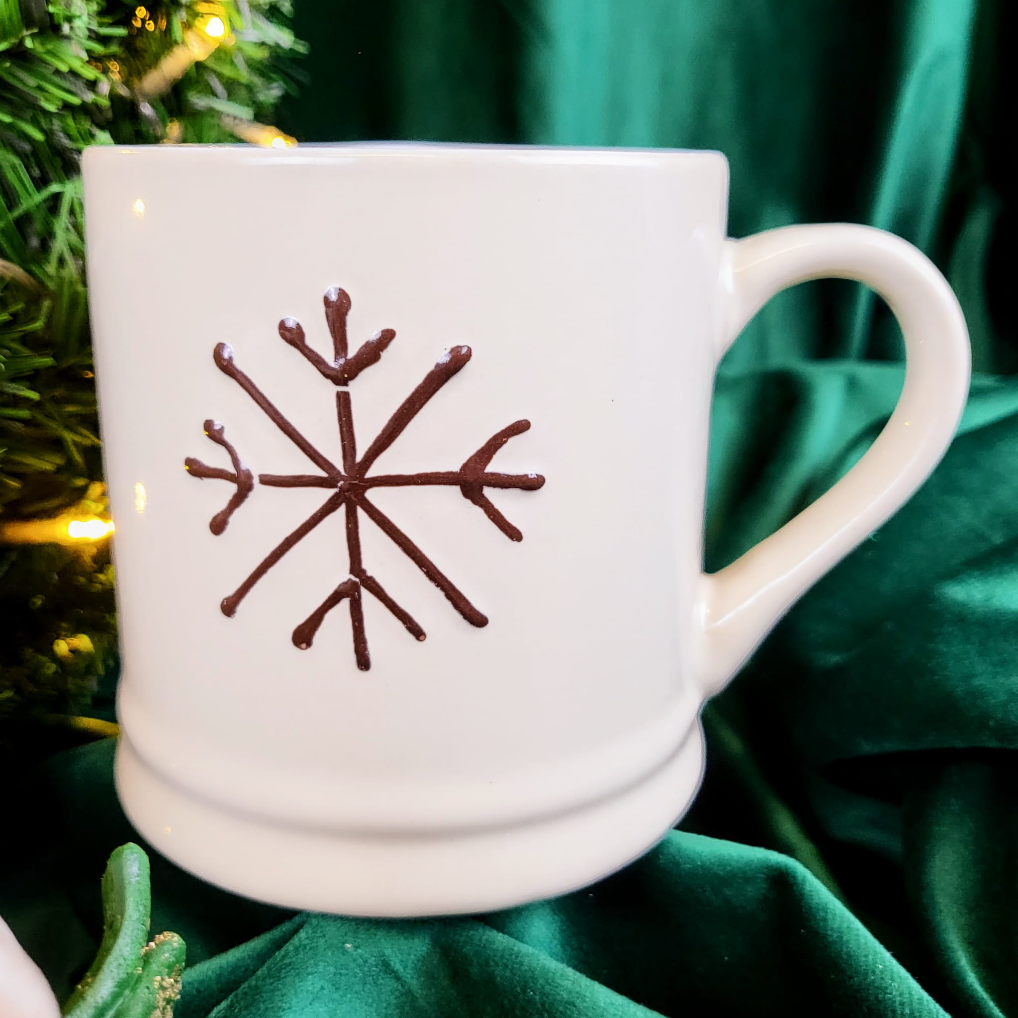 CERAMICZNY BIAŁY KUBEK Z ŚNIEŻYNKĄ 420ML