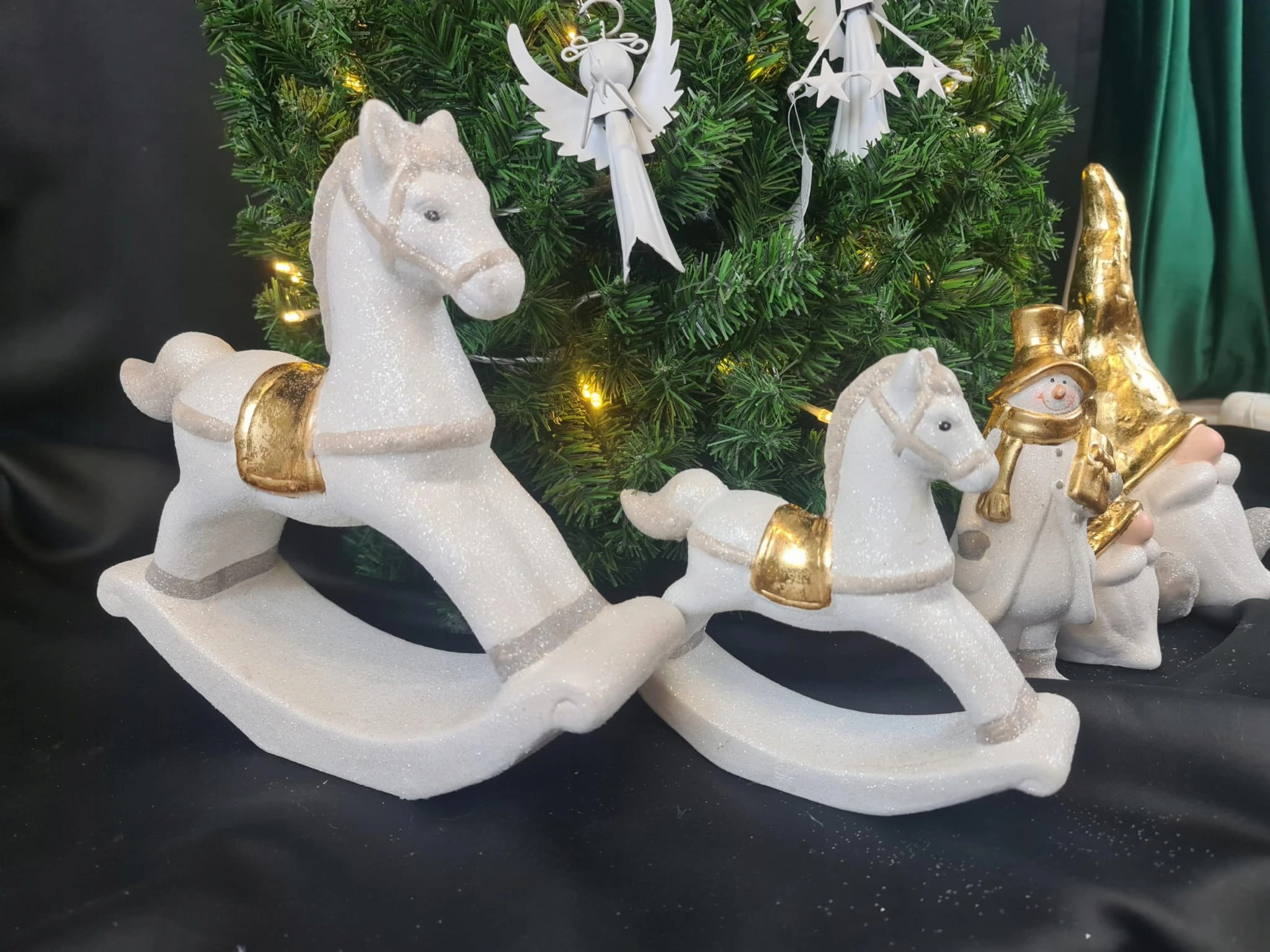 Idealna ozdoba lub dodatek do prezentu! Figurka konika wykonana jest z ceramiki i posiada siodło w kolorze złotym.