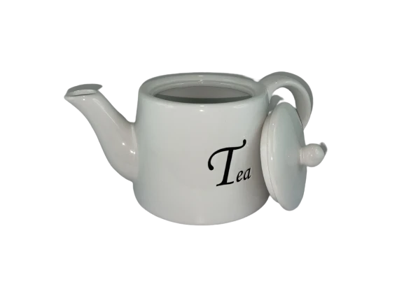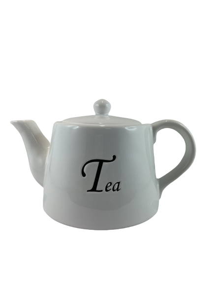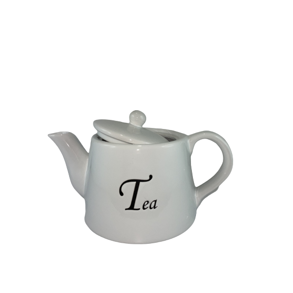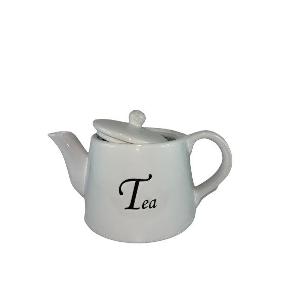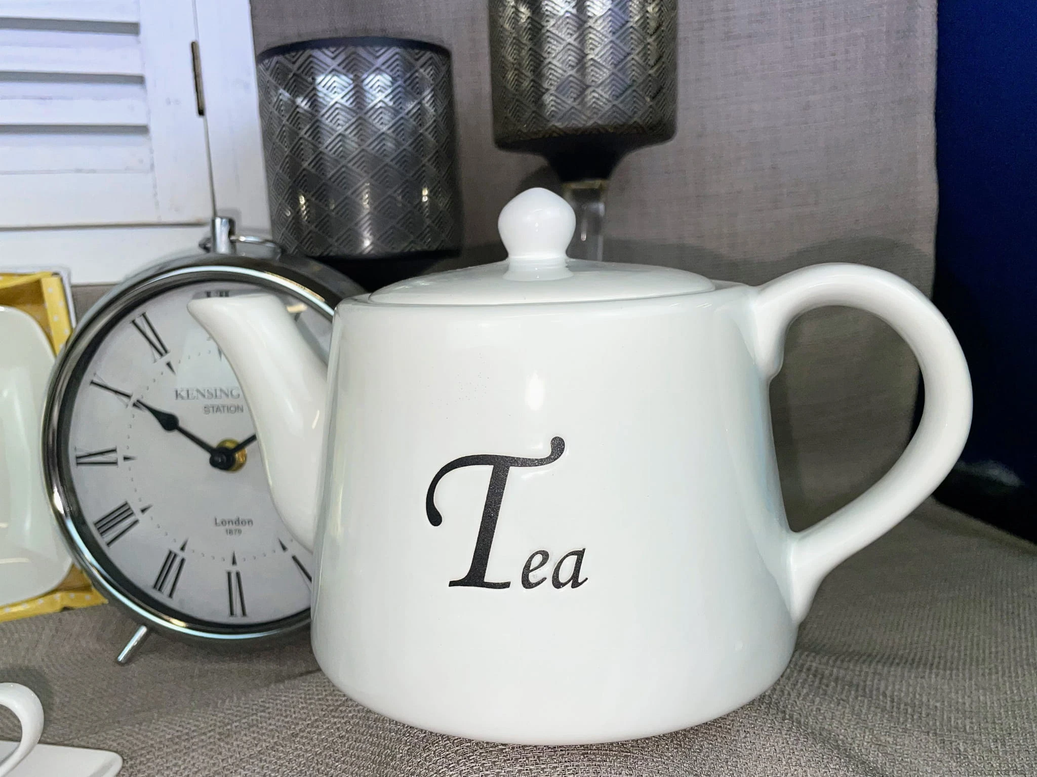 Piękna ceramika, dzbanek posiada napis "tea" (herbata).