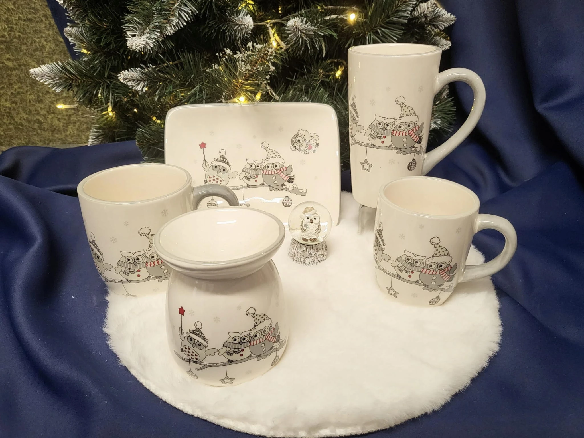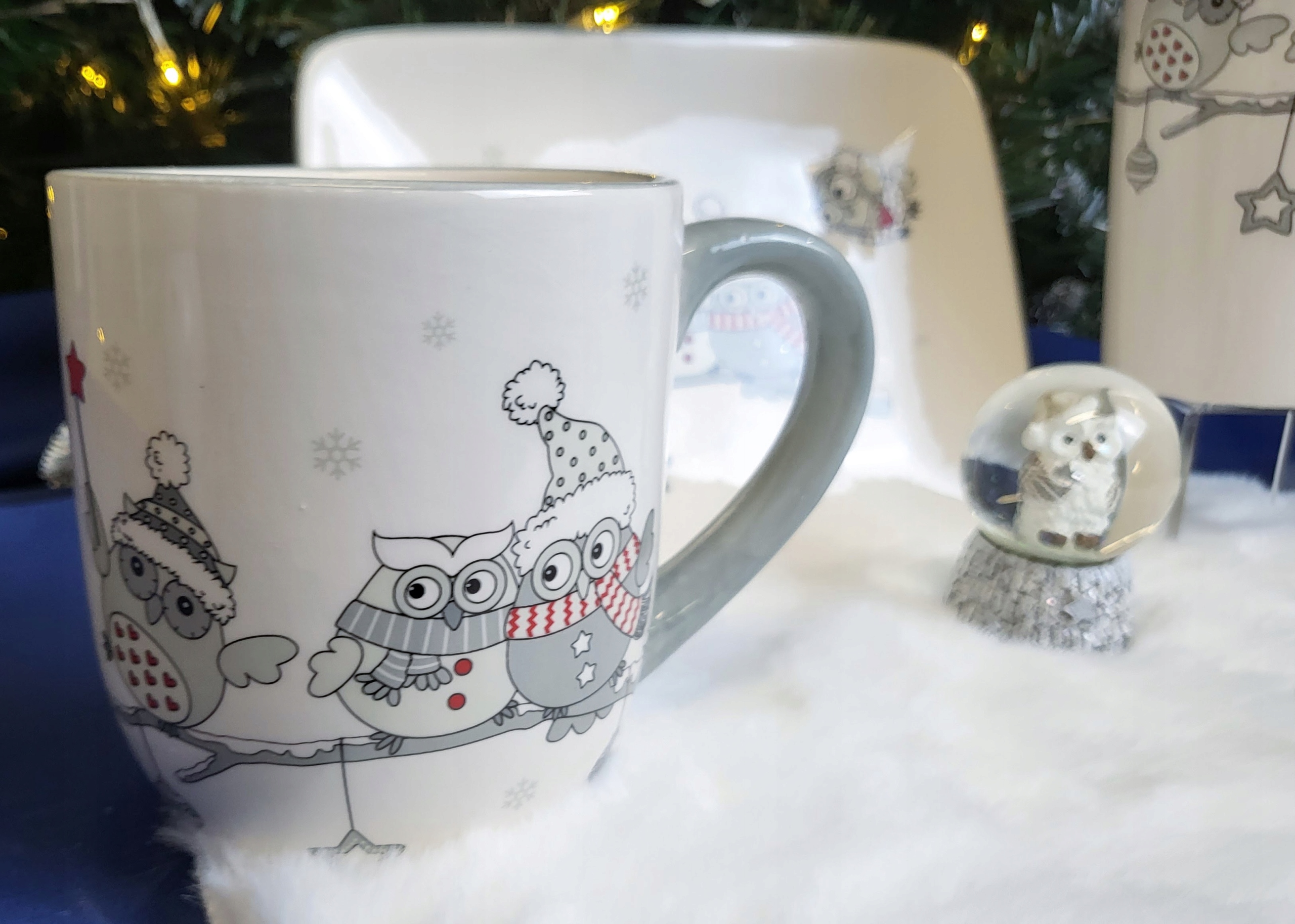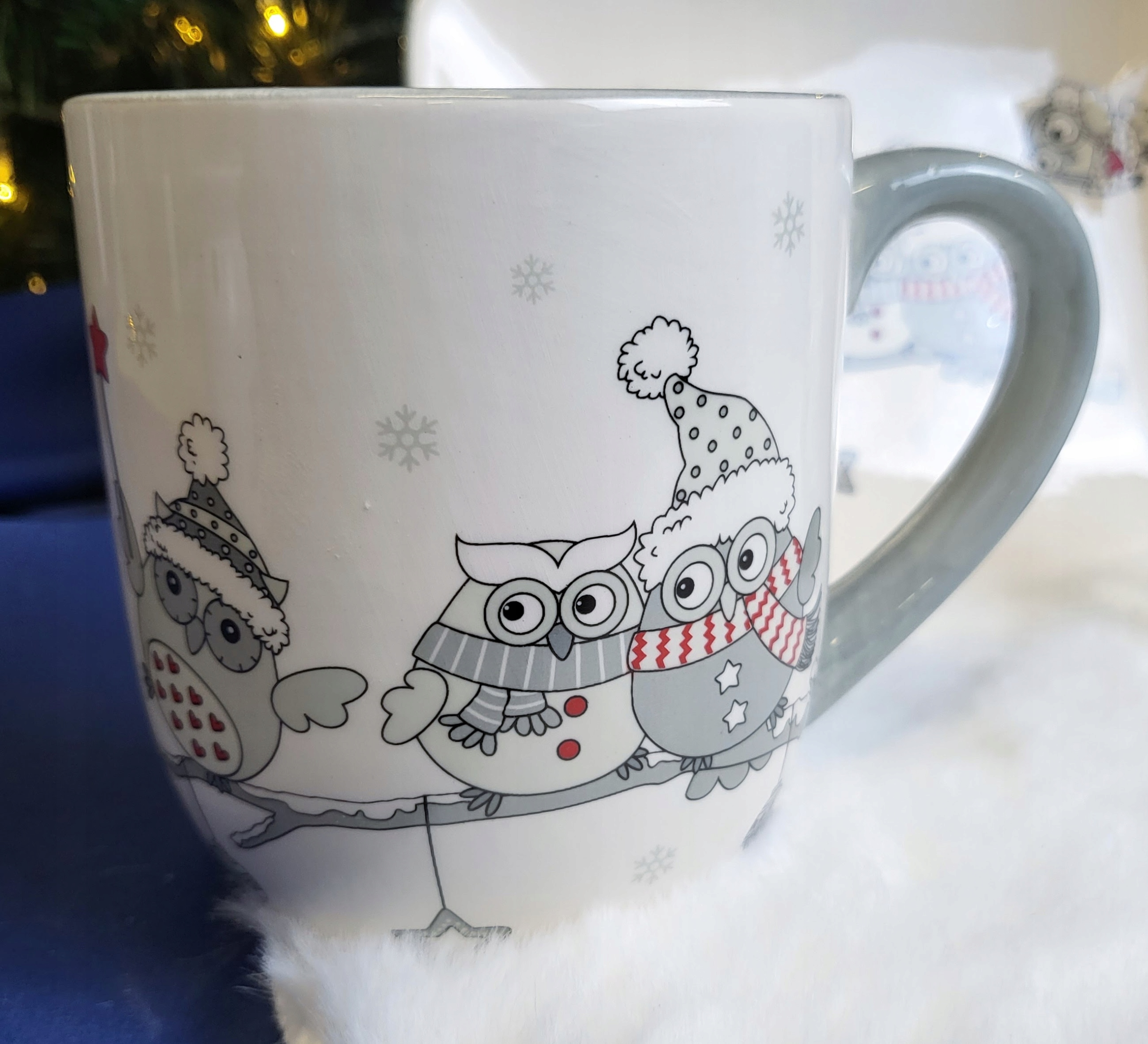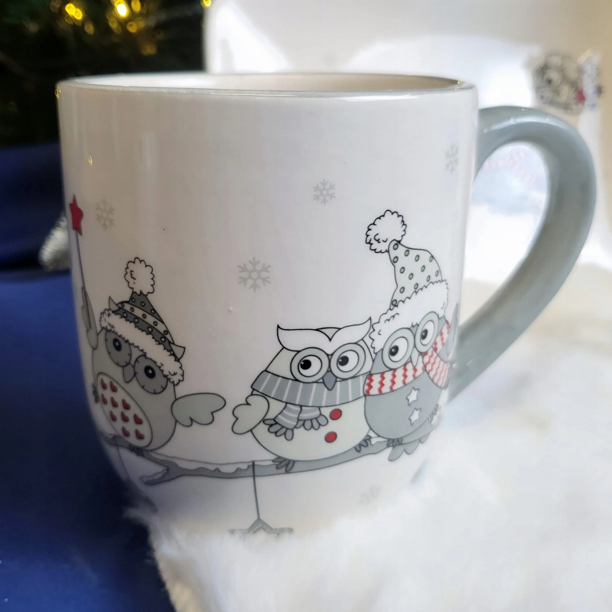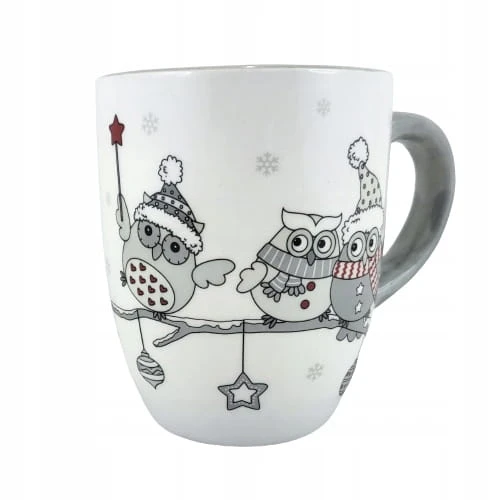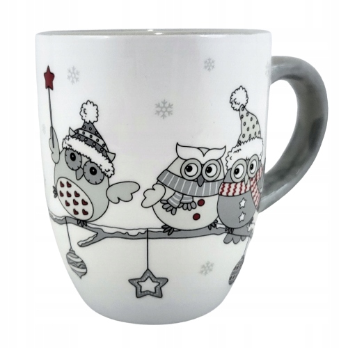 CERAMICZNY KUBEK ŚWIĄTECZNY Z ZIMOWYMI SOWAMI 14 x 9,5 x 10,8 cm