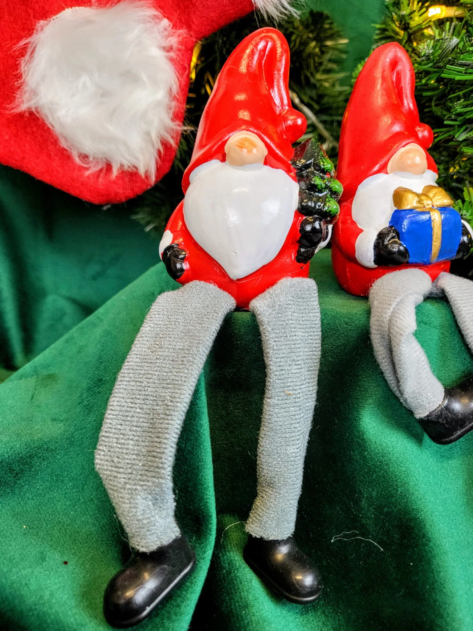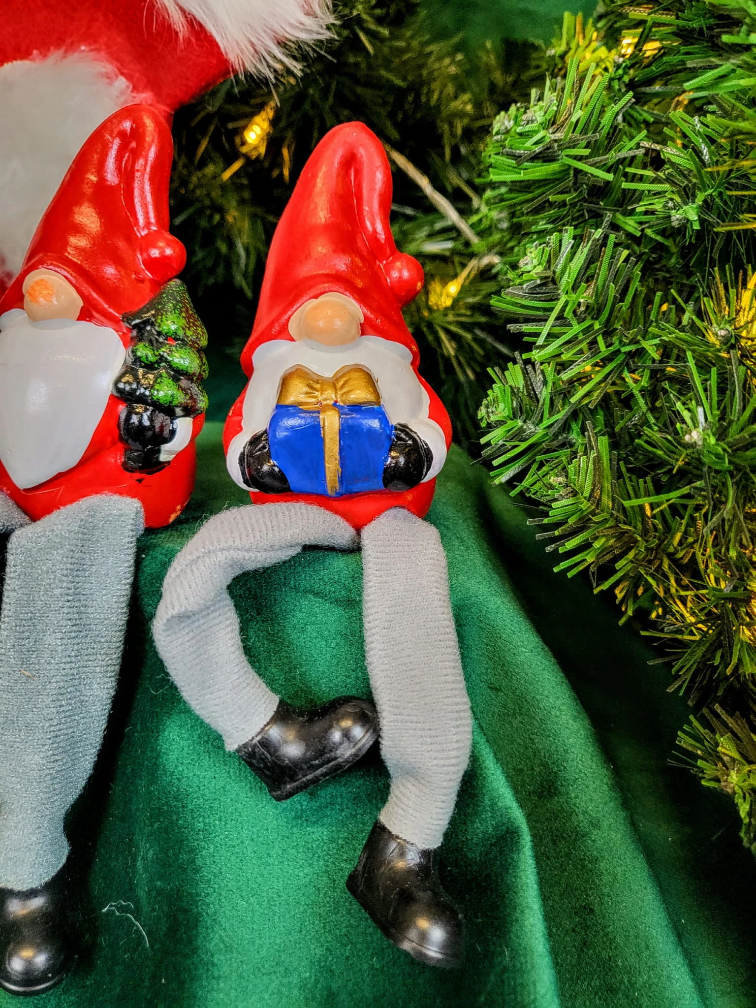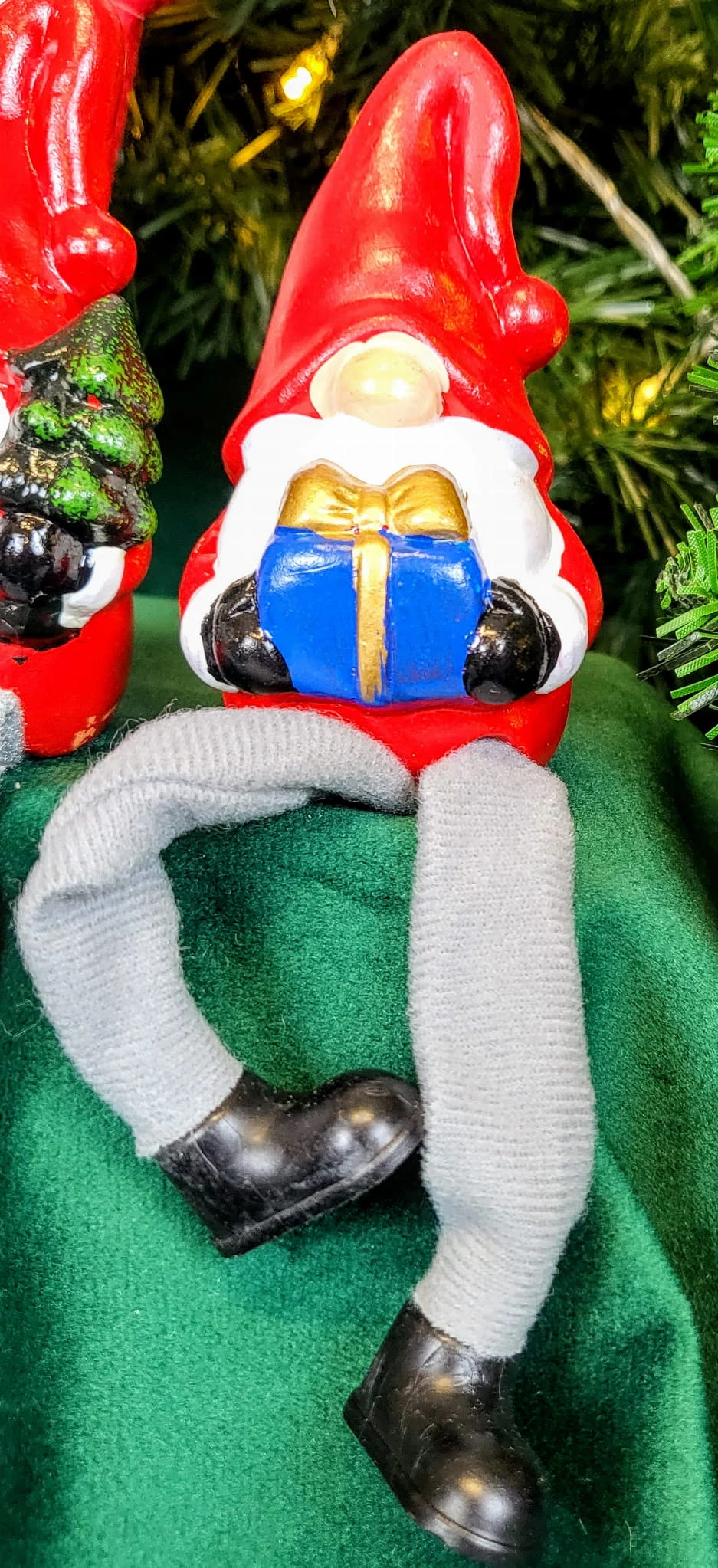 Ceramiczny skrzat ze zwisającymi nogami, będzie stanowił wyjątkowe uzupełnienie bożonarodzeniowych dekoracji.