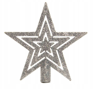 CZUBEK SZPIC NA CHOINKĘ 20 CM GWIAZDA SREBRNA