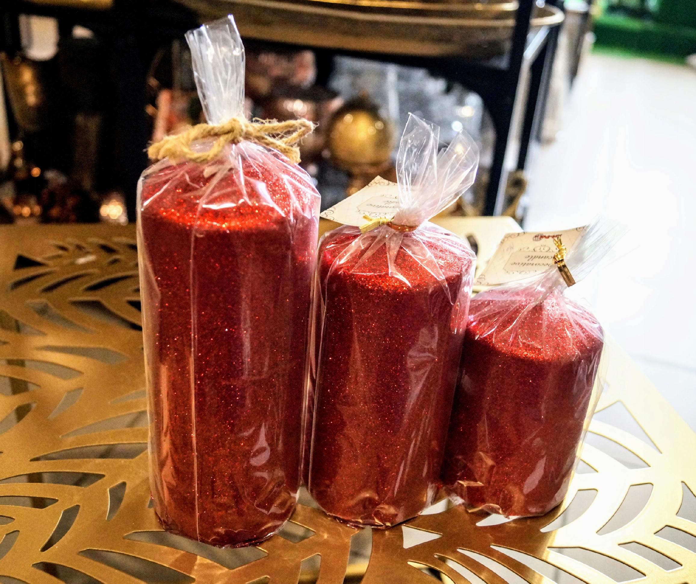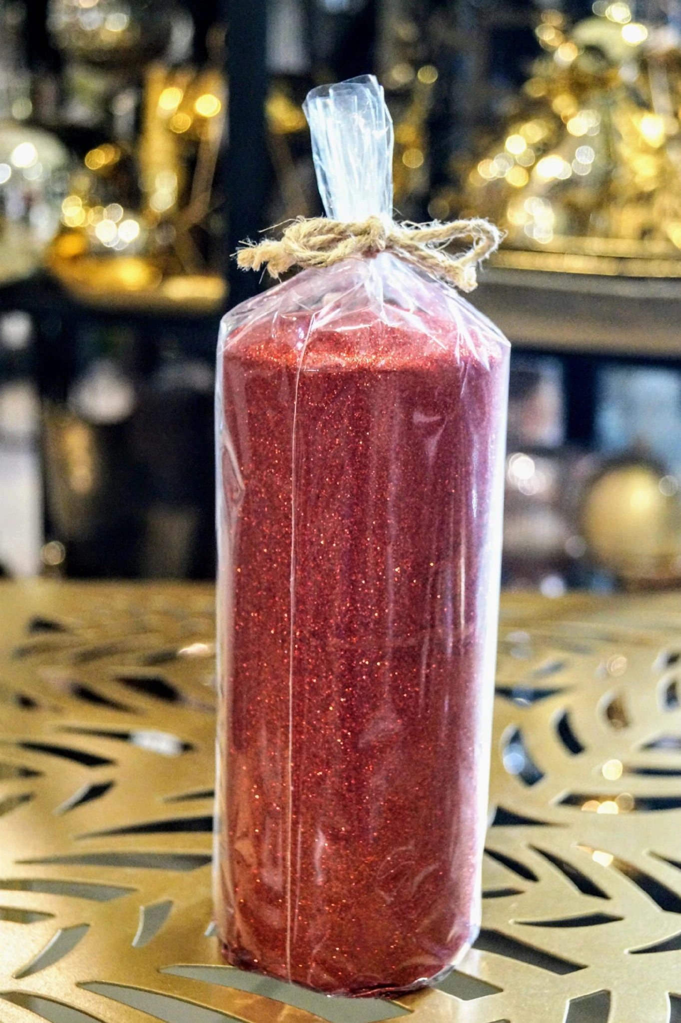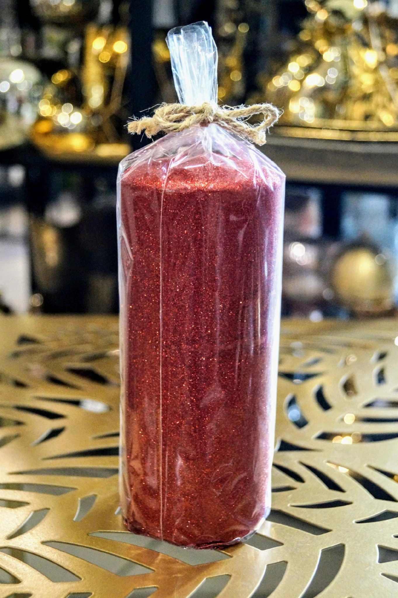 Czerwony Świeca Glamur BROKAT -Walec Duży 18cm