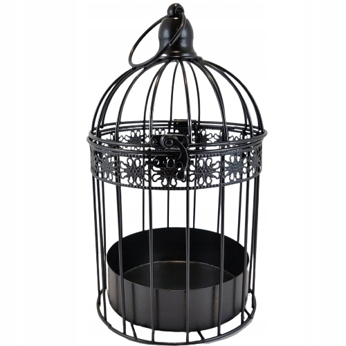 DEKORACJA LAMPION METALOWY KLATKA CZARNA 32CM