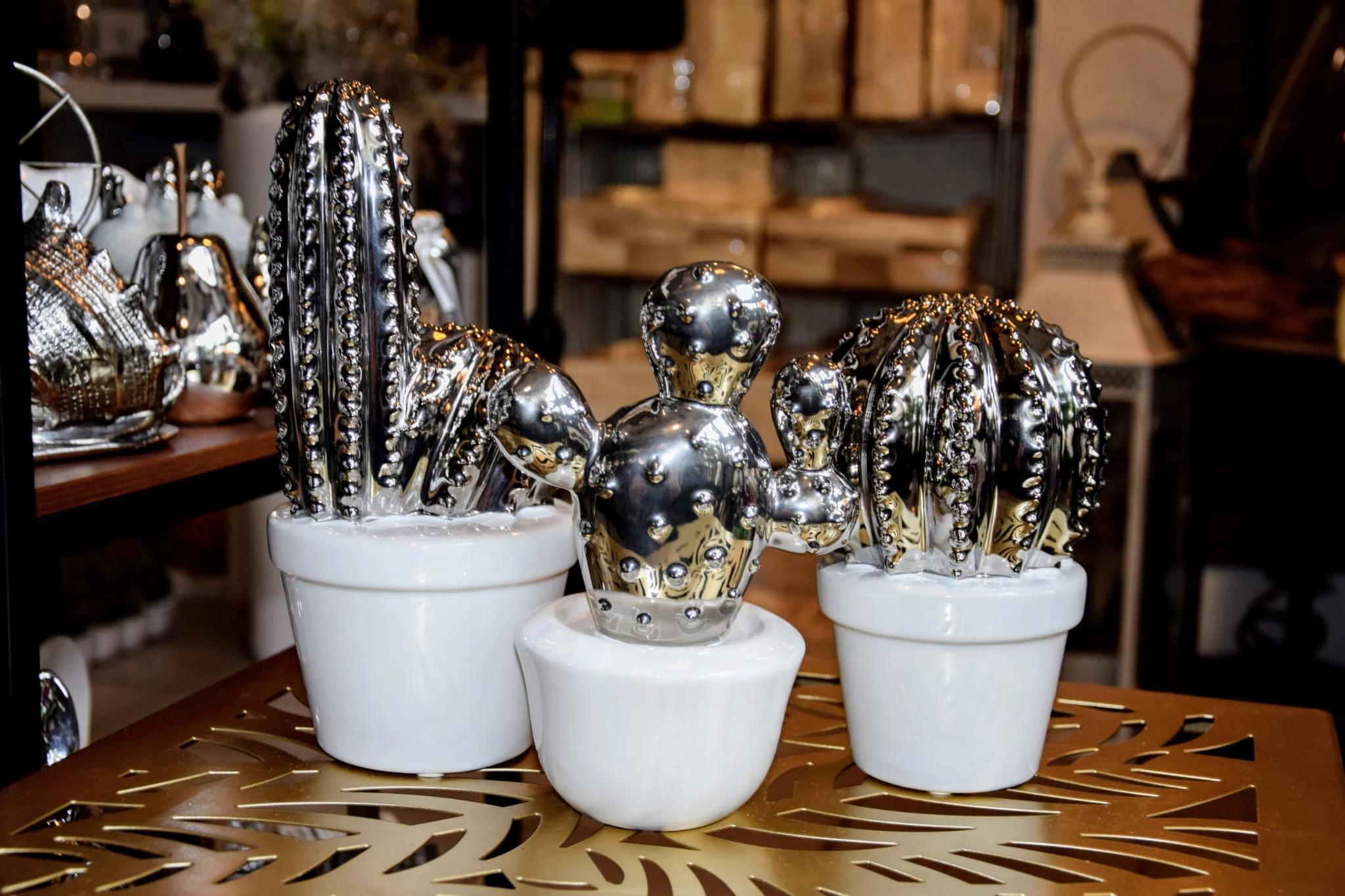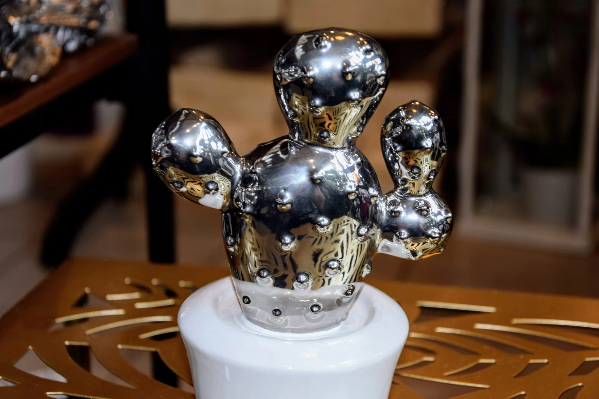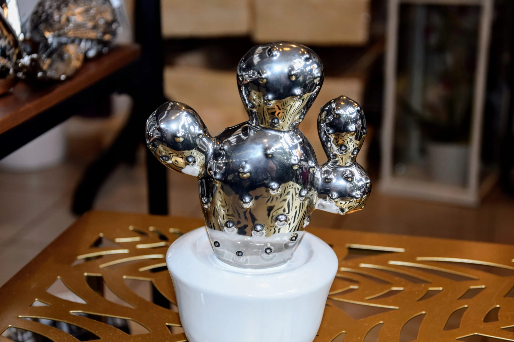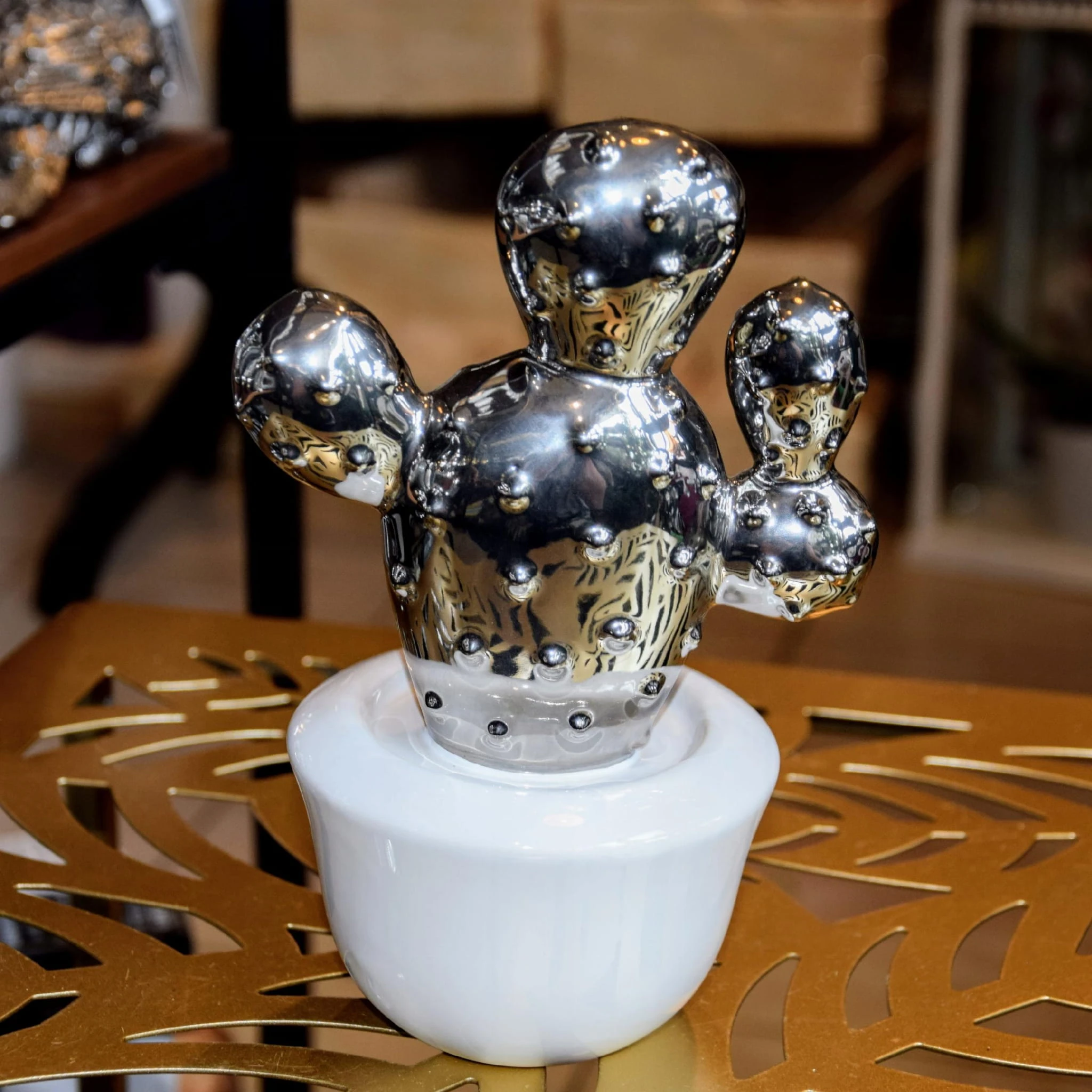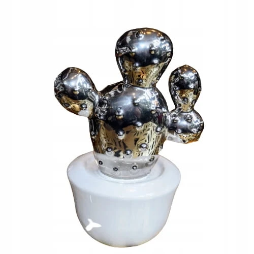 DEKORACJA OZDOBA KAKTUS CERAMICZNY BIAŁO-SREBRNY