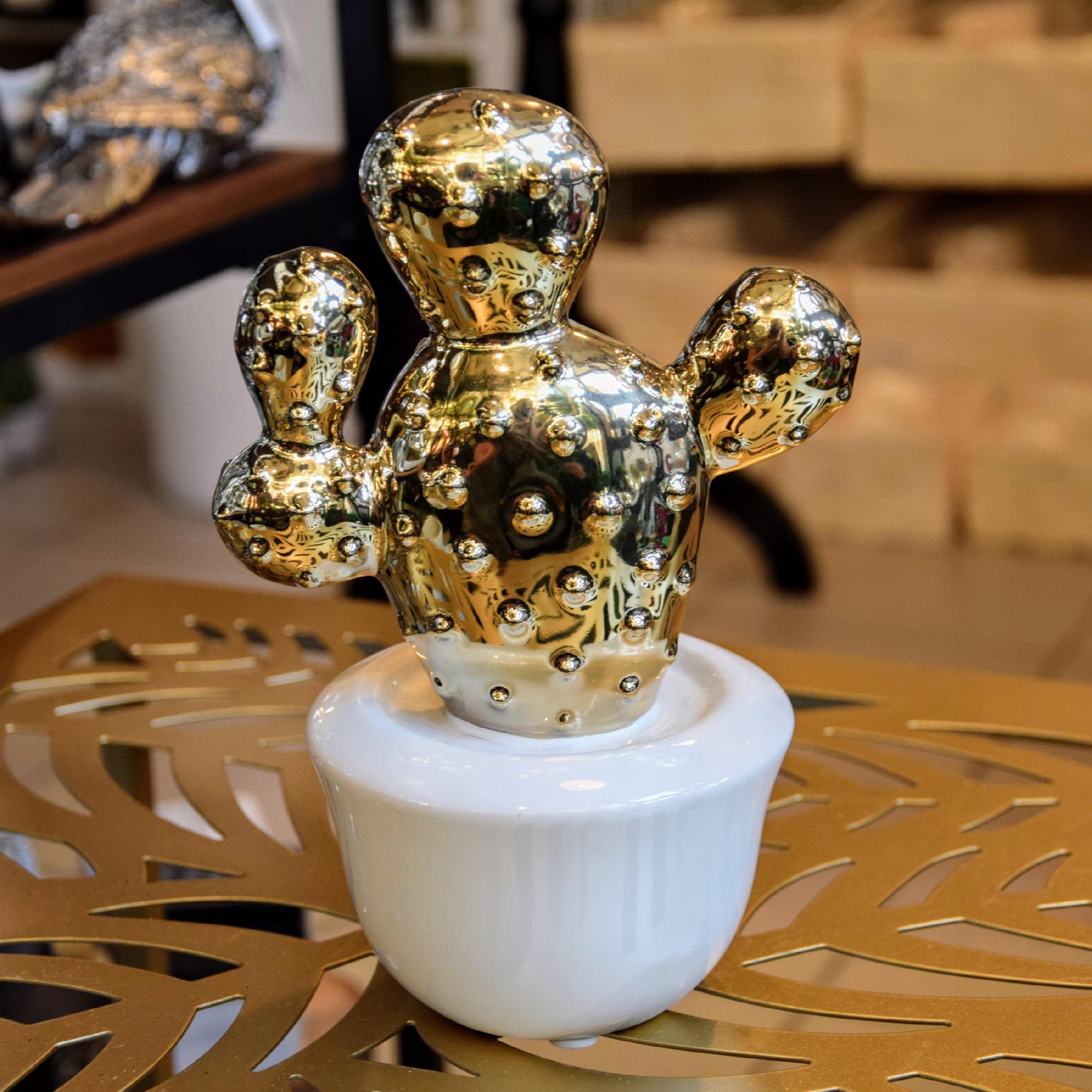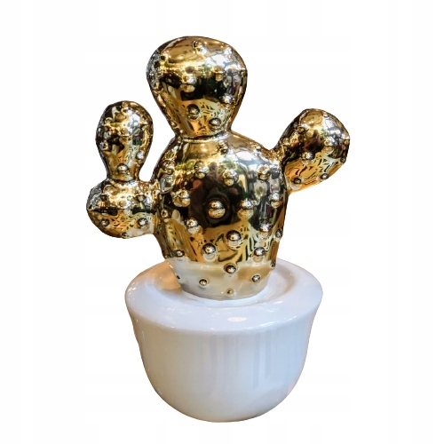 DEKORACJA OZDOBA KAKTUS CERAMICZNY BIAŁO ZŁOTY