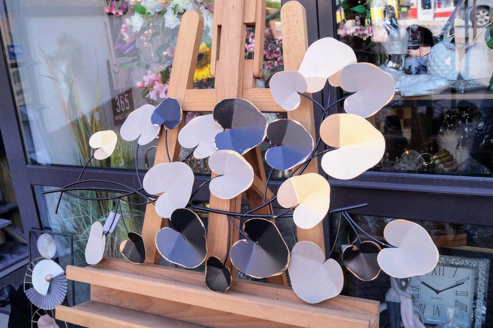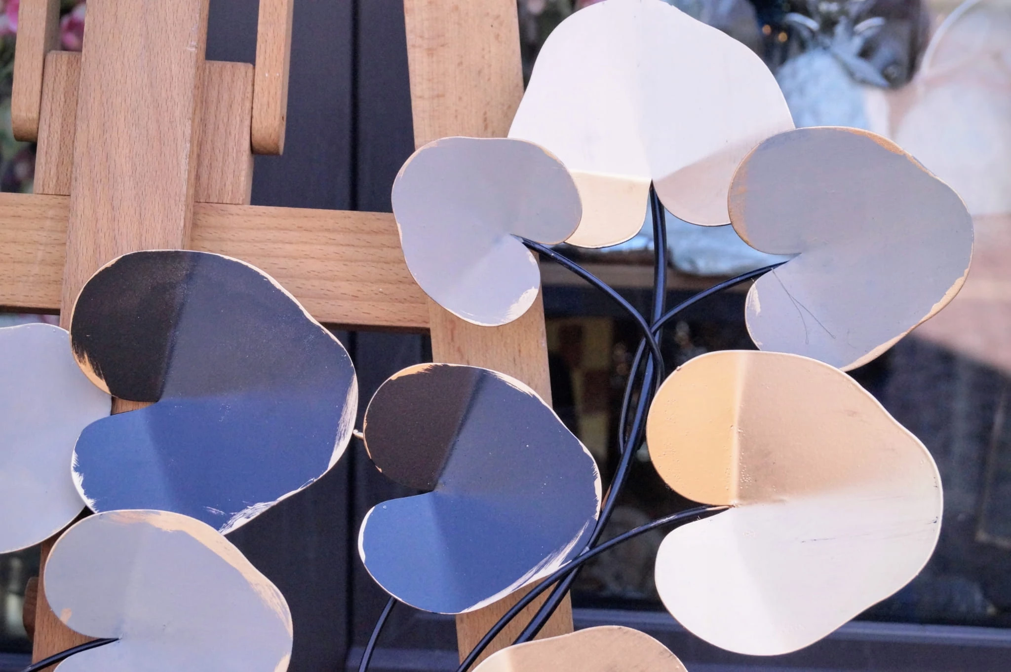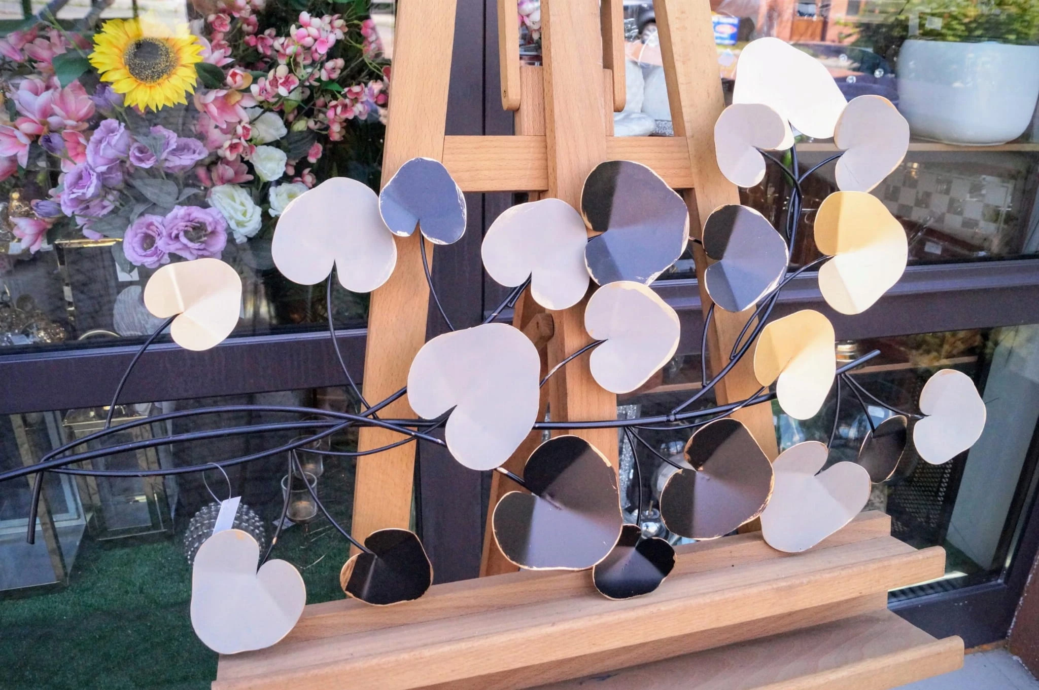 Metalowa dekoracja z kolorowymi liśćmi