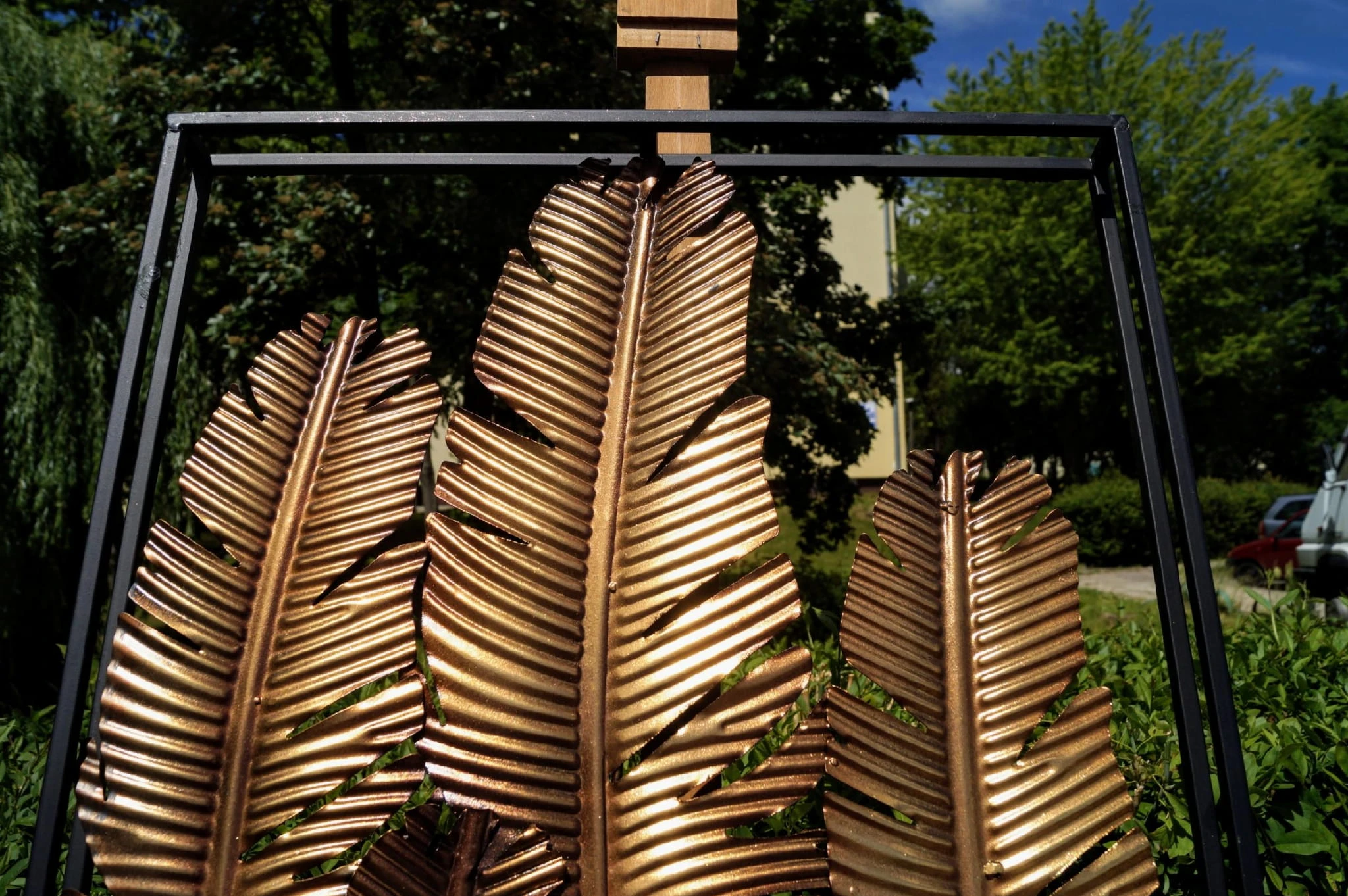 Ciekawa, oryginalna, metalowa dekoracja ścienna.