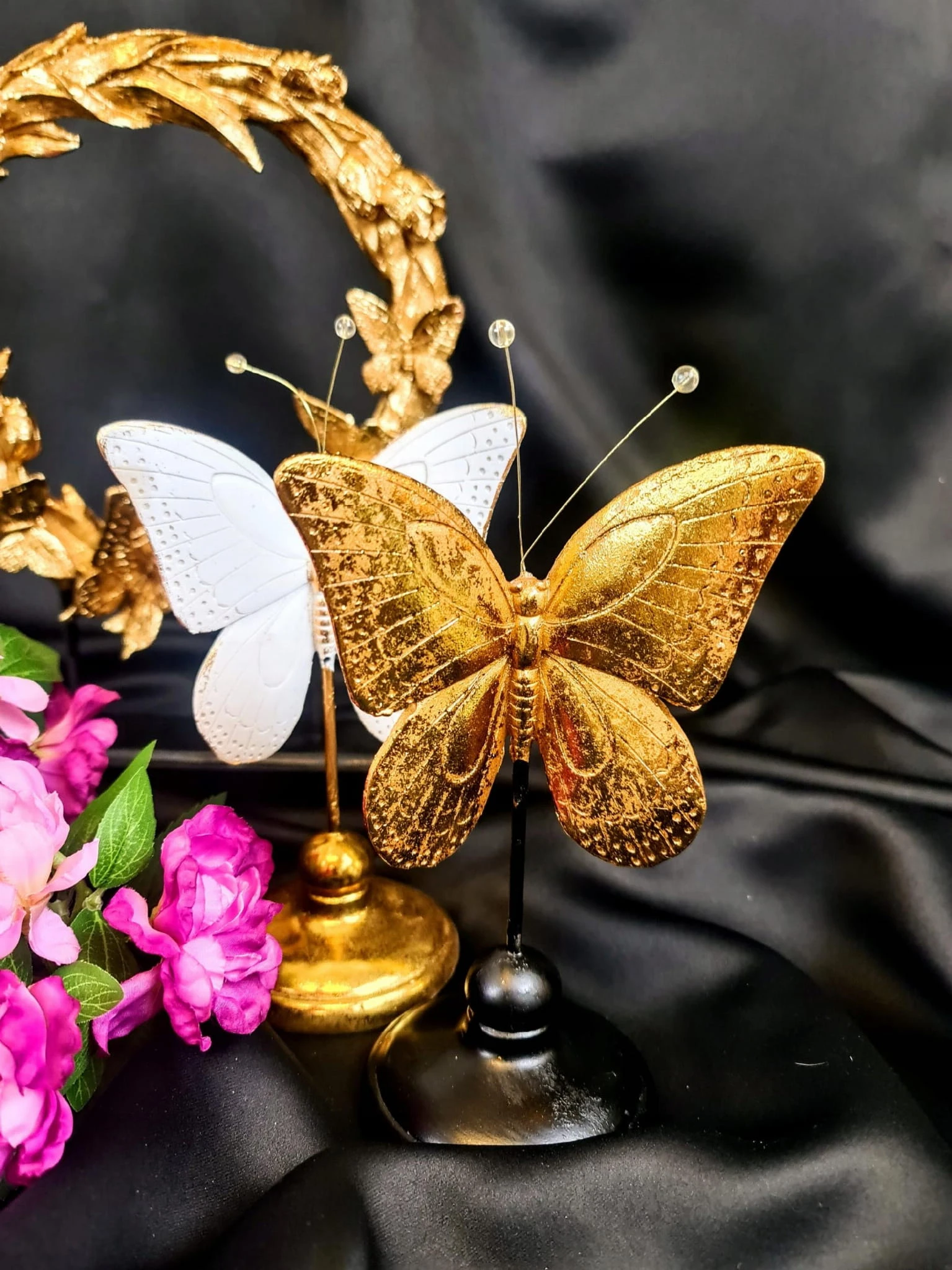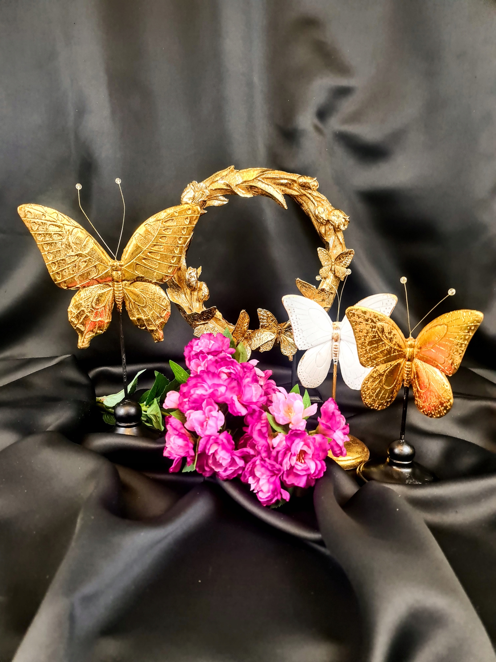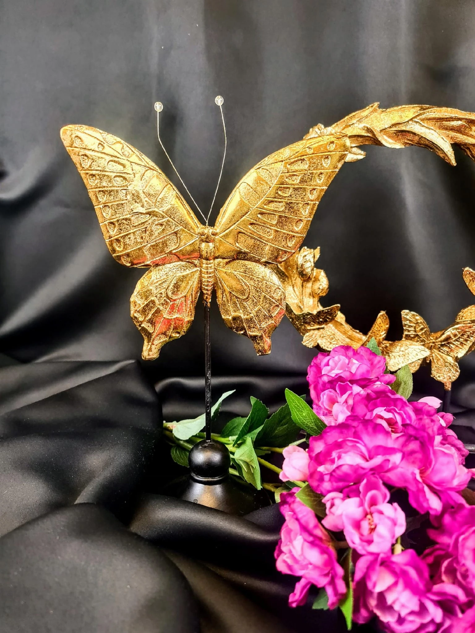 DEKORACJA ZŁOTE MOTYLE NA PODSTAWIE 28X7,8X35 CM