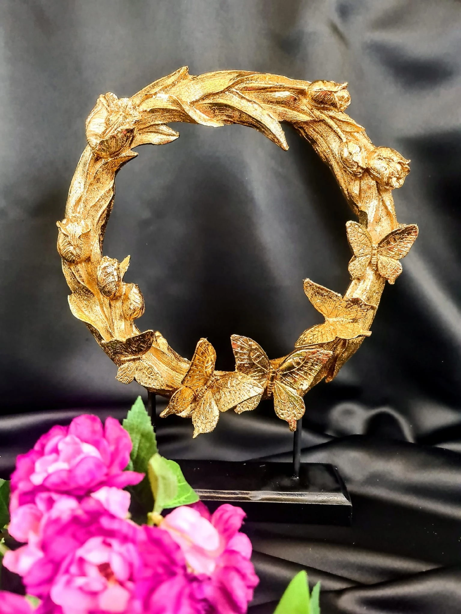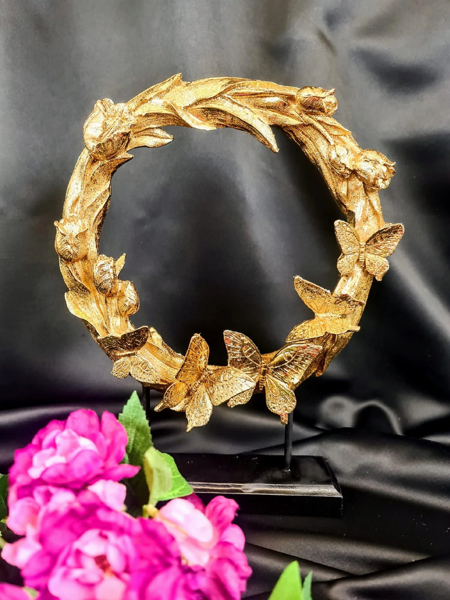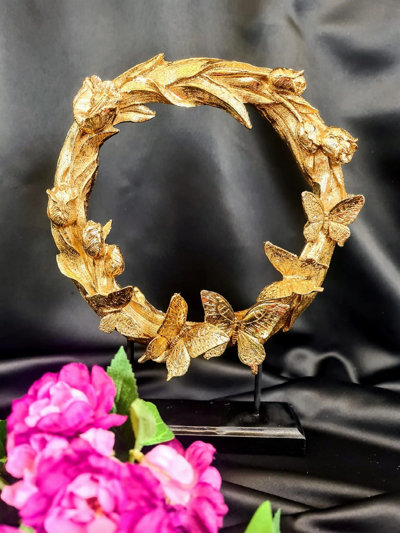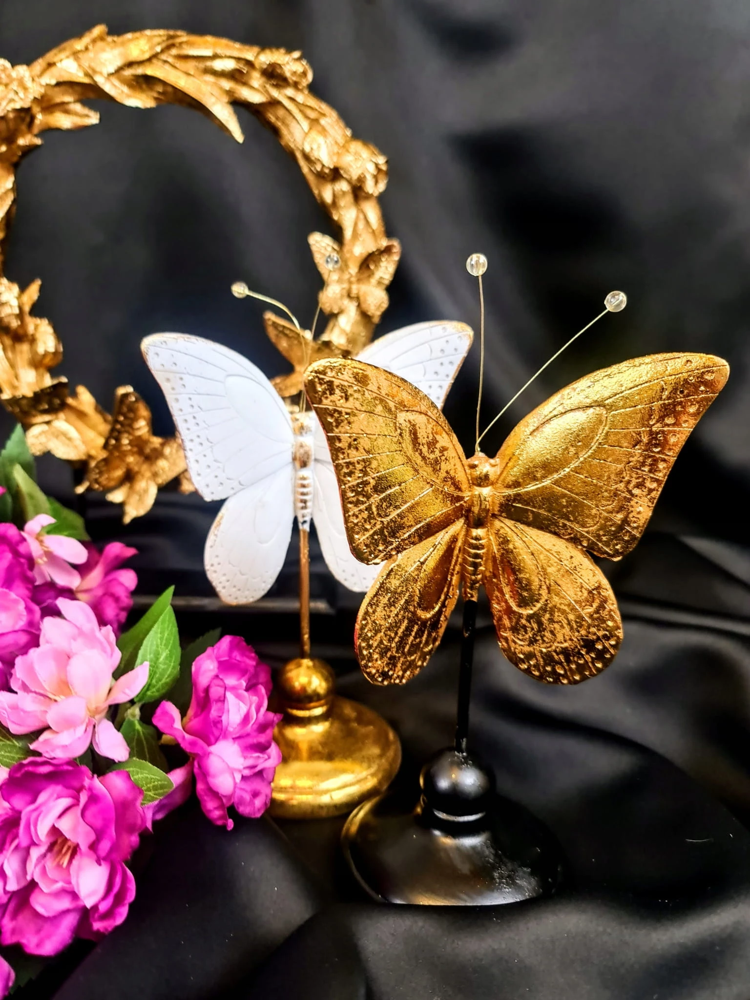 DEKORACJA ZŁOTE MOTYLE NA PODSTAWIE 28X7,8X35 CM