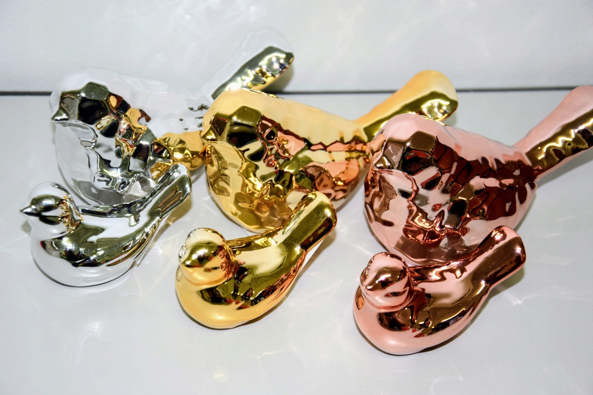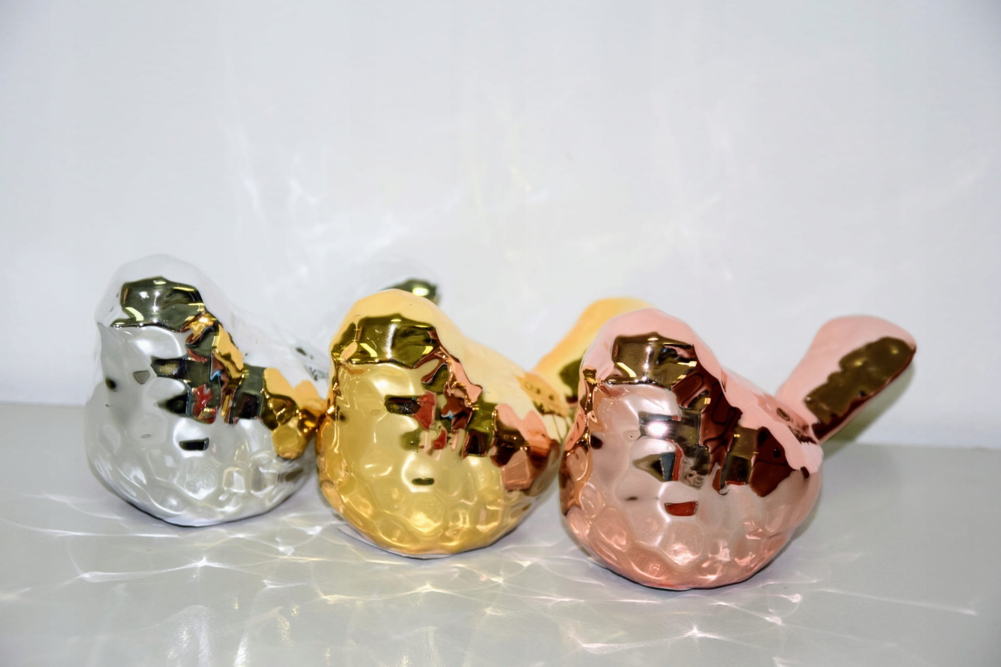 Ceramiczna figurka w srebrnym, złotym lub miedzianym kolorze.