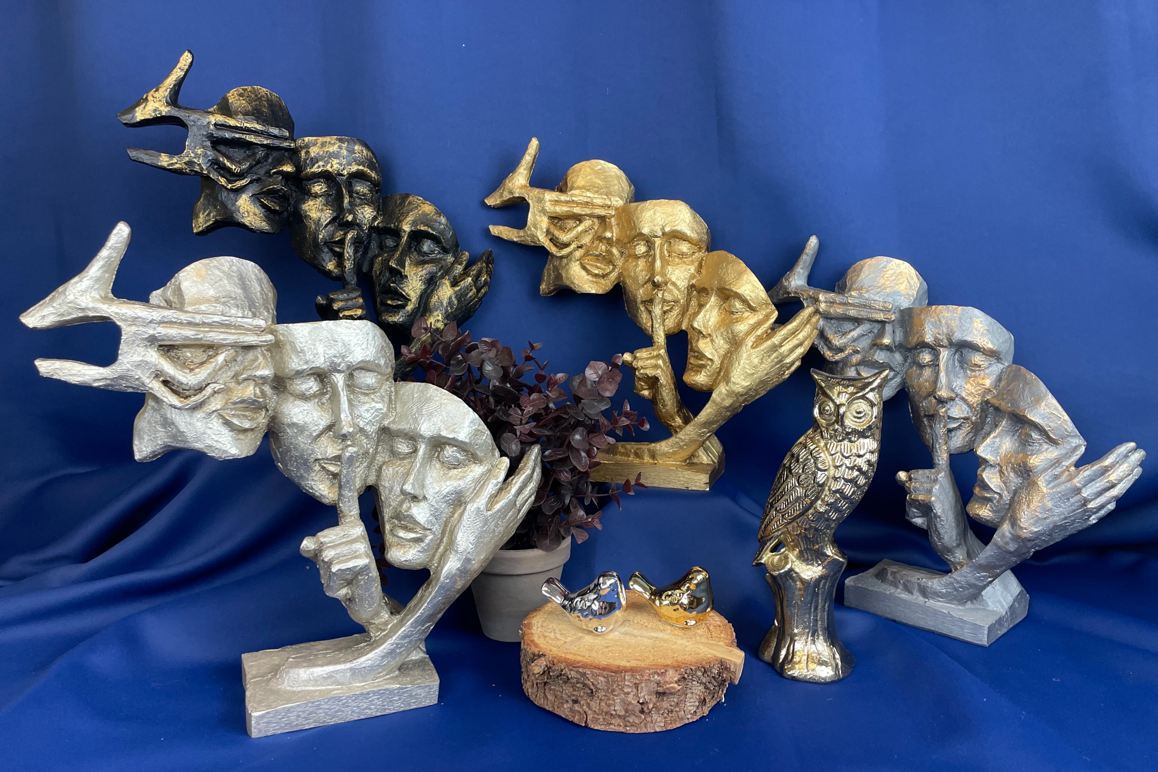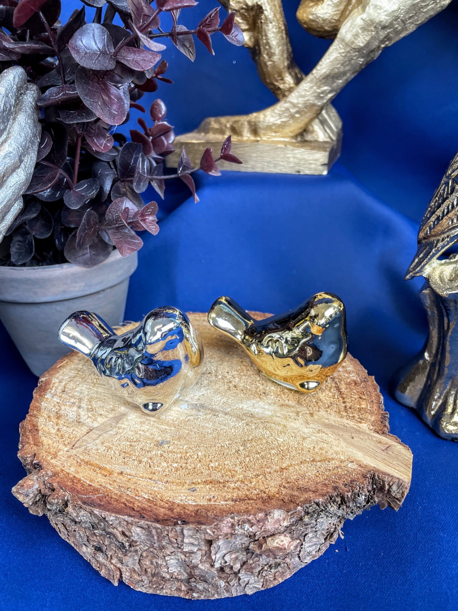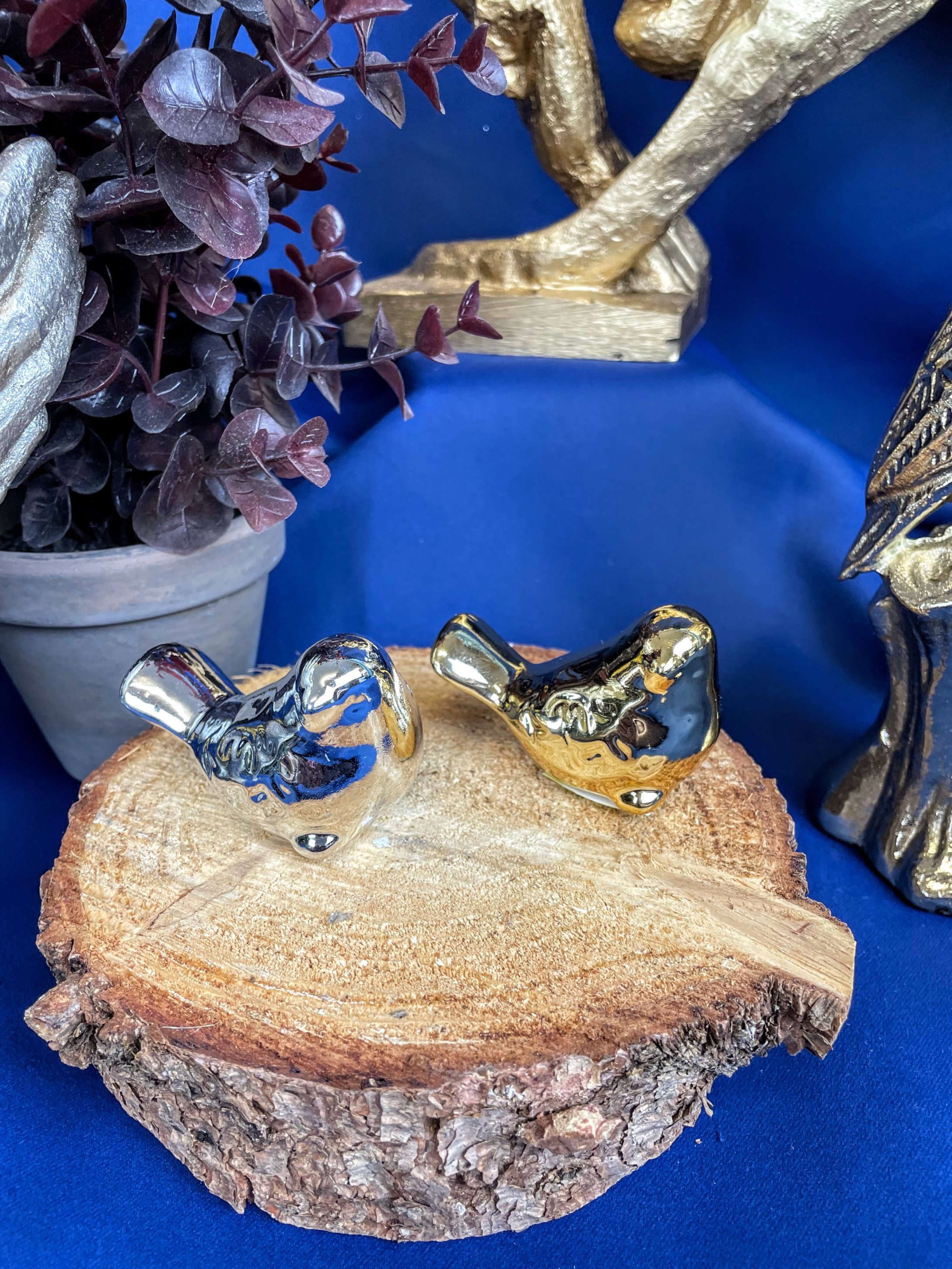 Ceramiczna figurka w złotym lub srebrnym kolorze. Idealnie wkomponuje się w każde nowoczesne jak i klasyczne wnętrze.