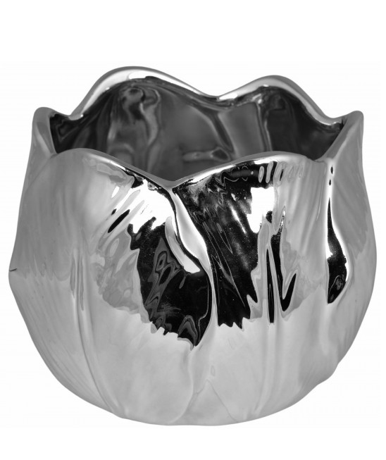 DONICA OSŁONKA CERAMICZNA KWIAT SREBRNA 15X15X14CM