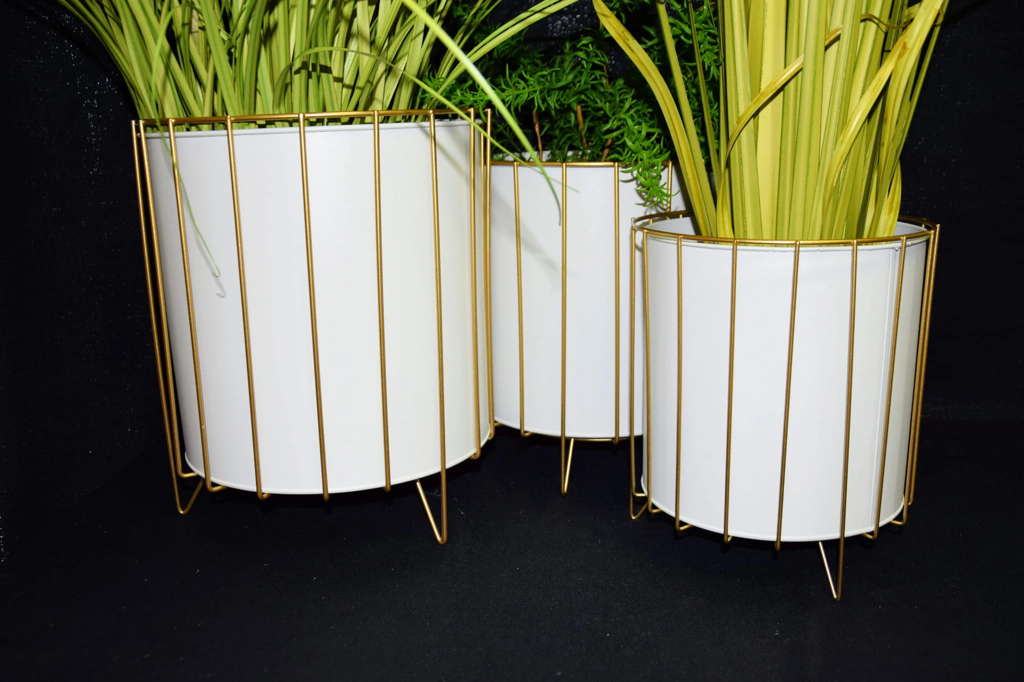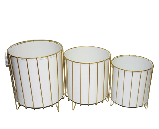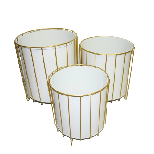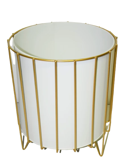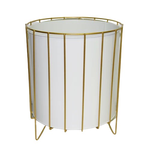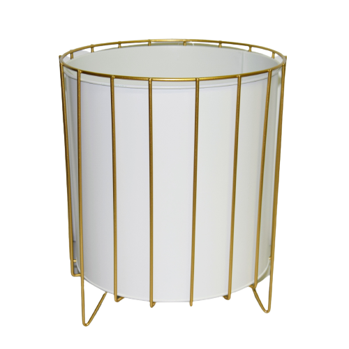 Oryginalny element dekoracyjny. Biała doniczka na złotym stelażu.