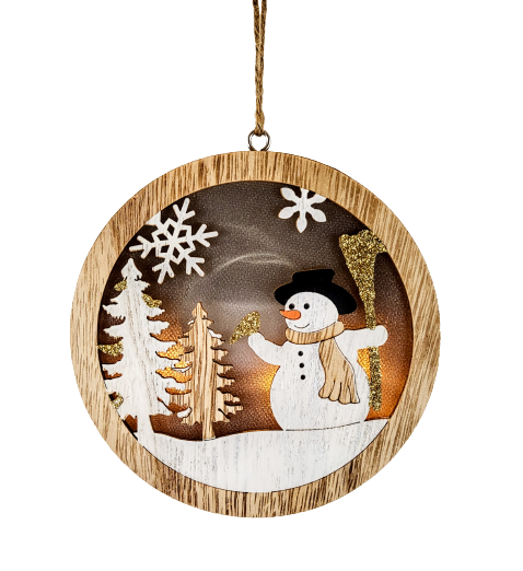 DREWNIANA DEKORACJA ZE ŚWIATŁEM LED BAŁWAN 13CM