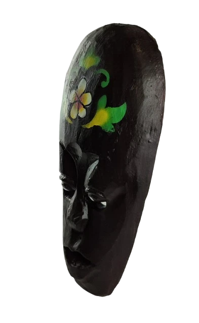 DREWNIANA MASKA Z KWIATEM 20 CM