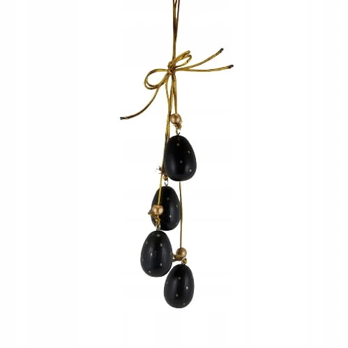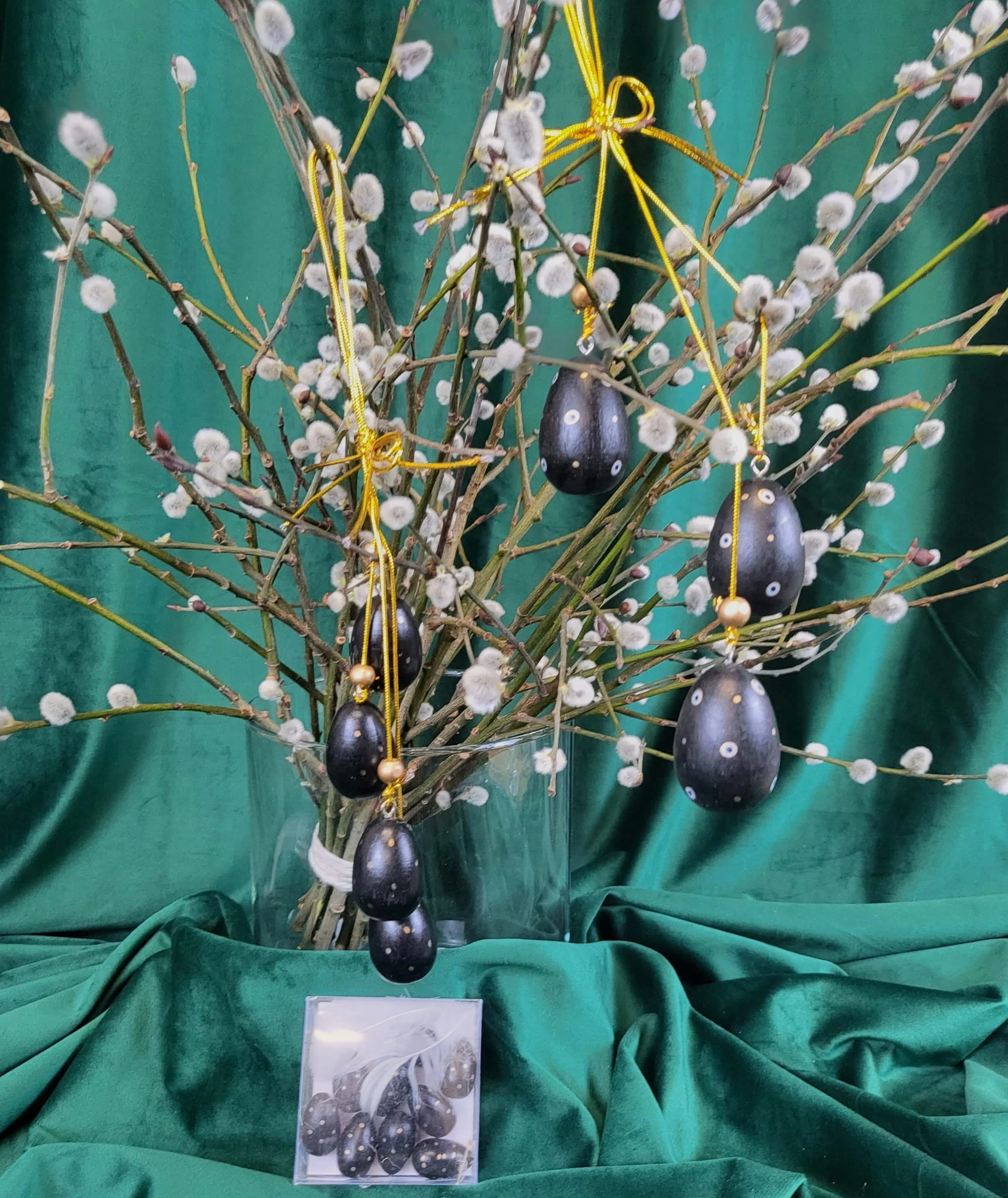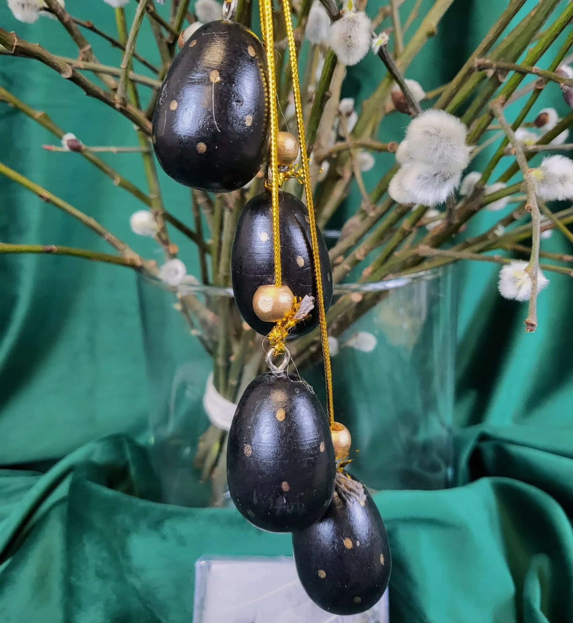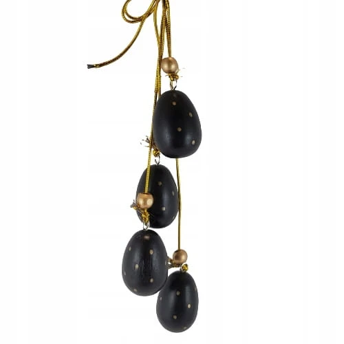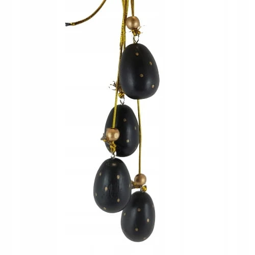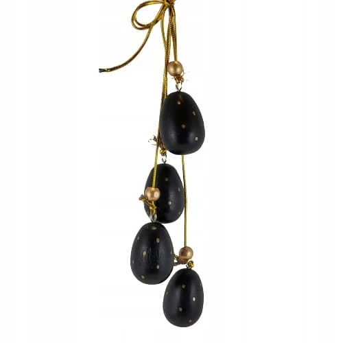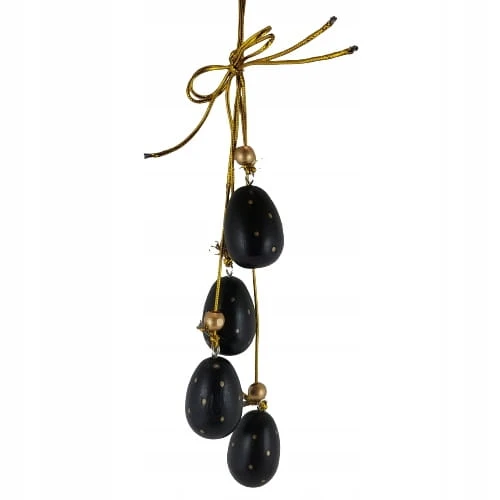 DREWNIANA ZAWIESZKA 4 JAJKA CZARNE W KROPKI