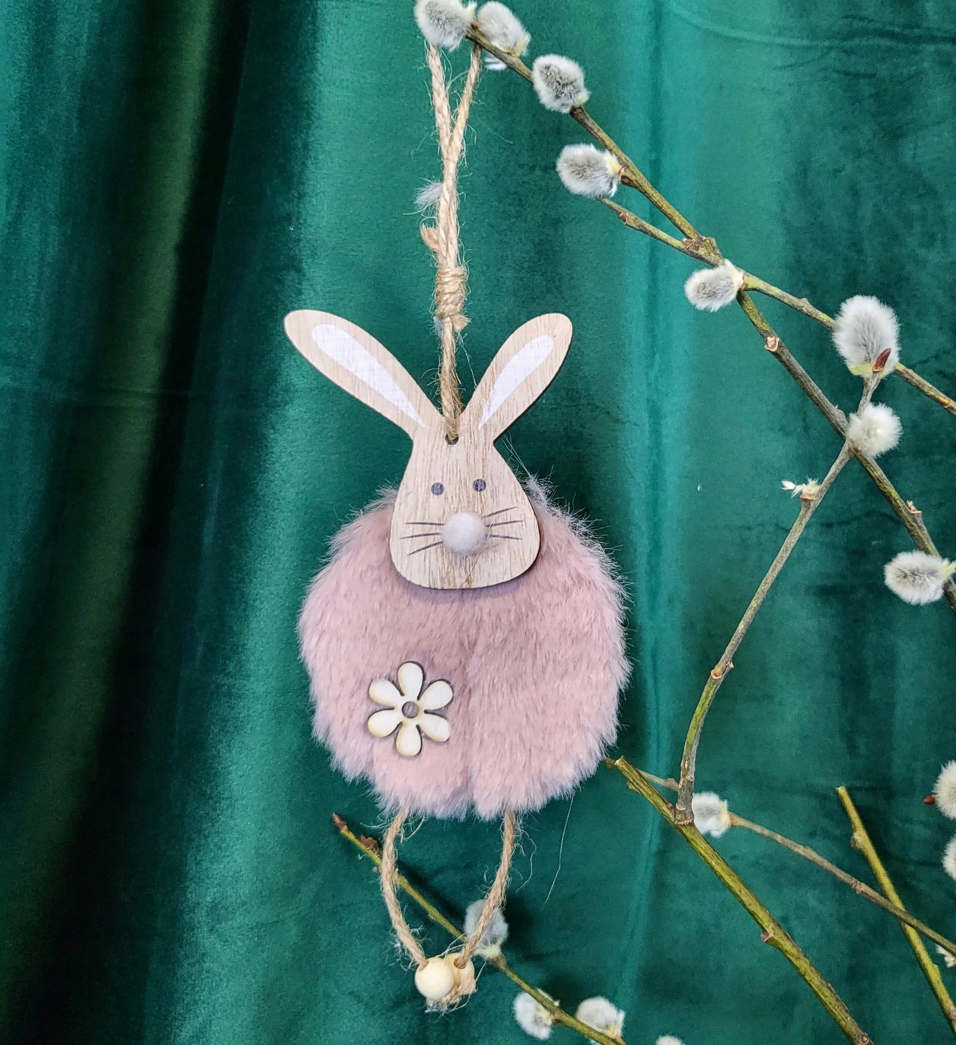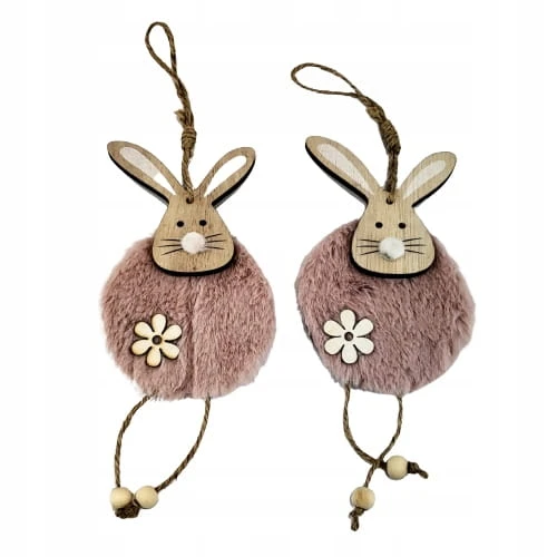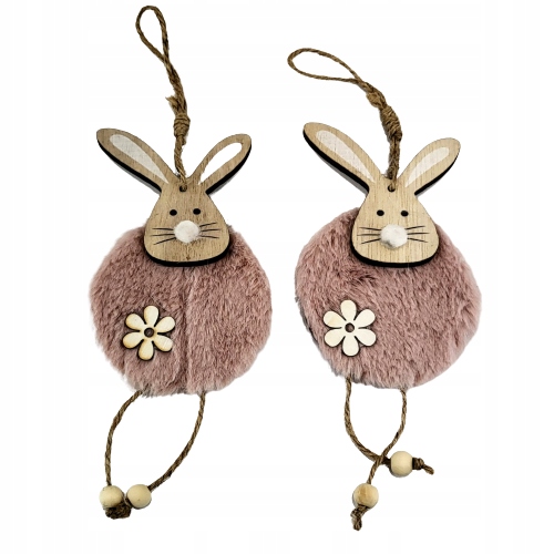 DREWNIANA ZAWIESZKA Z ZAJĄCEM RÓŻOWYM 2 SZT