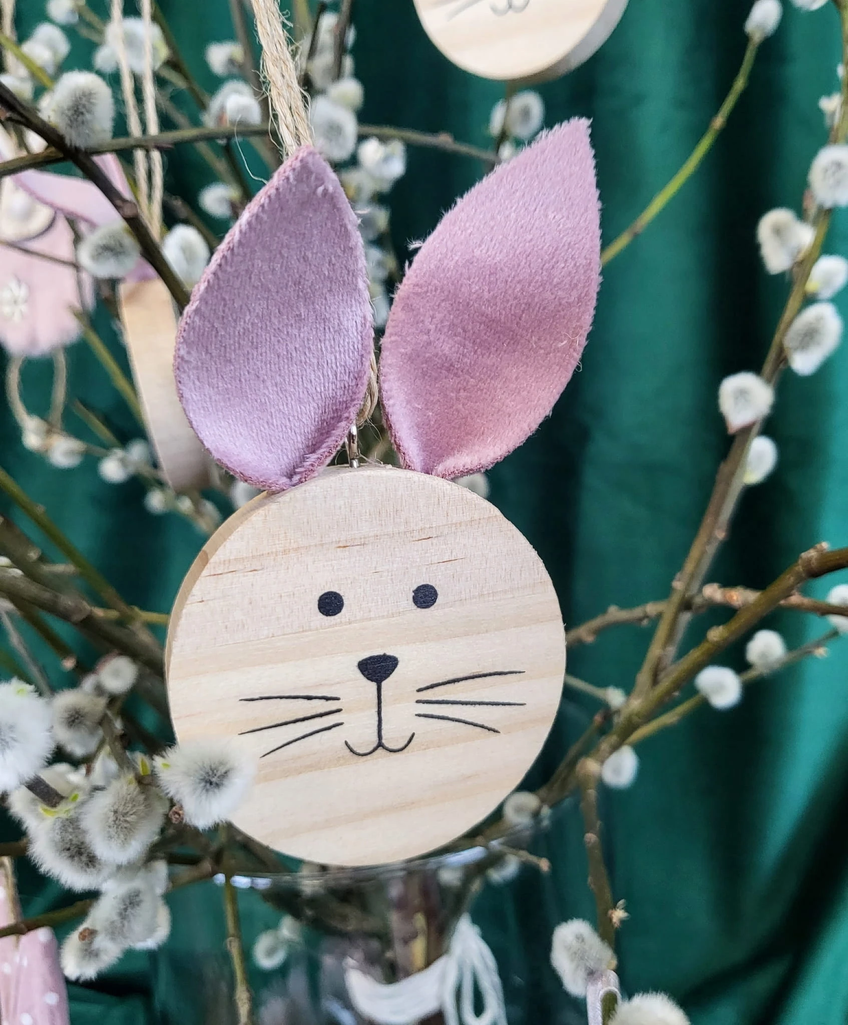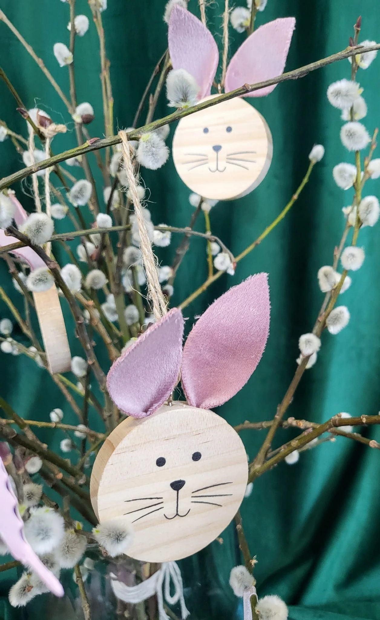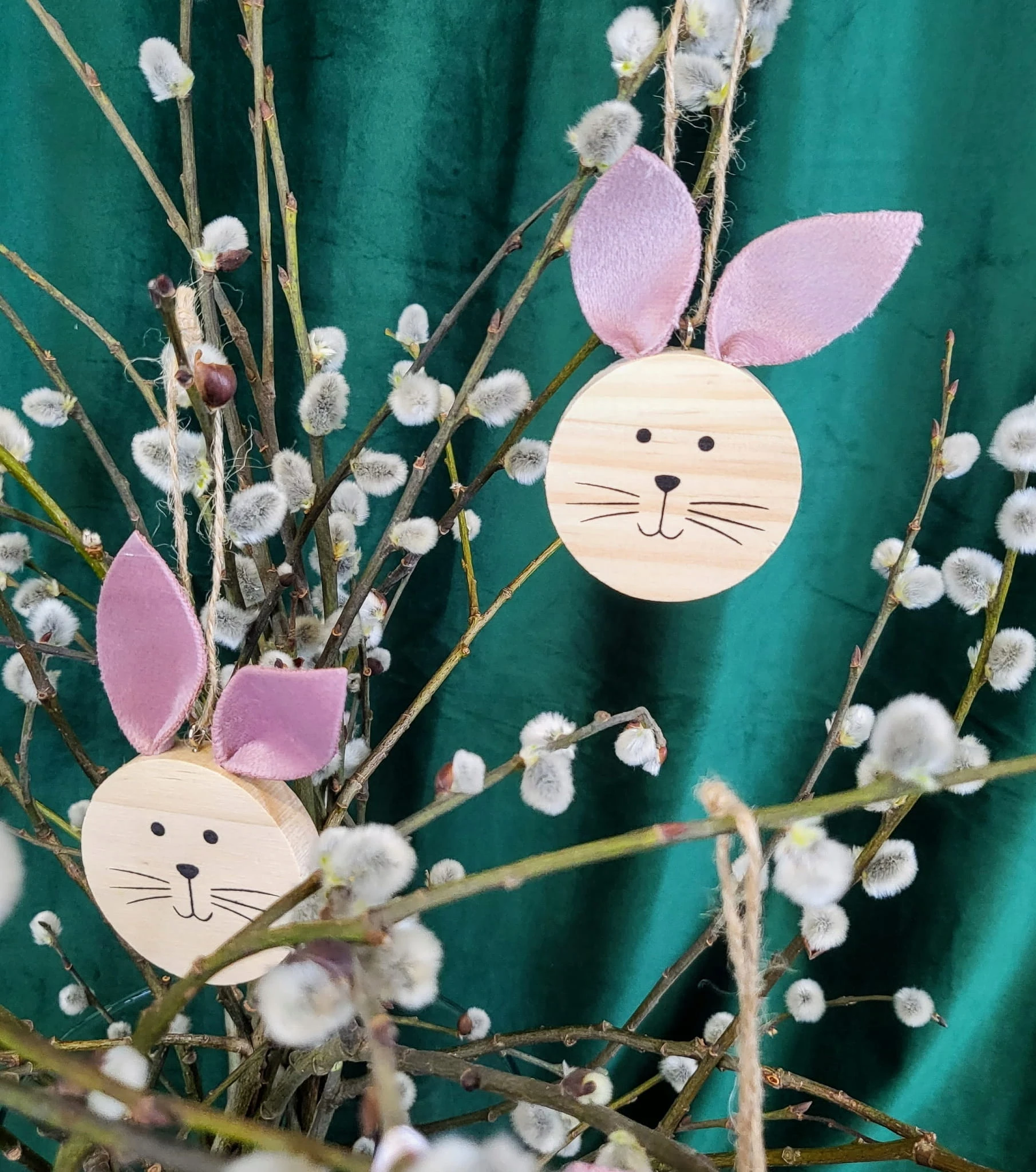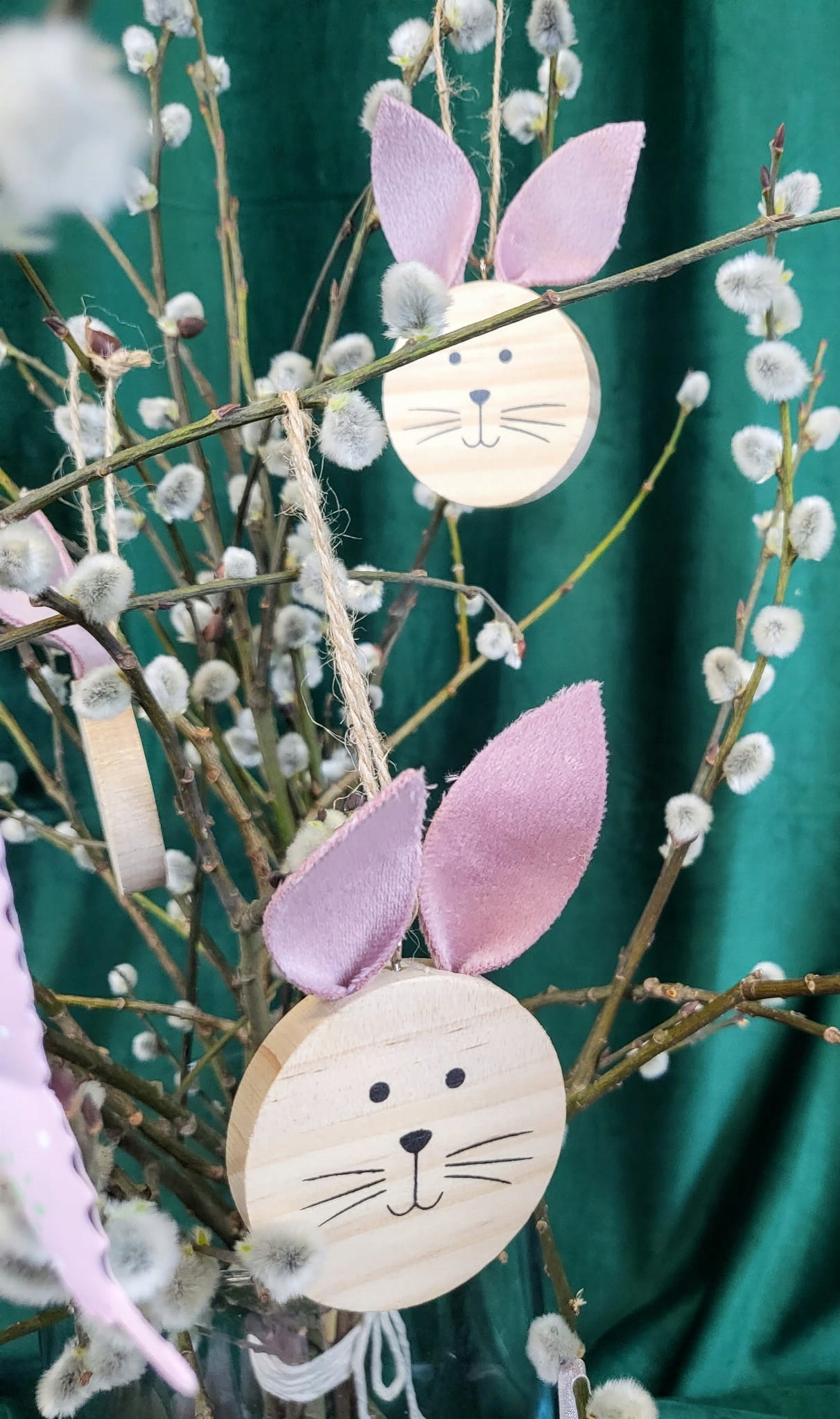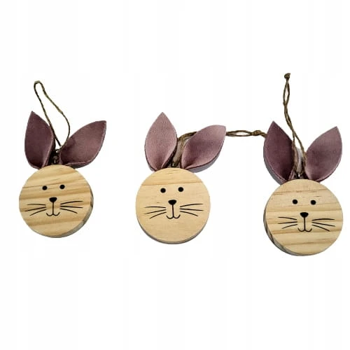 DREWNIANE ZAWIESZKI ZAJĄC KOMPLET 3 SZTUKI RÓŻOWE