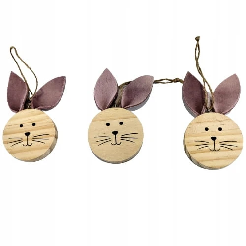 DREWNIANE ZAWIESZKI ZAJĄC KOMPLET 3 SZTUKI
