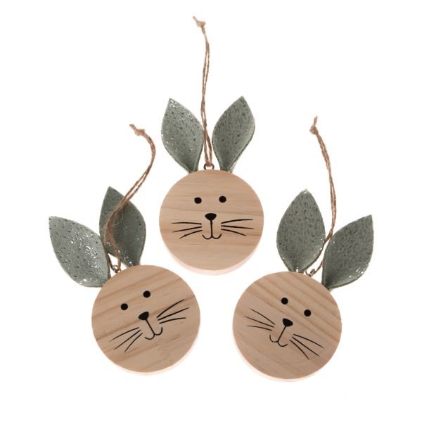 DREWNIANY ZAJĄC ZAWIESZKA KOMPLET 3SZT 5,8cm