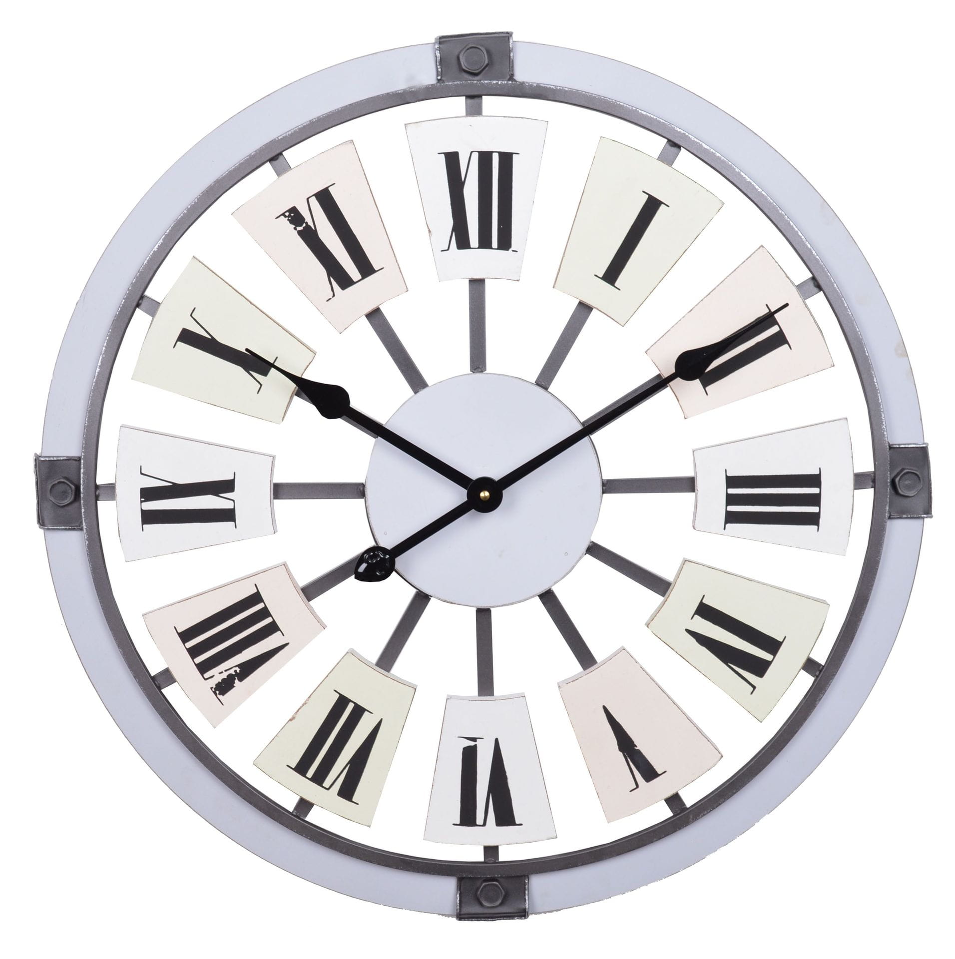 Przepiękny zegar z cyframi rzymskimi. Świetnie sprawdzi się w loftowych wnętrzach..