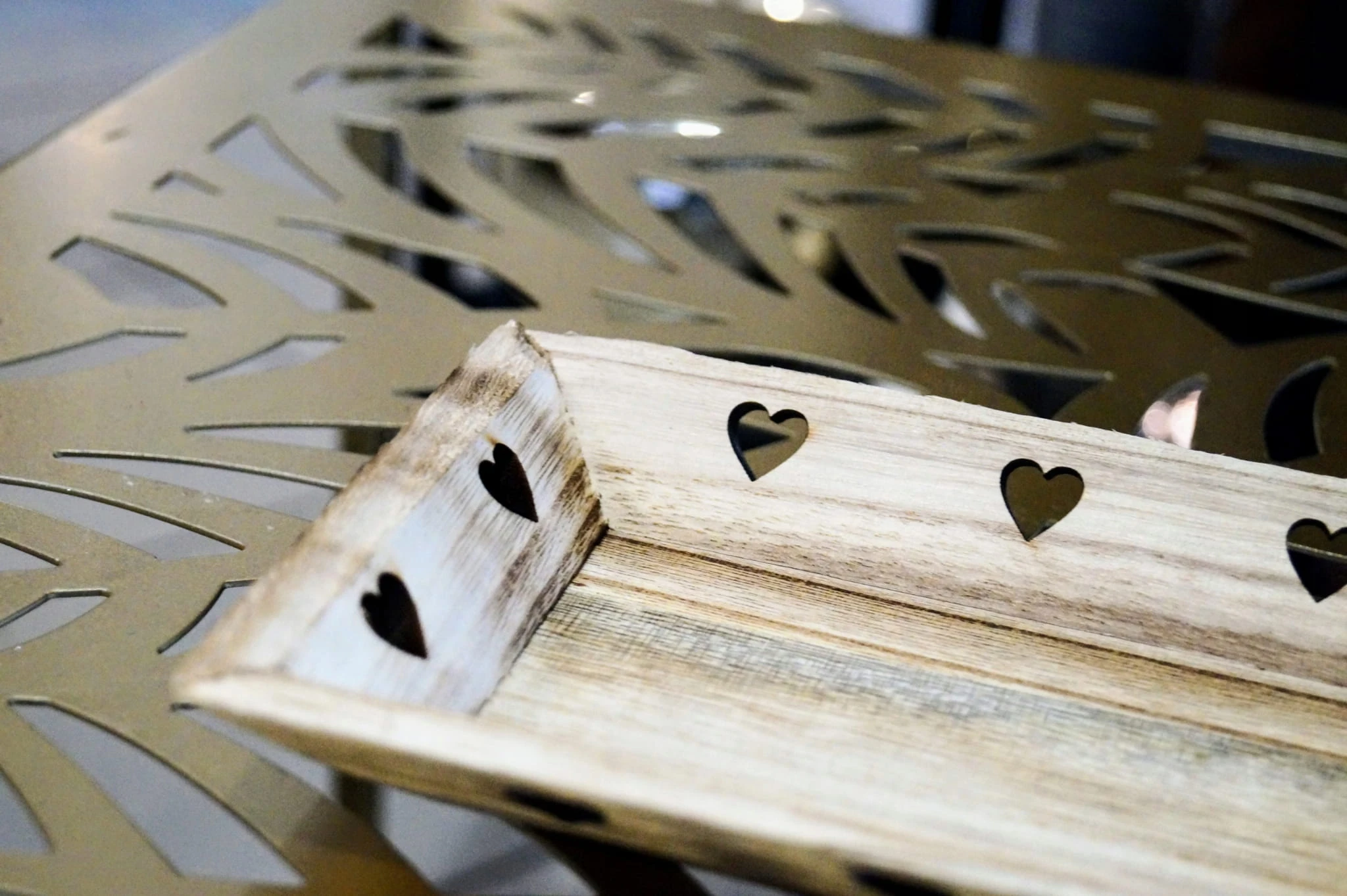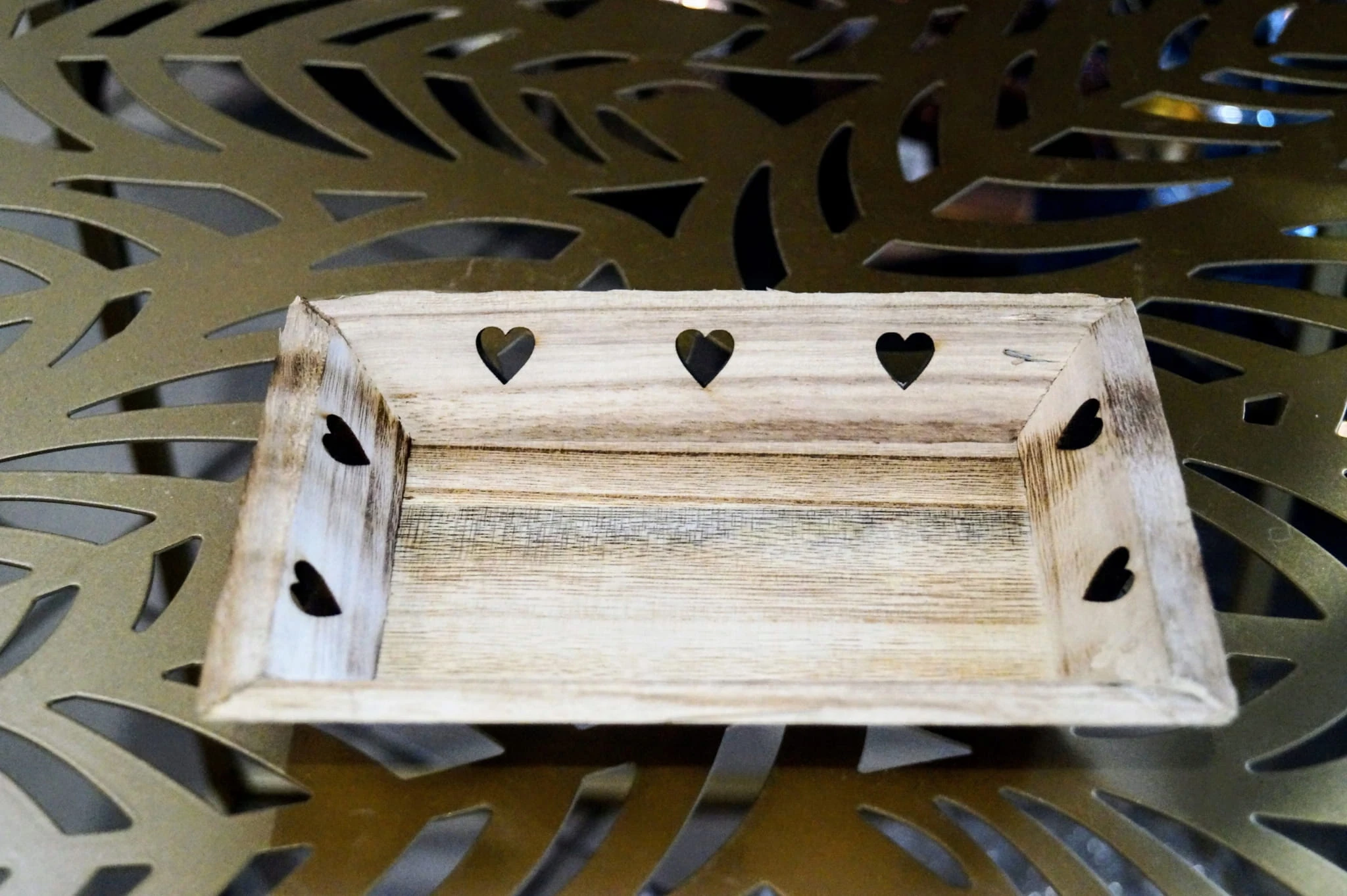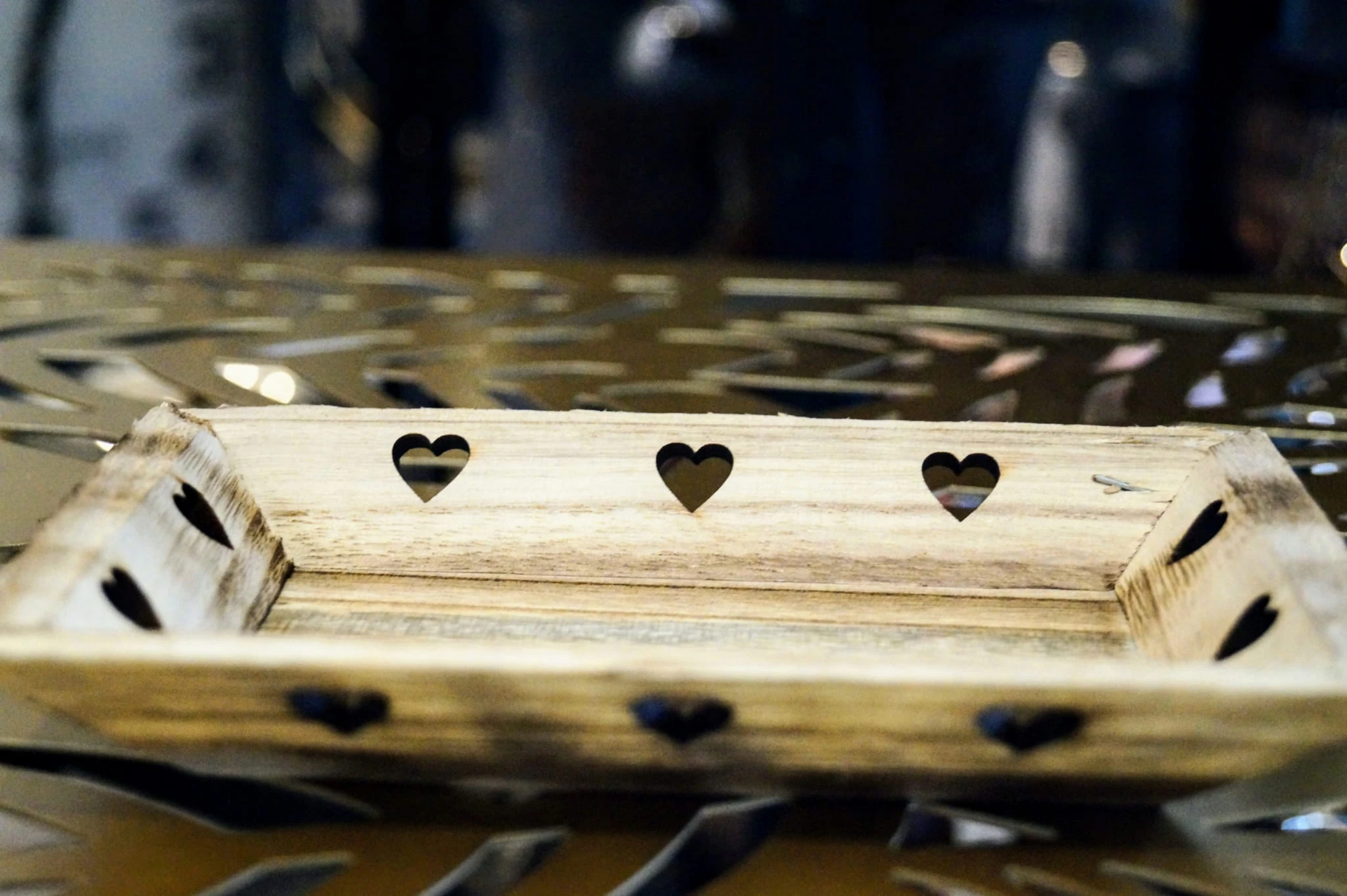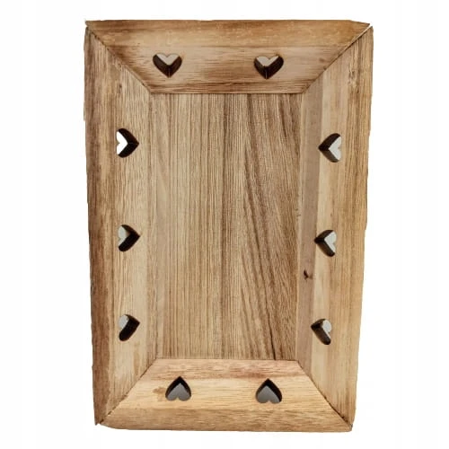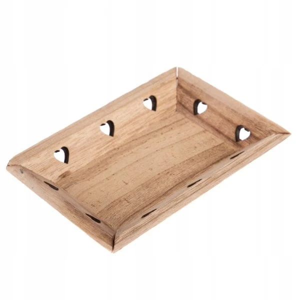 Drewniana taca, podstawka pod świeczki z sercami