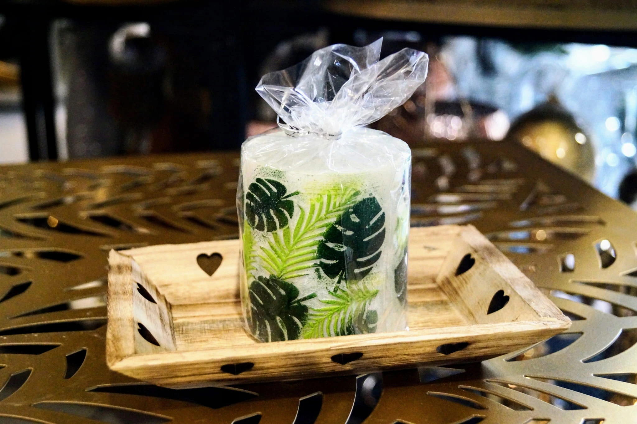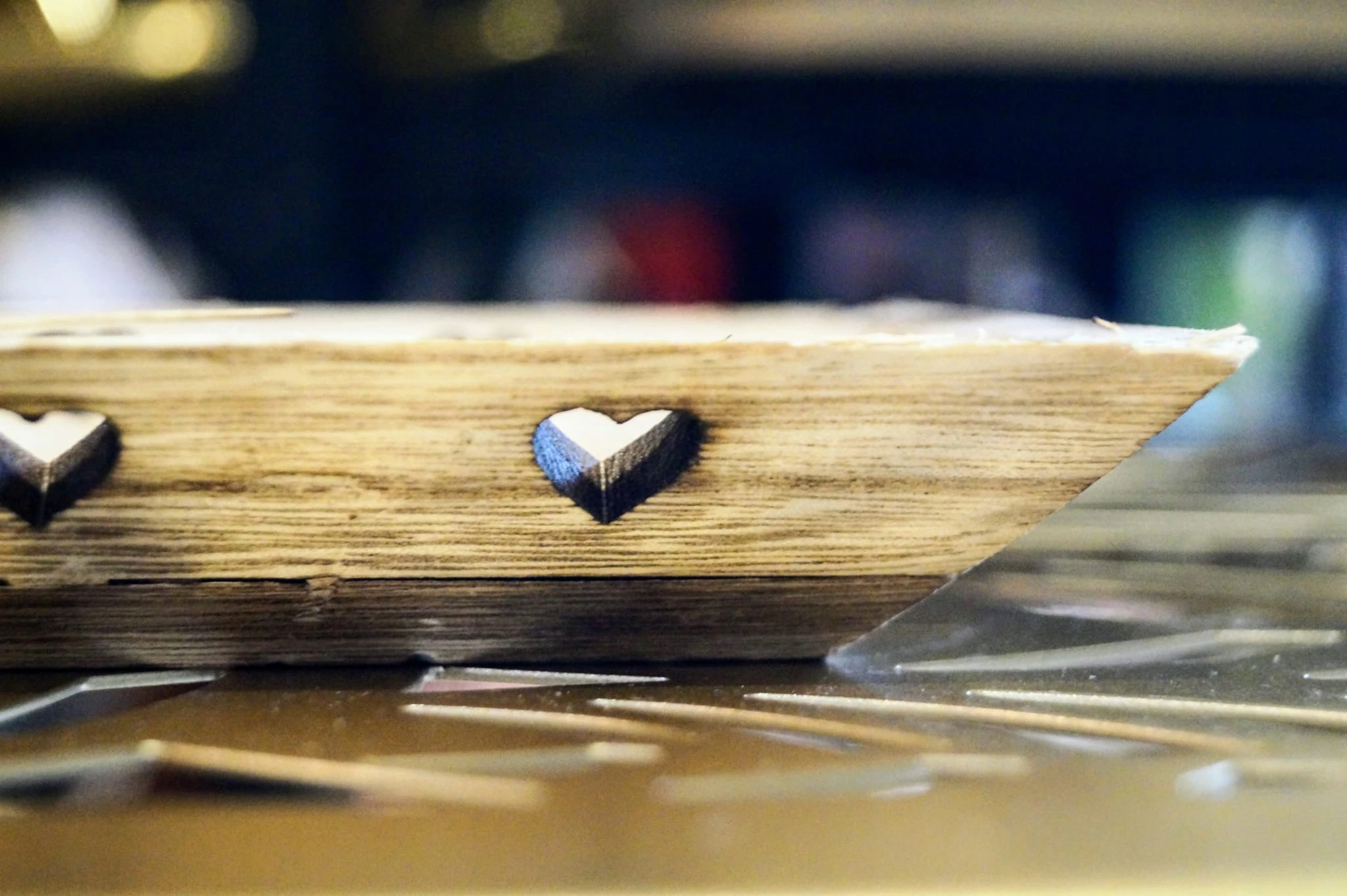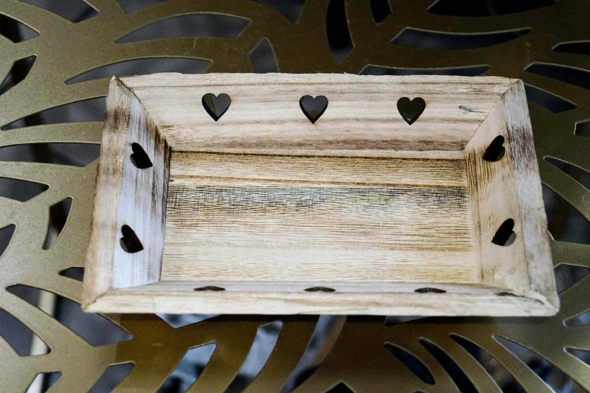 Drewniana taca, podstawka pod świeczki z sercami