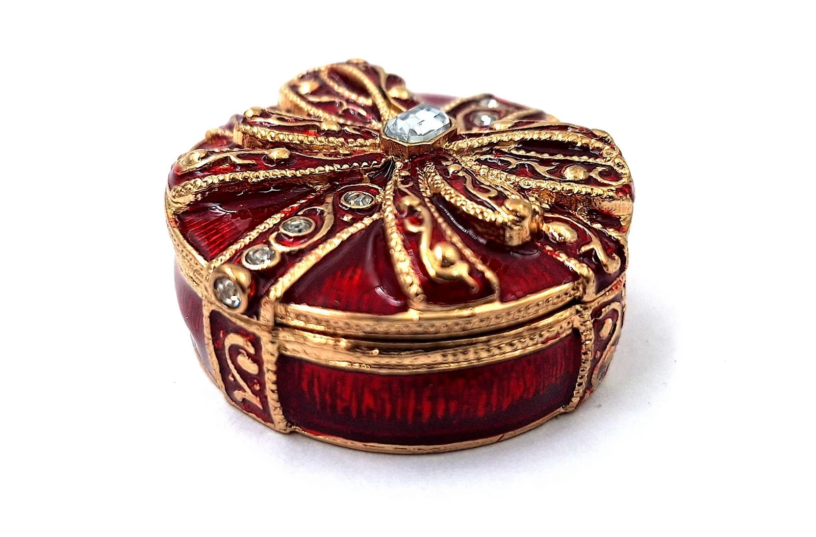 - Piękne bogato zdobione czerwono-złote pudełko (otwierane) z kryształkami